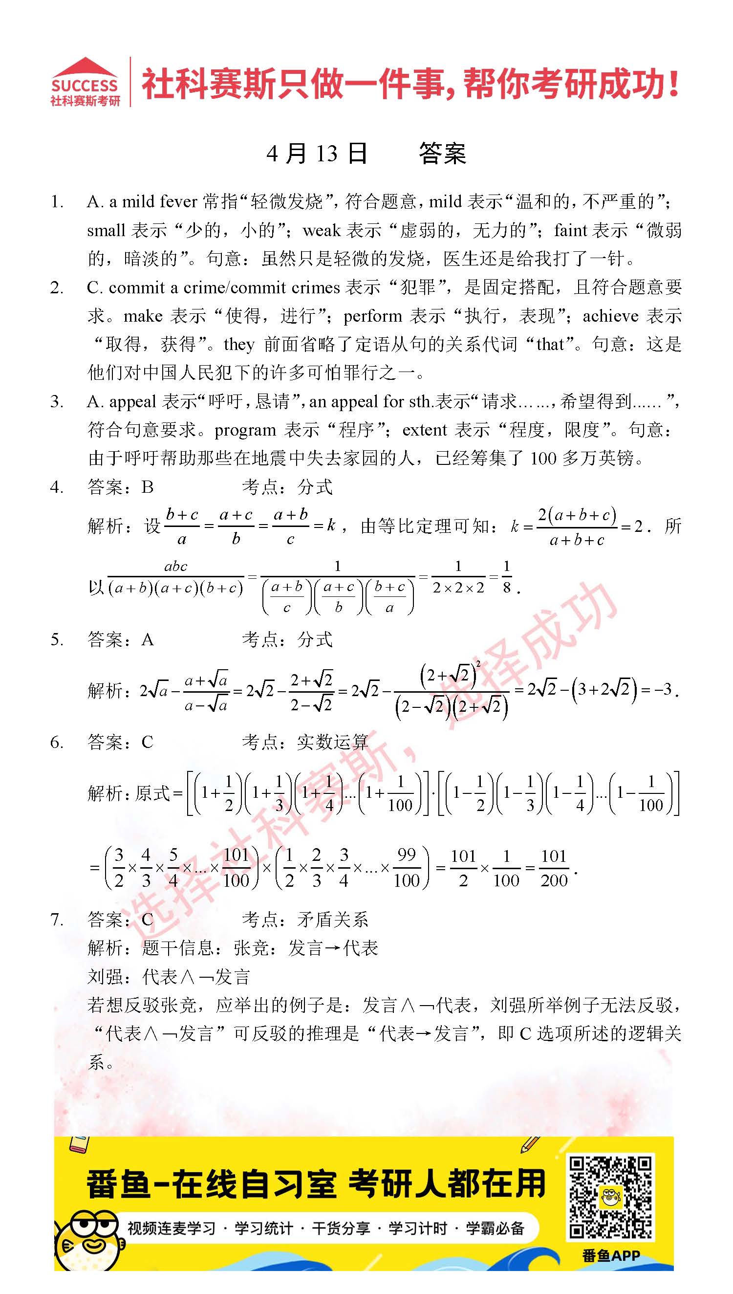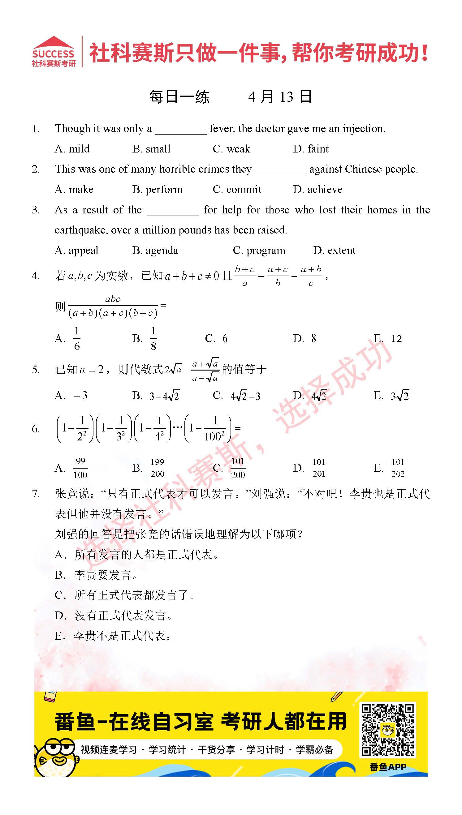 2022考研每日一練:4月13日管理類聯考每日一練及答案