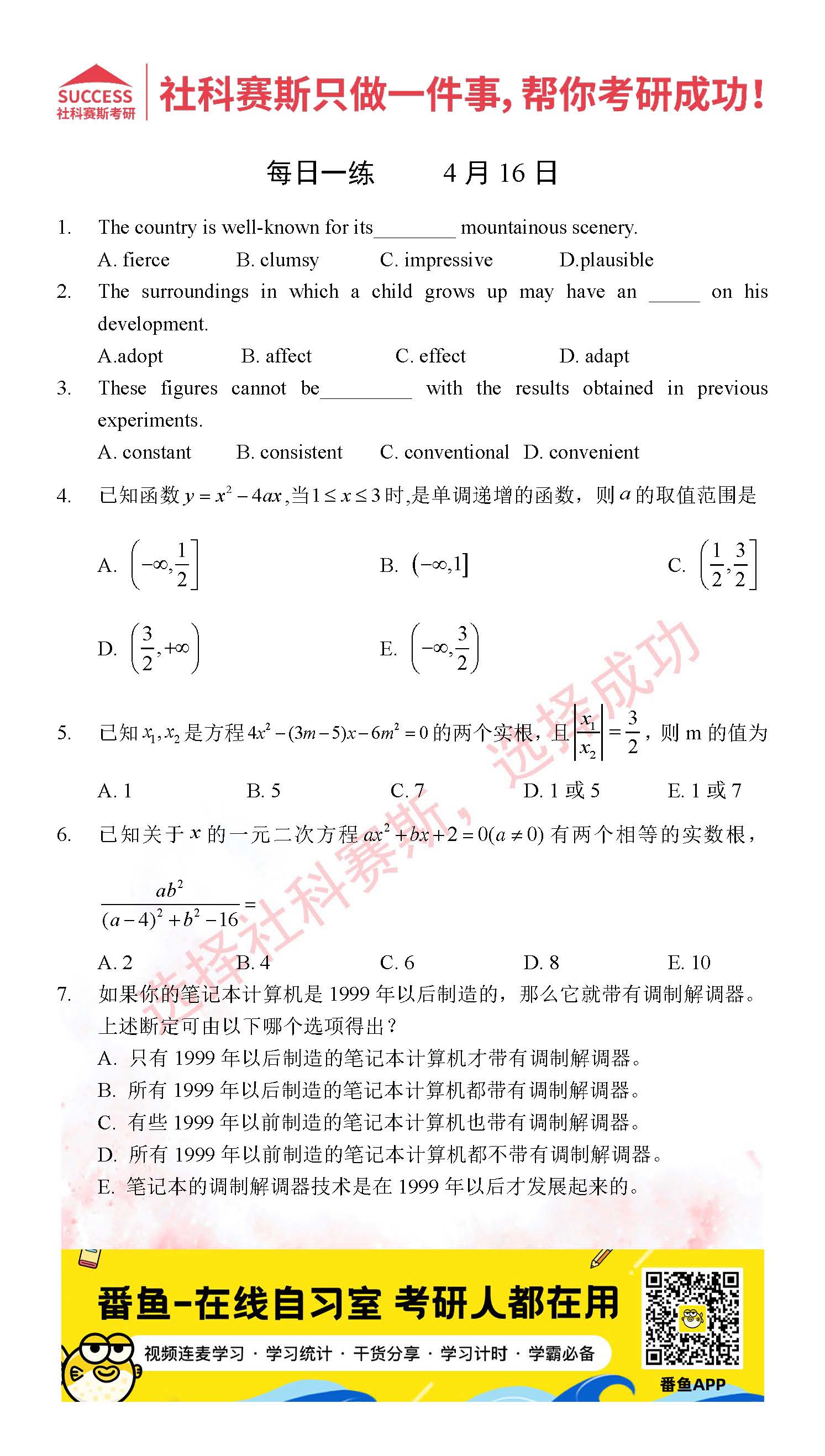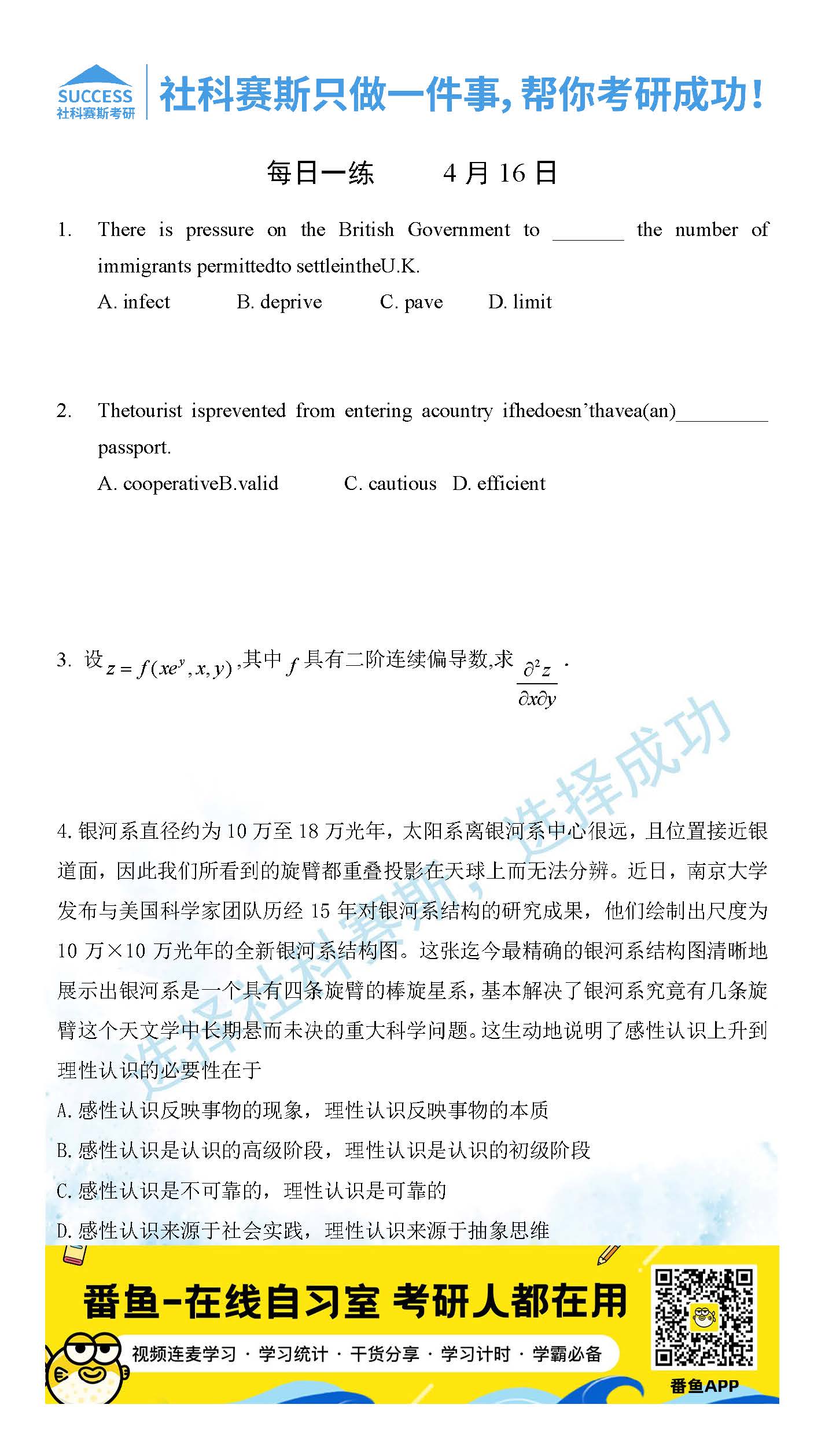 2022考研每日一練:4月16日管理類聯考每日一練及答案