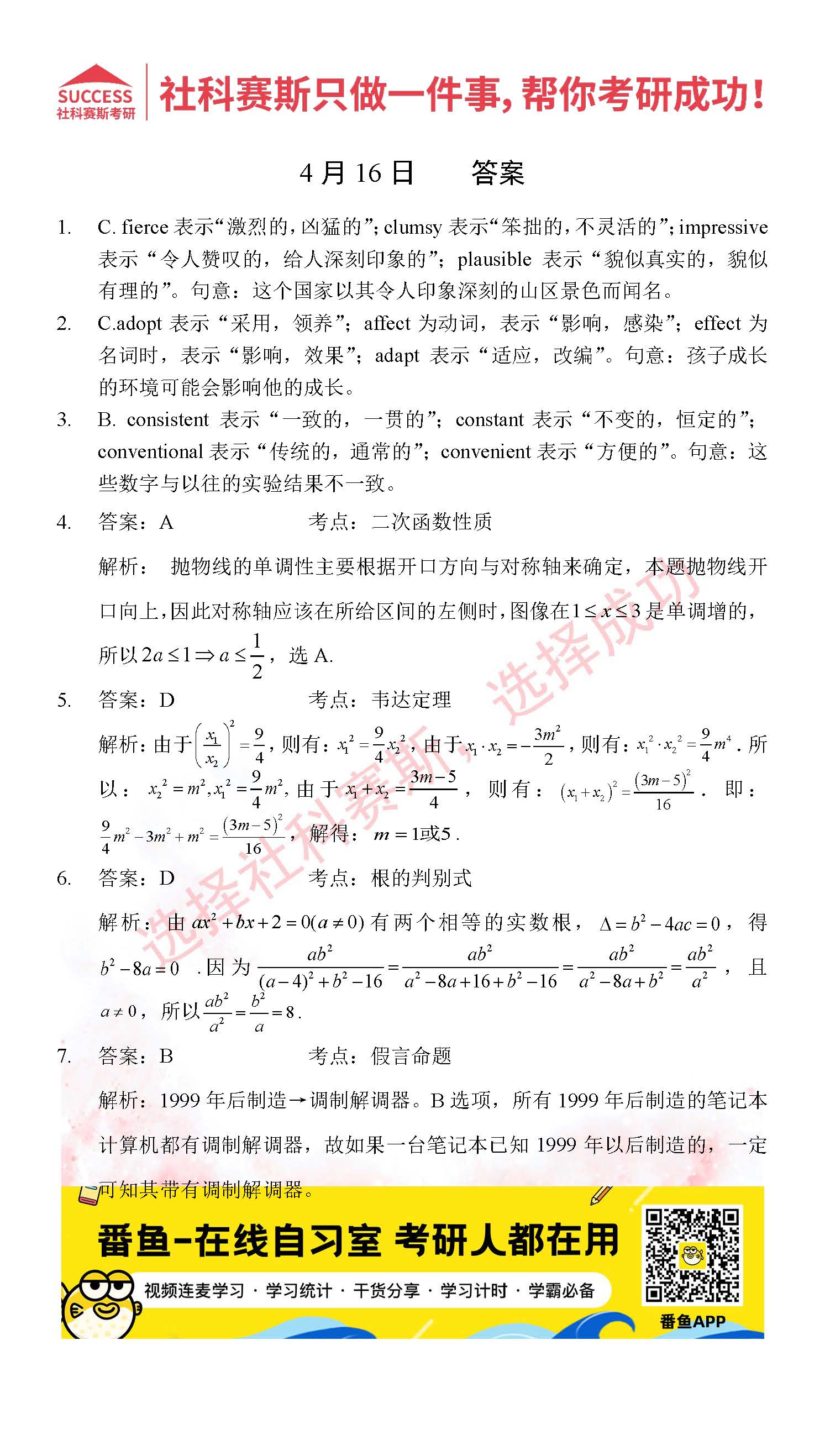 ?以上就是社科賽斯考研網小編為大家整理2022考研每日一練:4月16日管理類聯考每日一練及答案的全部內容,希望各位考生堅持利用起來,更多每日一練內容請持續關注社科賽斯考研網