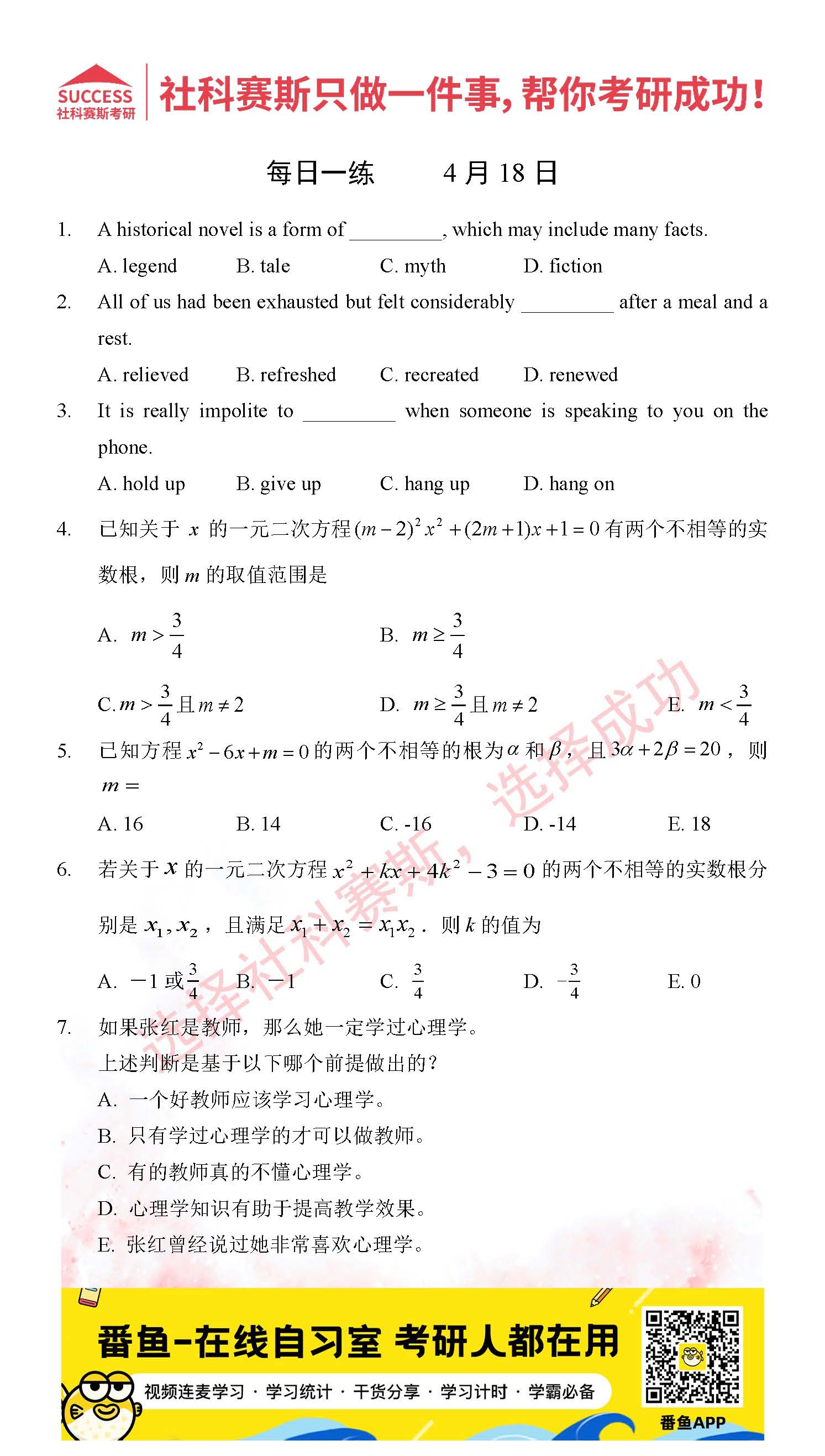 2022考研每日一練:4月18日管理類聯考每日一練及答案
