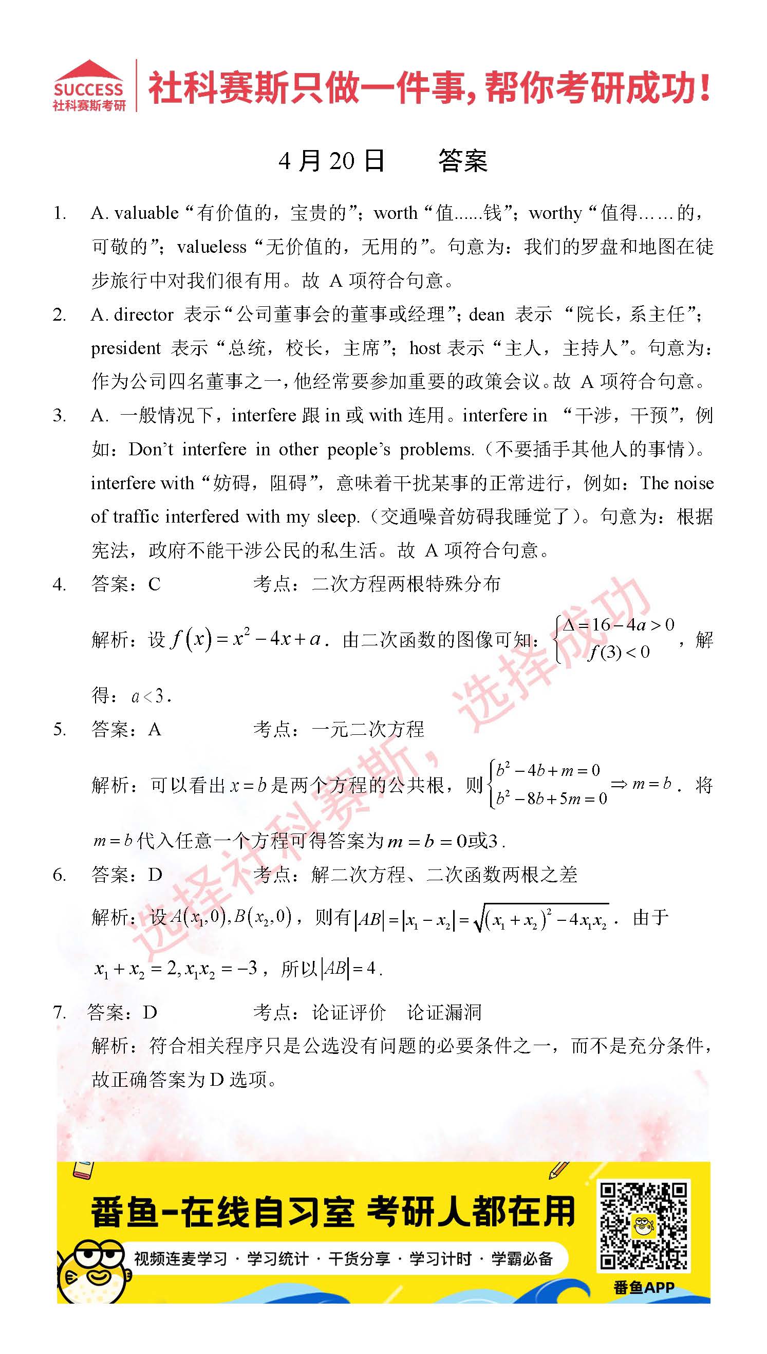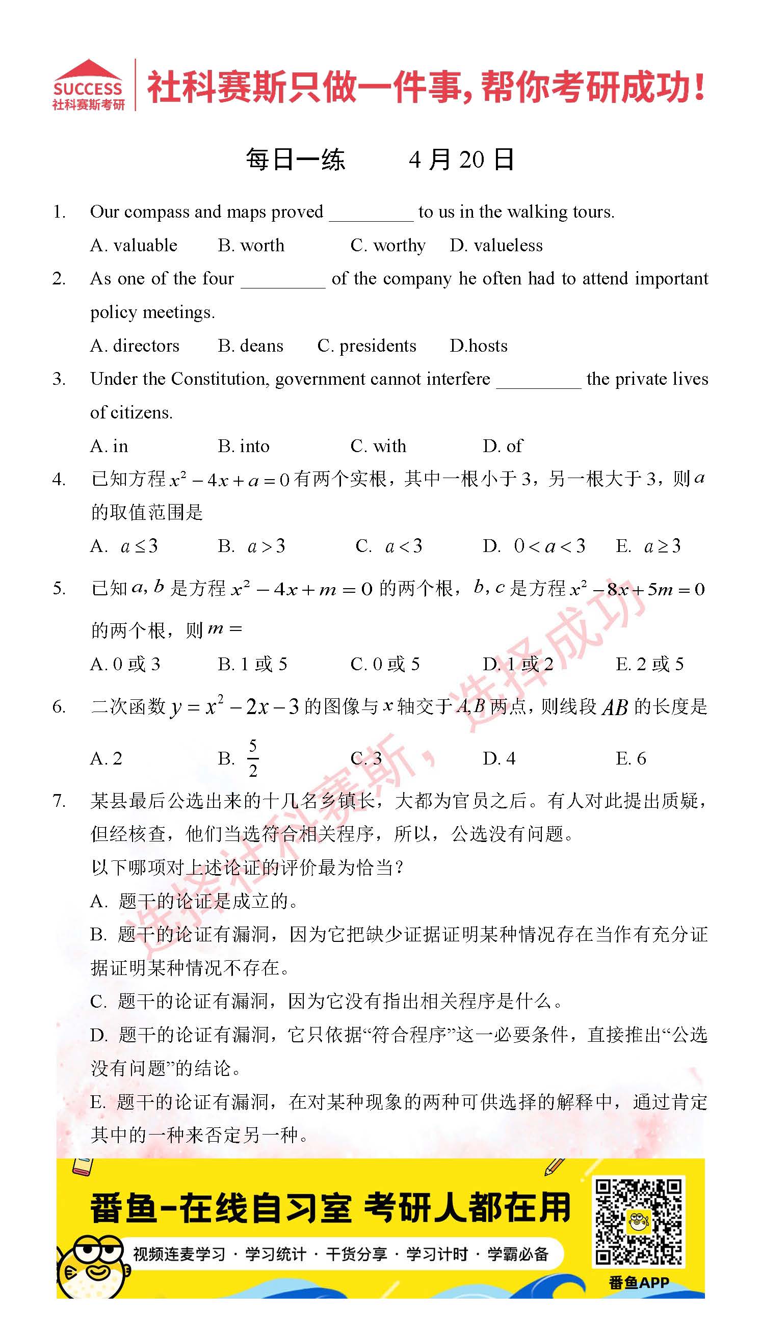 2022考研每日一練:4月20日管理類聯(lián)考每日一練及答案