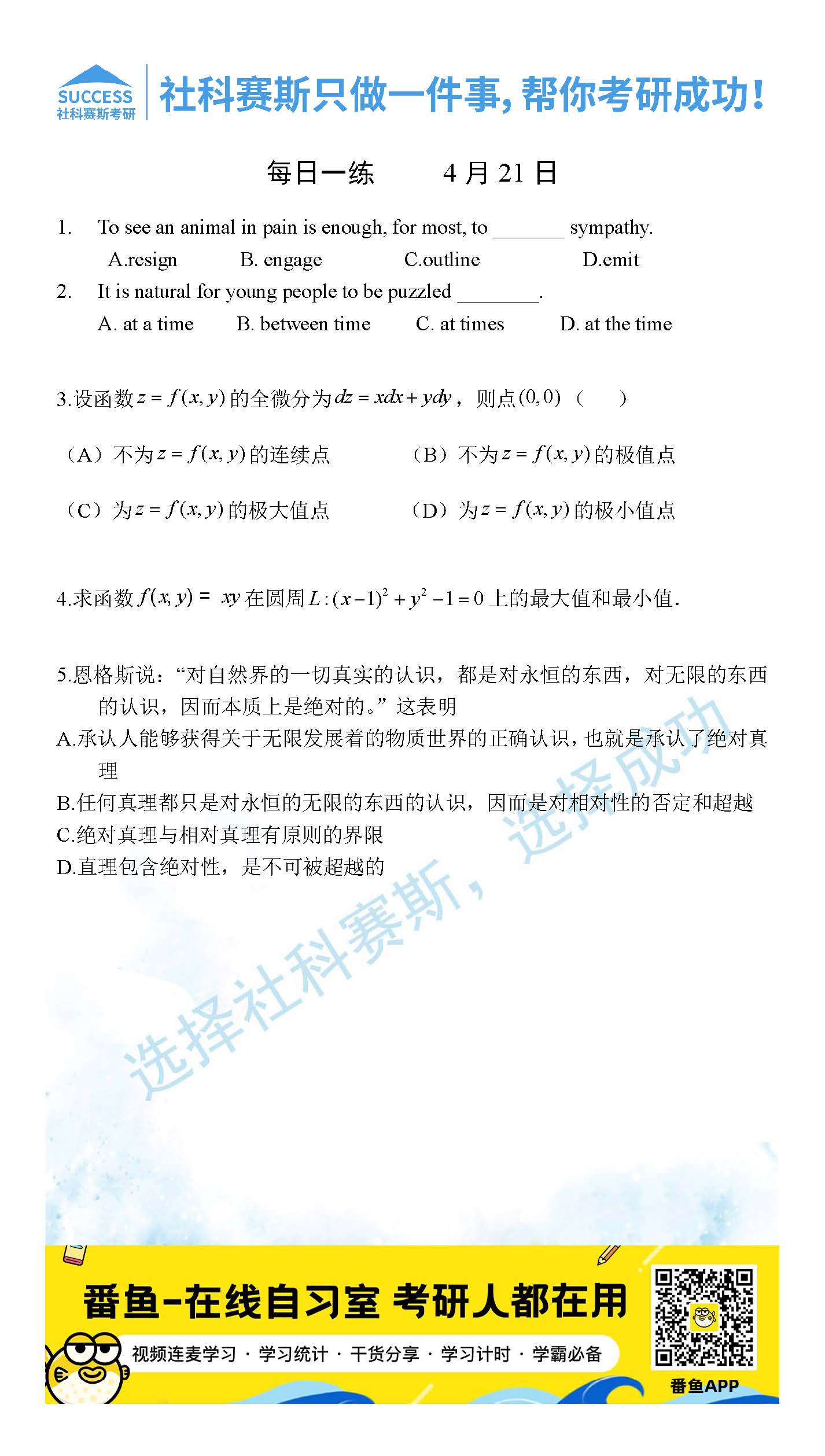 2022考研每日一練:4月21日管理類聯(lián)考每日一練及答案