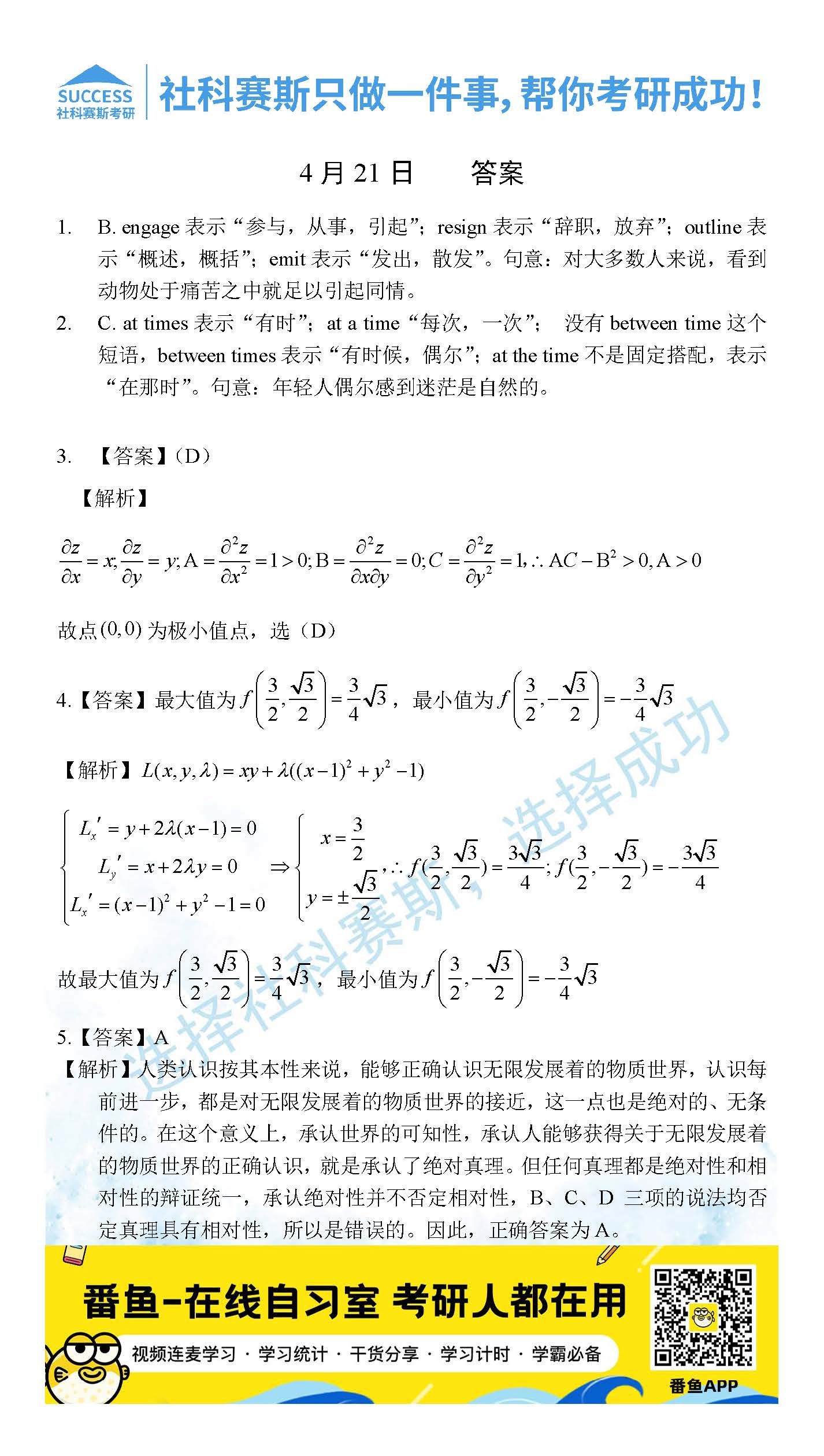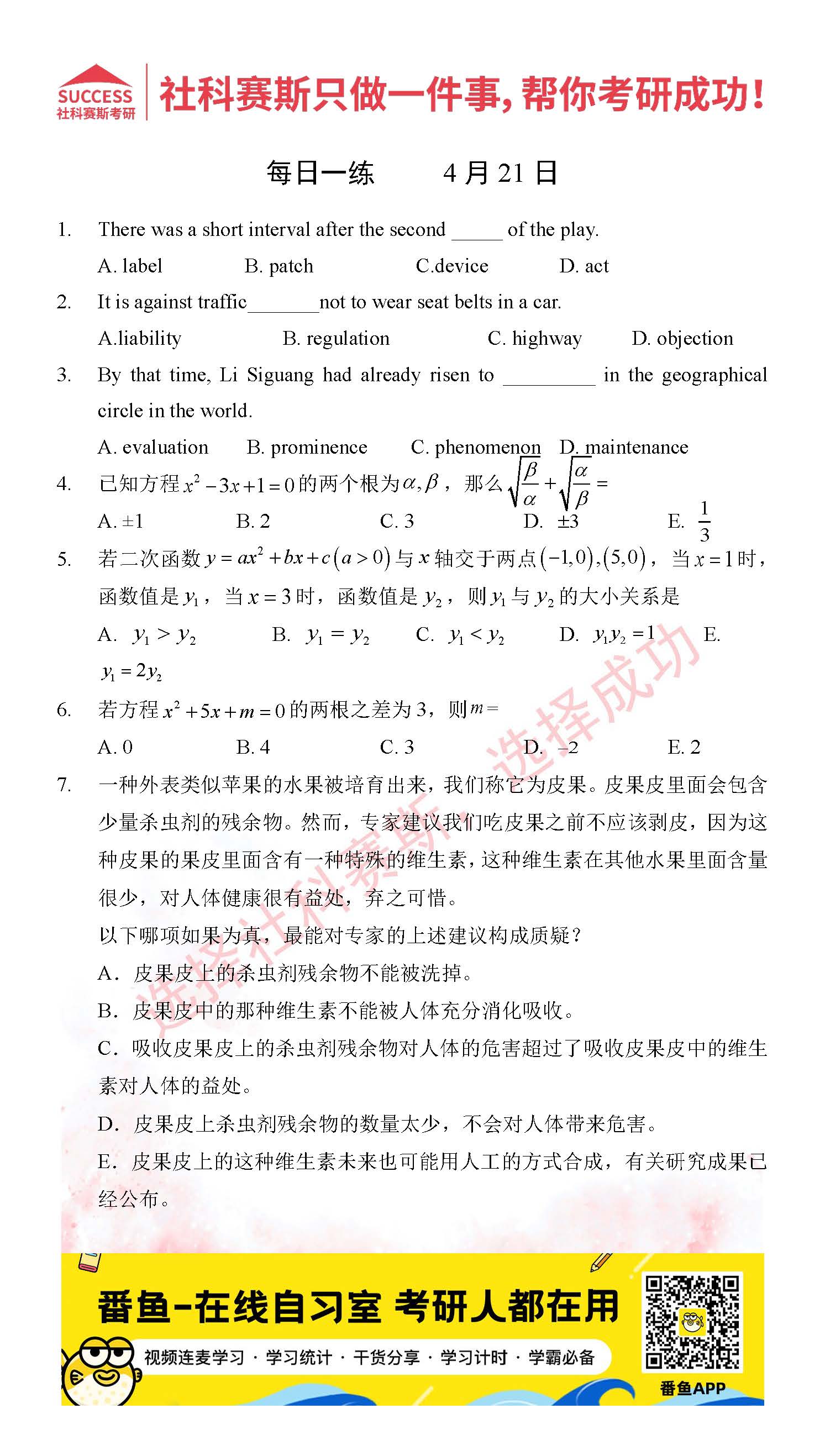 ?以上就是社科賽斯考研網(wǎng)小編為大家整理2022考研每日一練:4月21日管理類聯(lián)考每日一練及答案的全部內(nèi)容,希望各位考生堅持利用起來,更多每日一練內(nèi)容請持續(xù)關注社科賽斯考研網(wǎng)