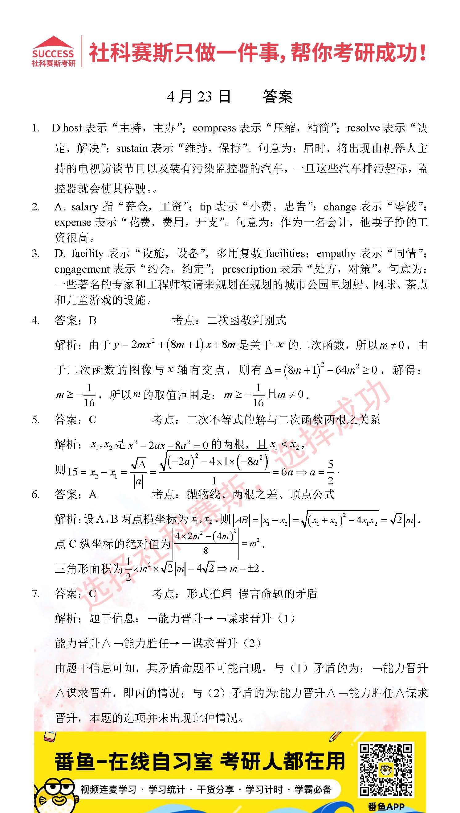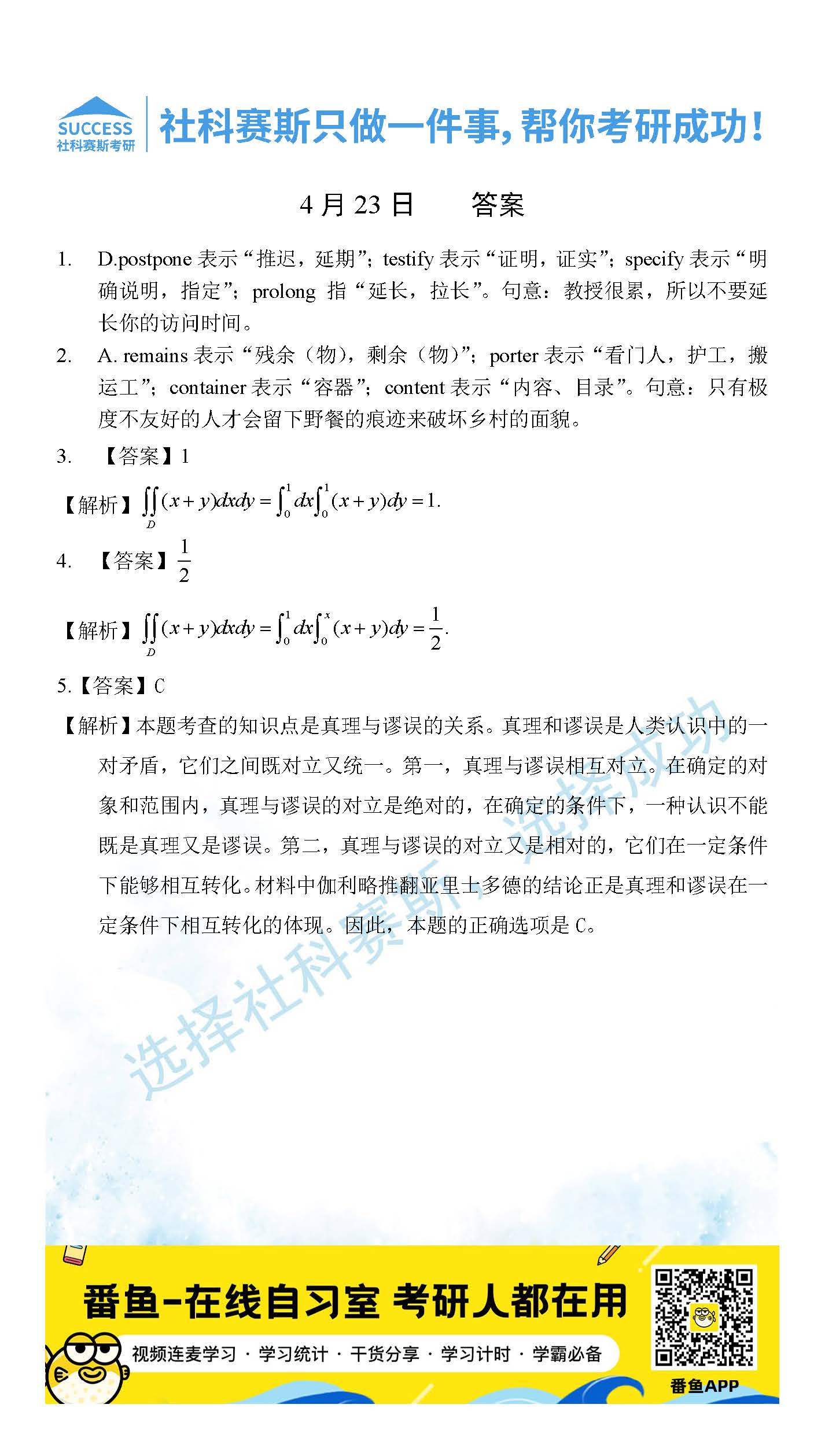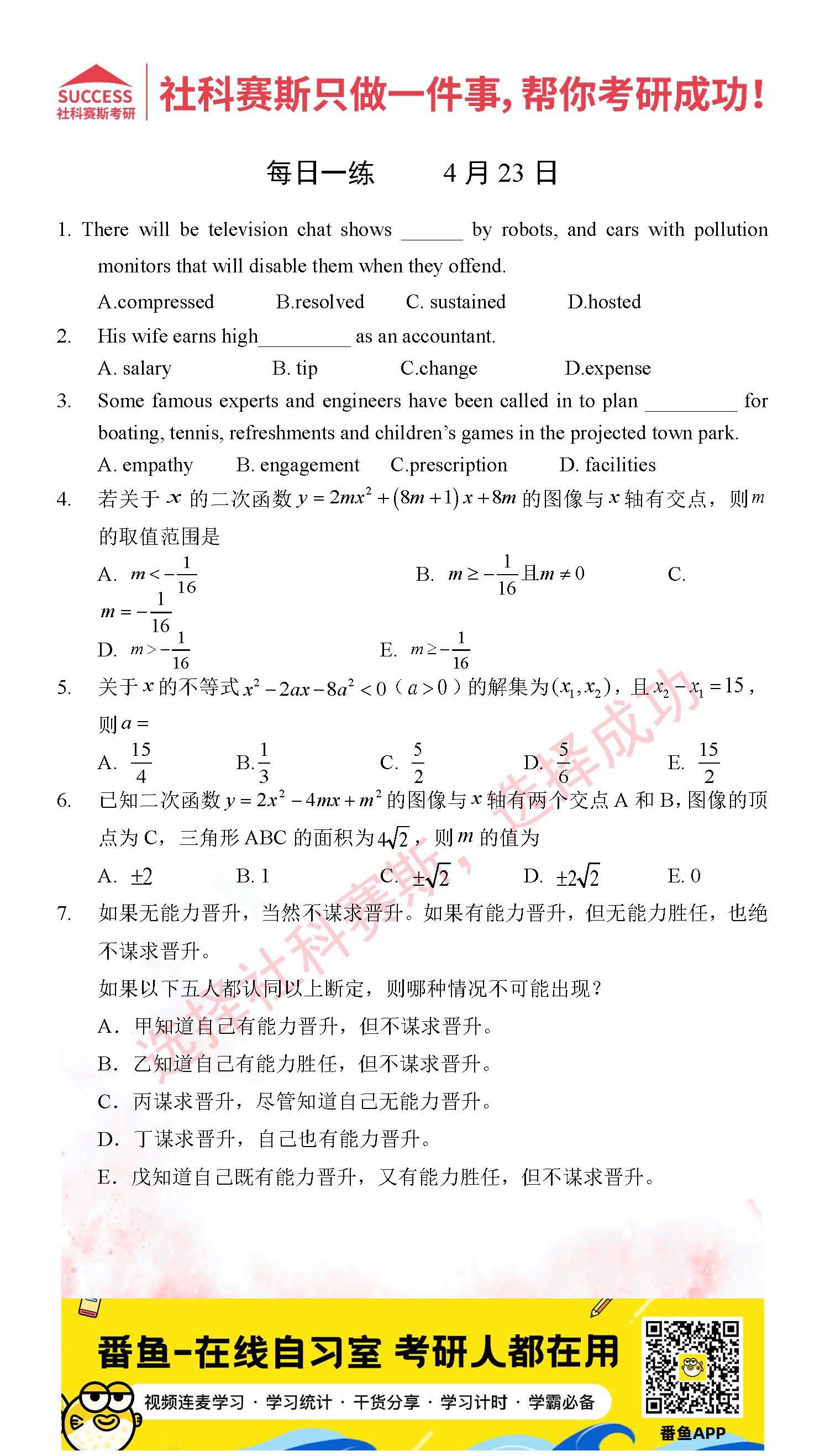 以上就是社科賽斯考研網小編為大家整理2022考研每日一練:4月23日管理類聯考每日一練及答案的全部內容,希望各位考生堅持利用起來,更多每日一練內容請持續關注社科賽斯考研網