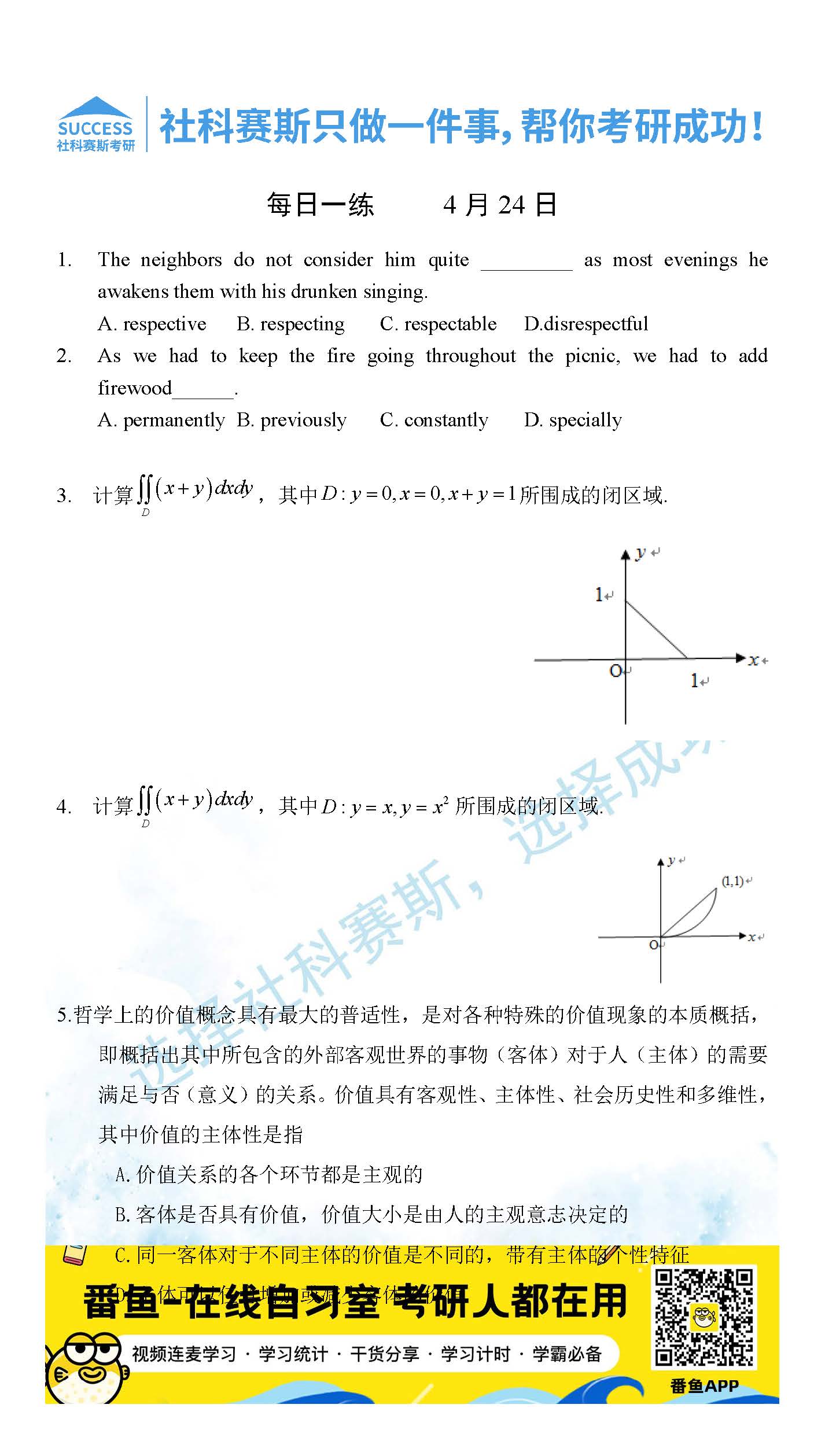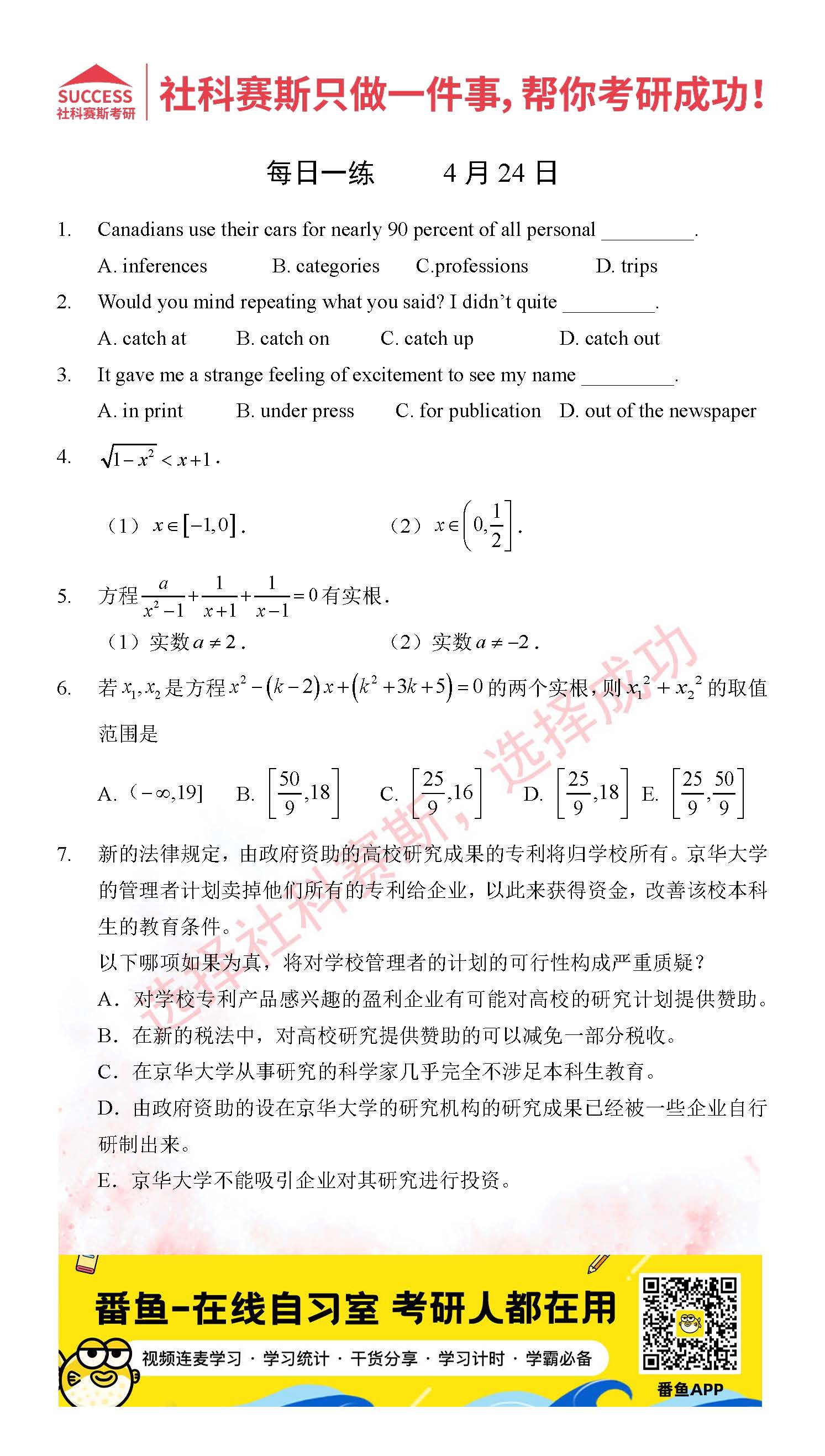 2022考研每日一練:4月24日管理類聯考每日一練及答案