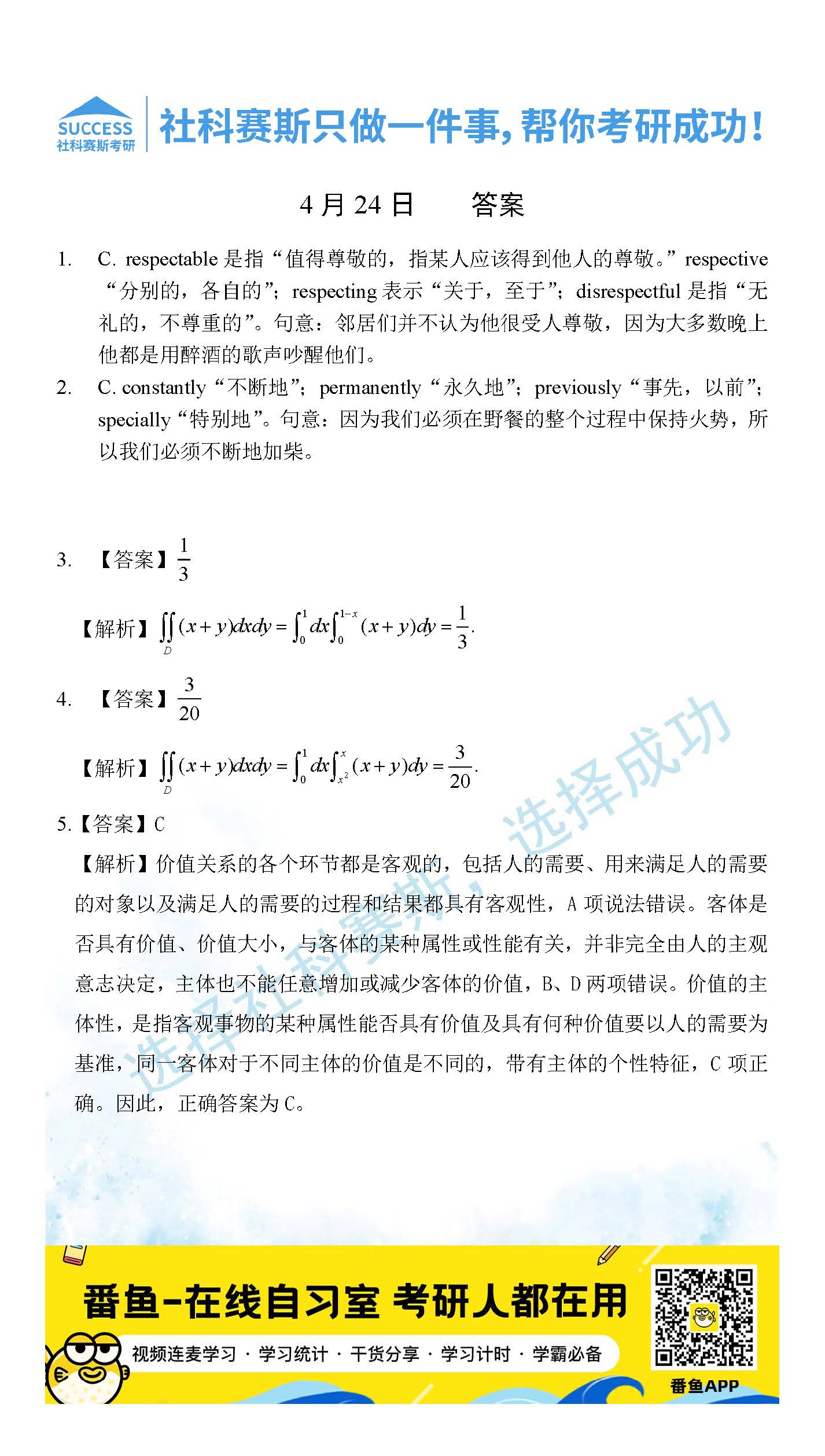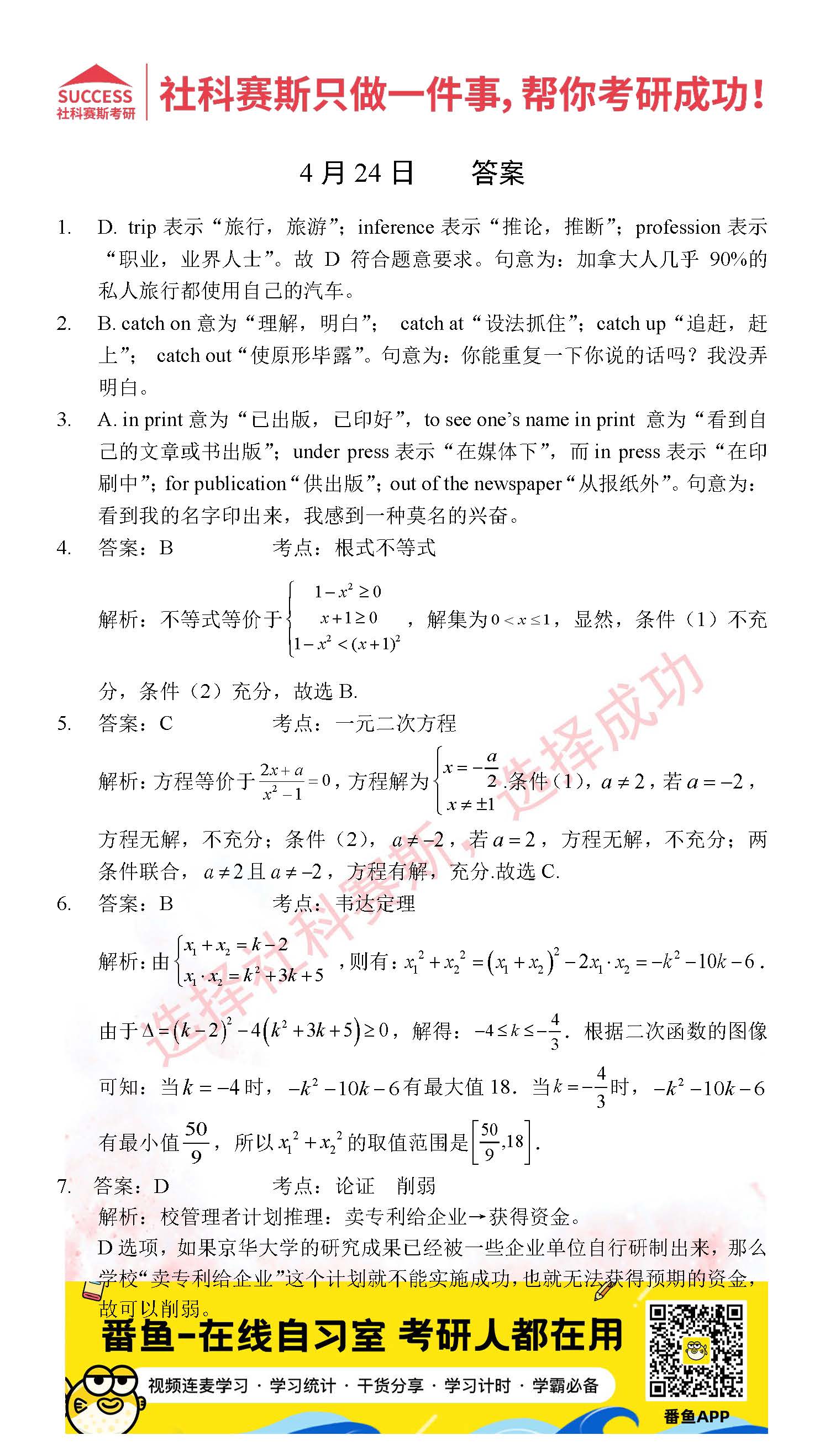 以上就是社科賽斯考研網小編為大家整理2022考研每日一練:4月24日管理類聯考每日一練及答案的全部內容,希望各位考生堅持利用起來,更多每日一練內容請持續關注社科賽斯考研網