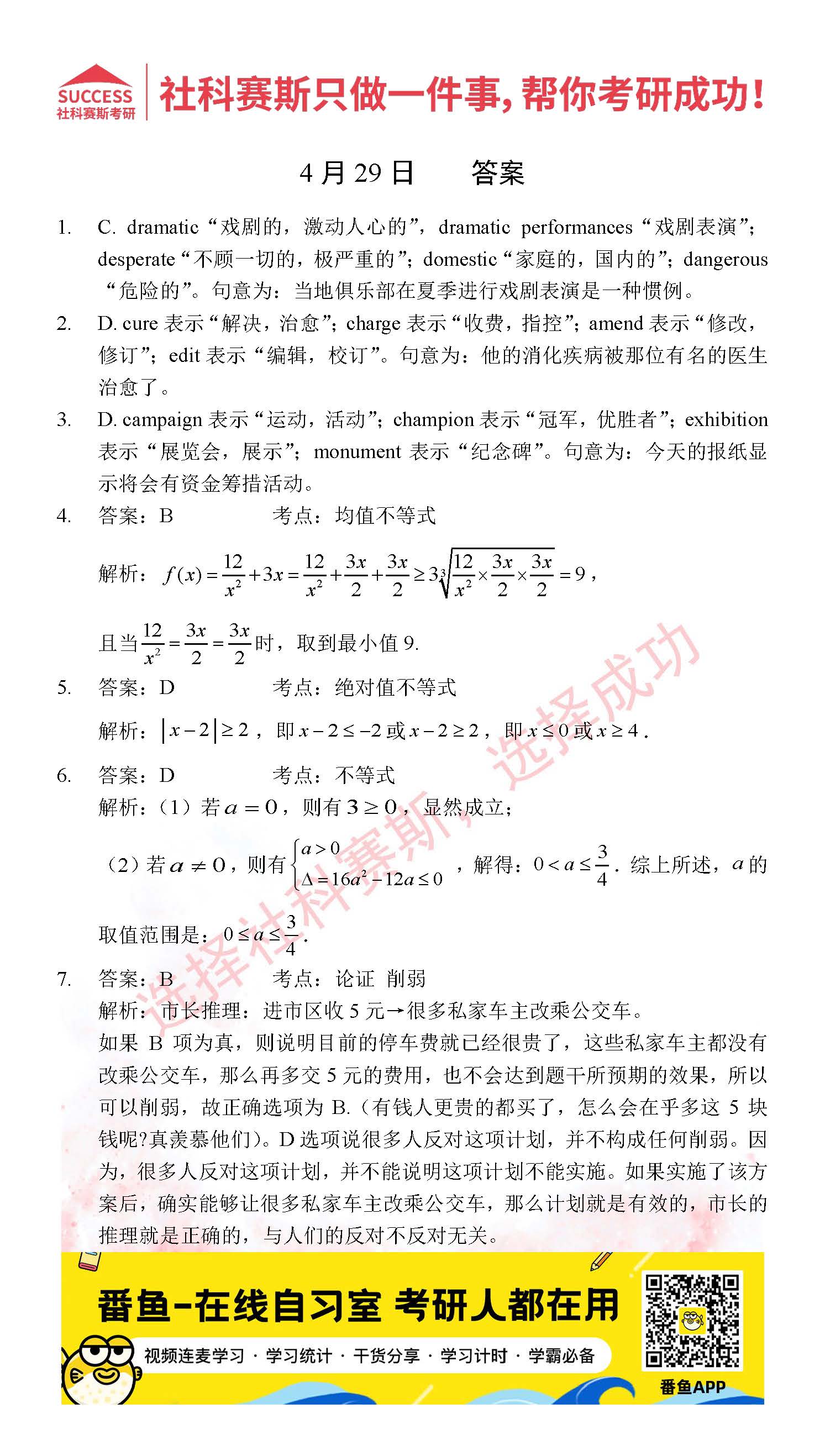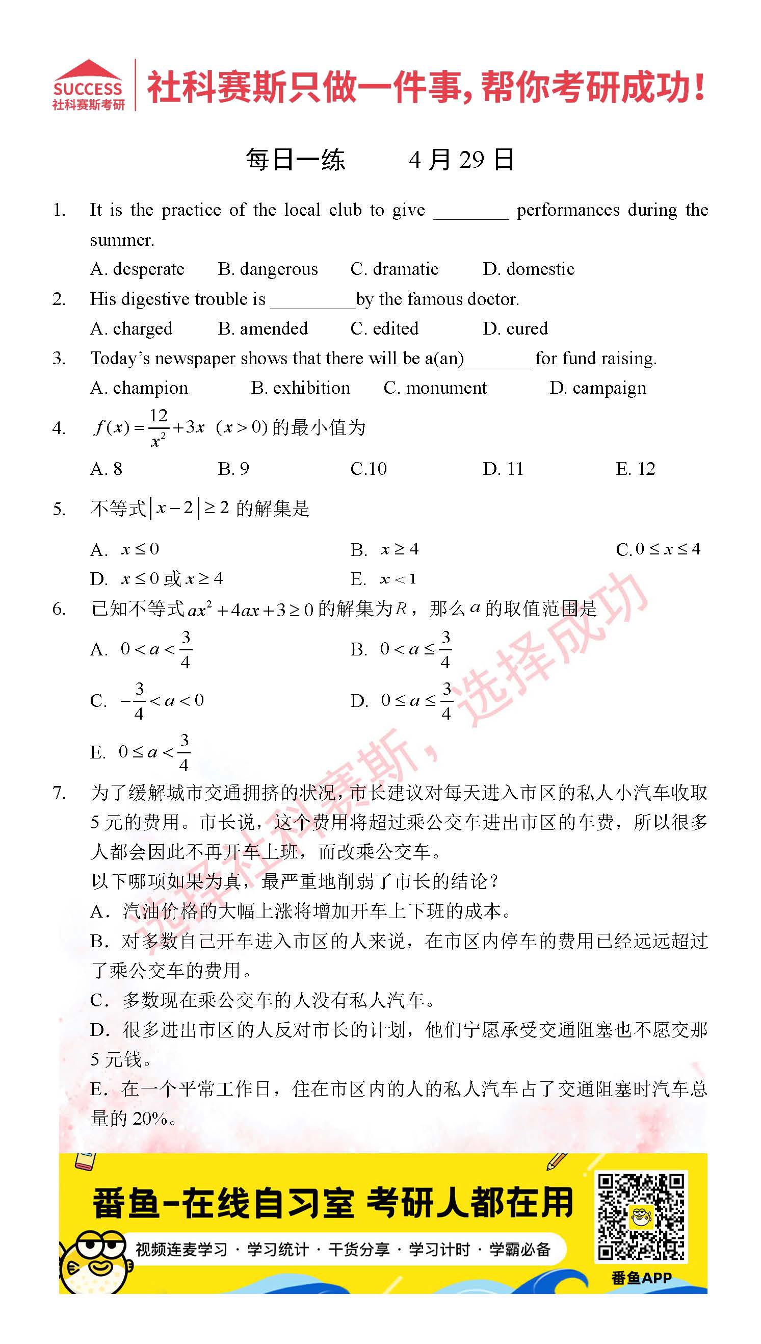 2022考研每日一練:4月29日管理類聯(lián)考每日一練及答案