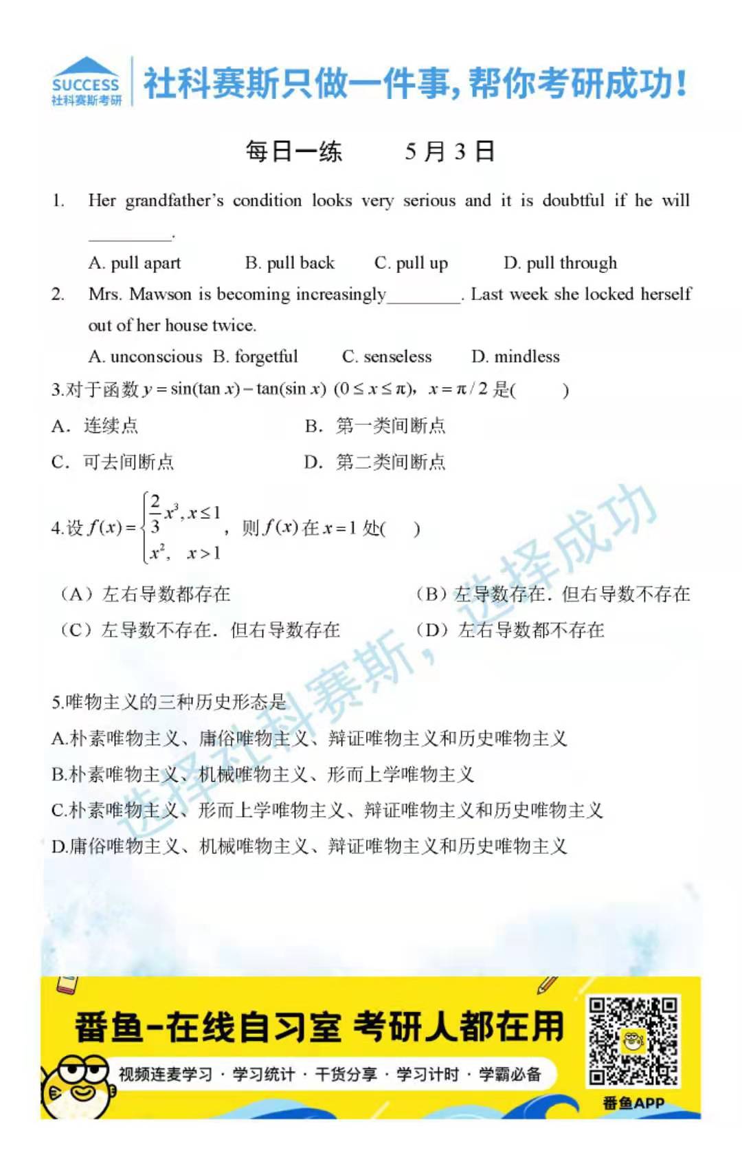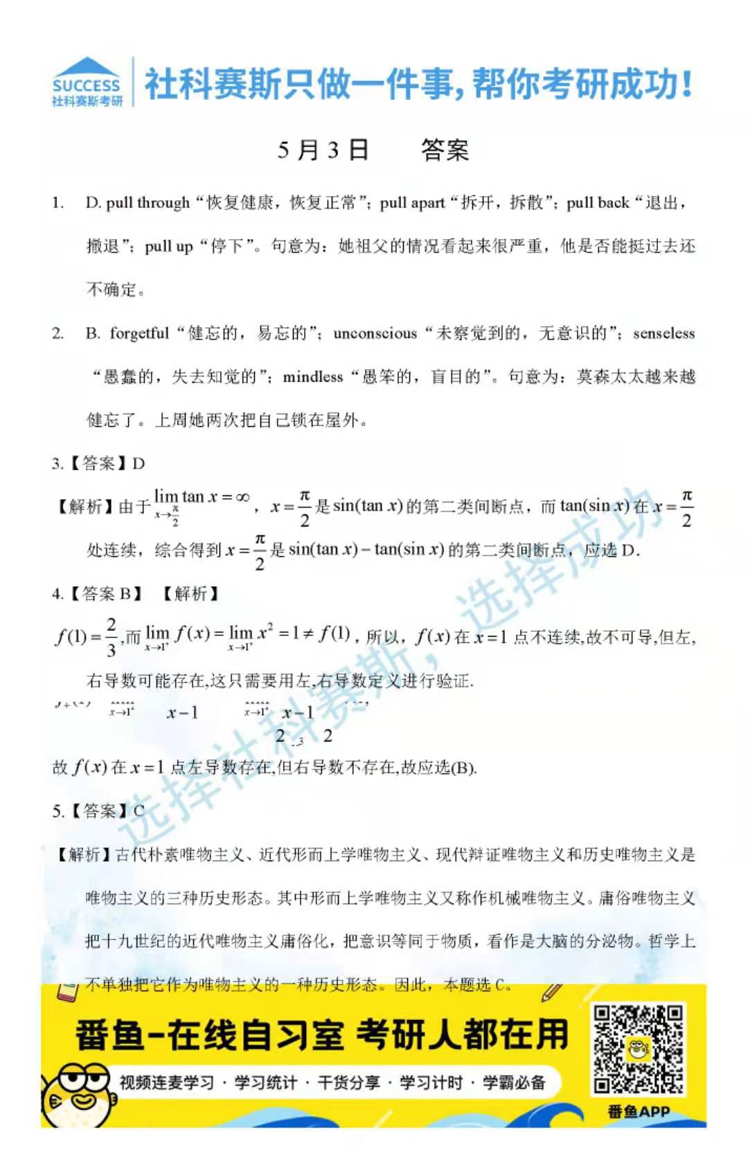 以上就是社科賽斯考研網(wǎng)小編為大家整理2022考研每日一練:5月3日管理類聯(lián)考每日一練及答案的全部?jī)?nèi)容,希望各位考生堅(jiān)持利用起來(lái),更多每日一練內(nèi)容請(qǐng)持續(xù)關(guān)注社科賽斯考研網(wǎng)
