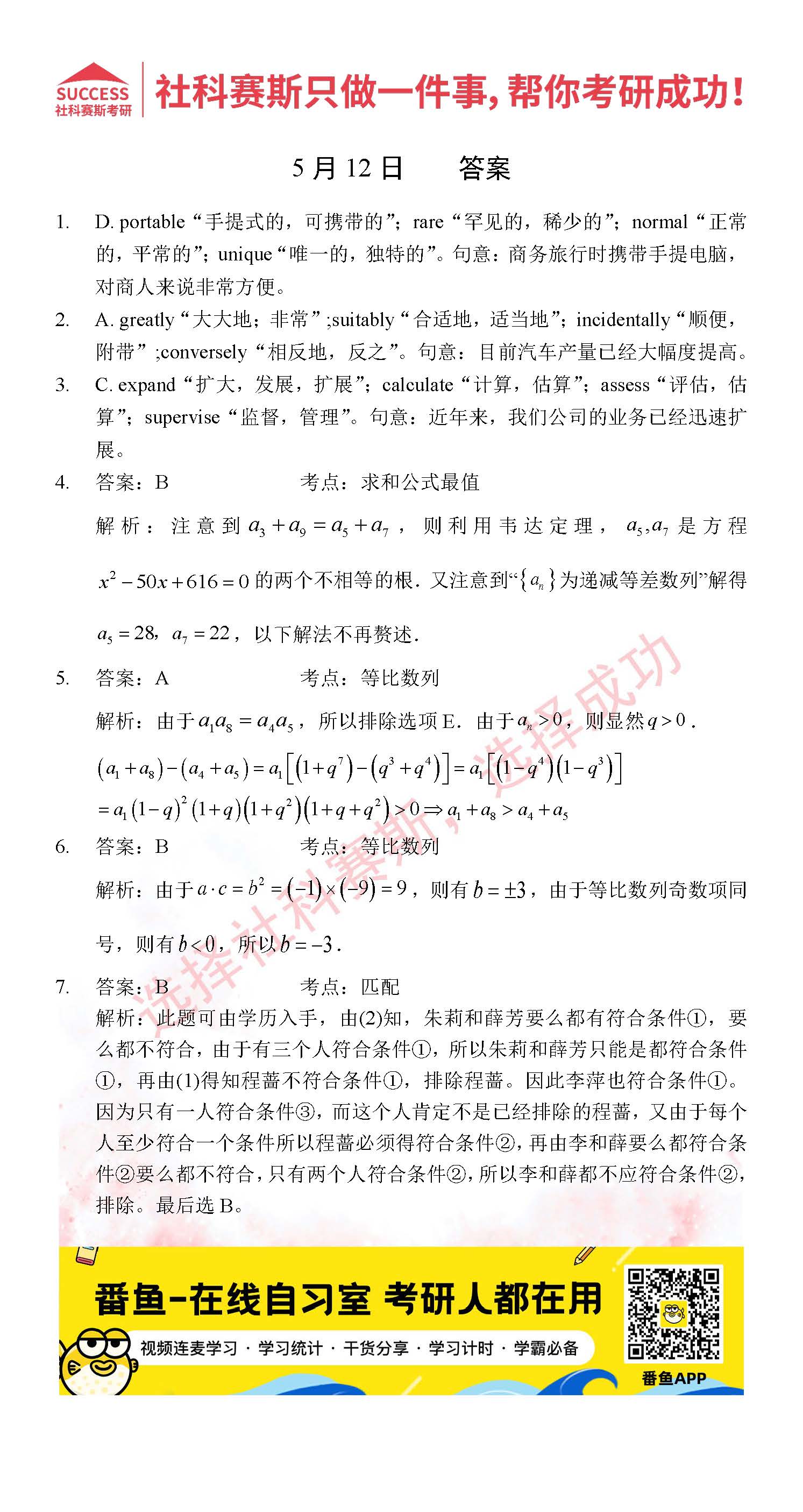 2022考研每日一練:5月12日管理類聯(lián)考每日一練及答案