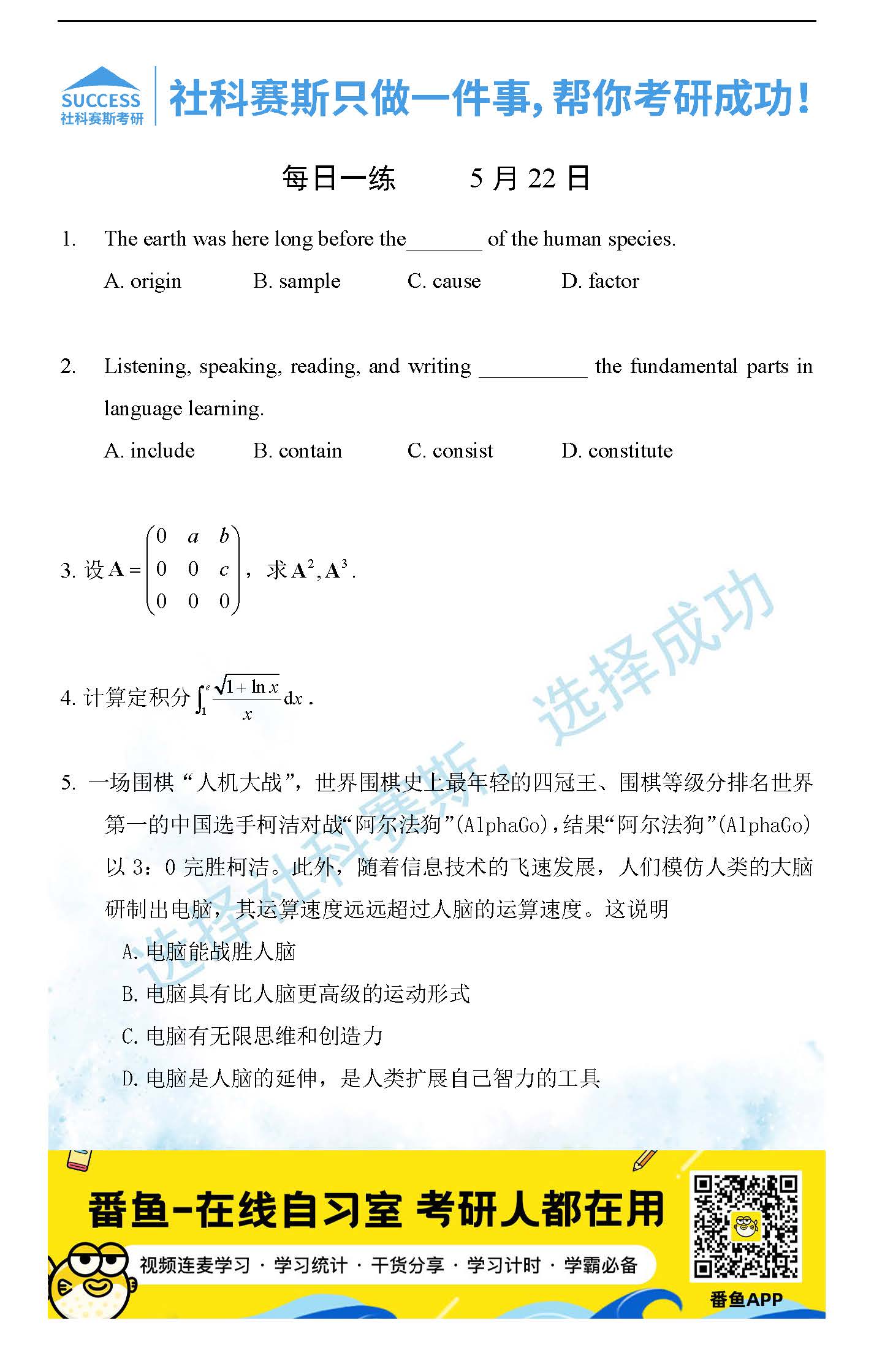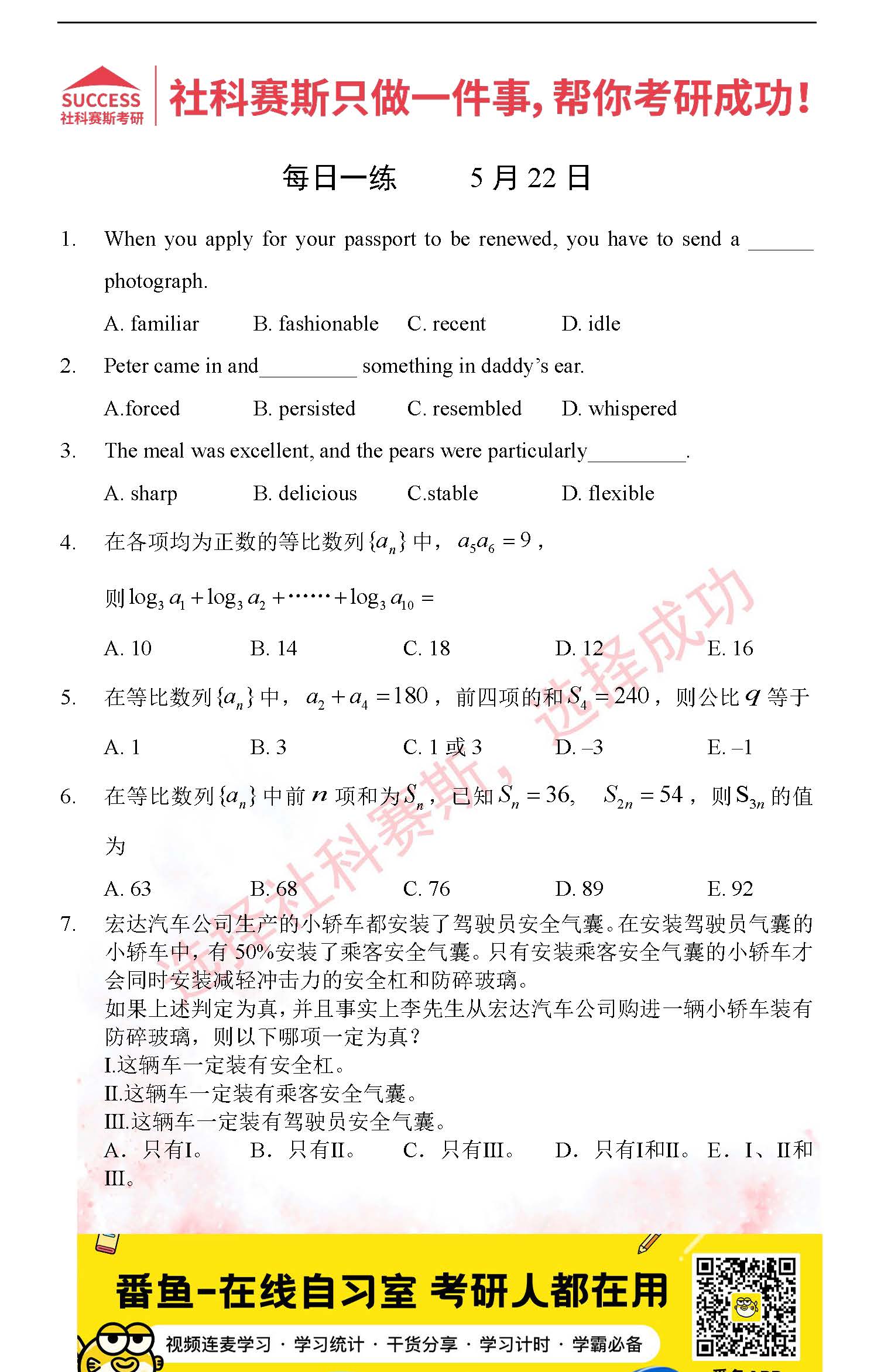 2022考研每日一練:5月22日管理類聯考每日一練及答案
