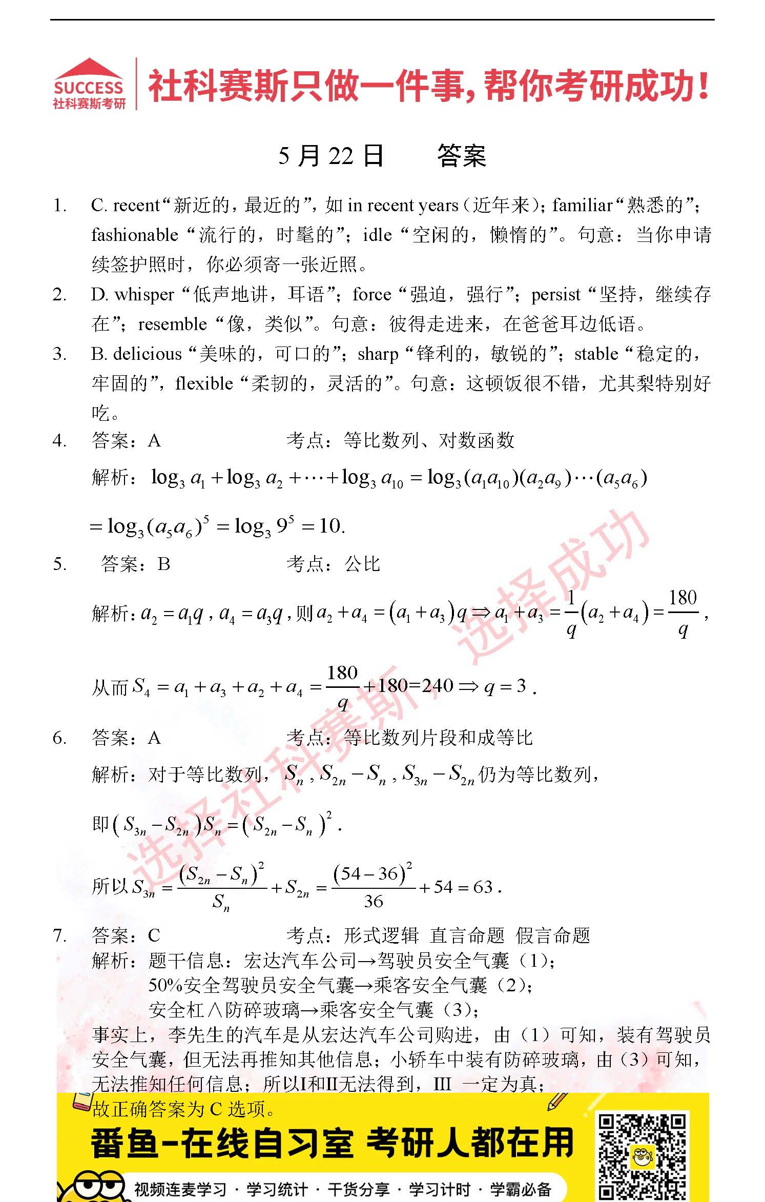 以上就是社科賽斯考研網小編為大家整理2022考研每日一練:5月22日管理類聯考每日一練及答案的全部內容,希望各位考生堅持利用起來,更多每日一練內容請持續關注社科賽斯考研網。