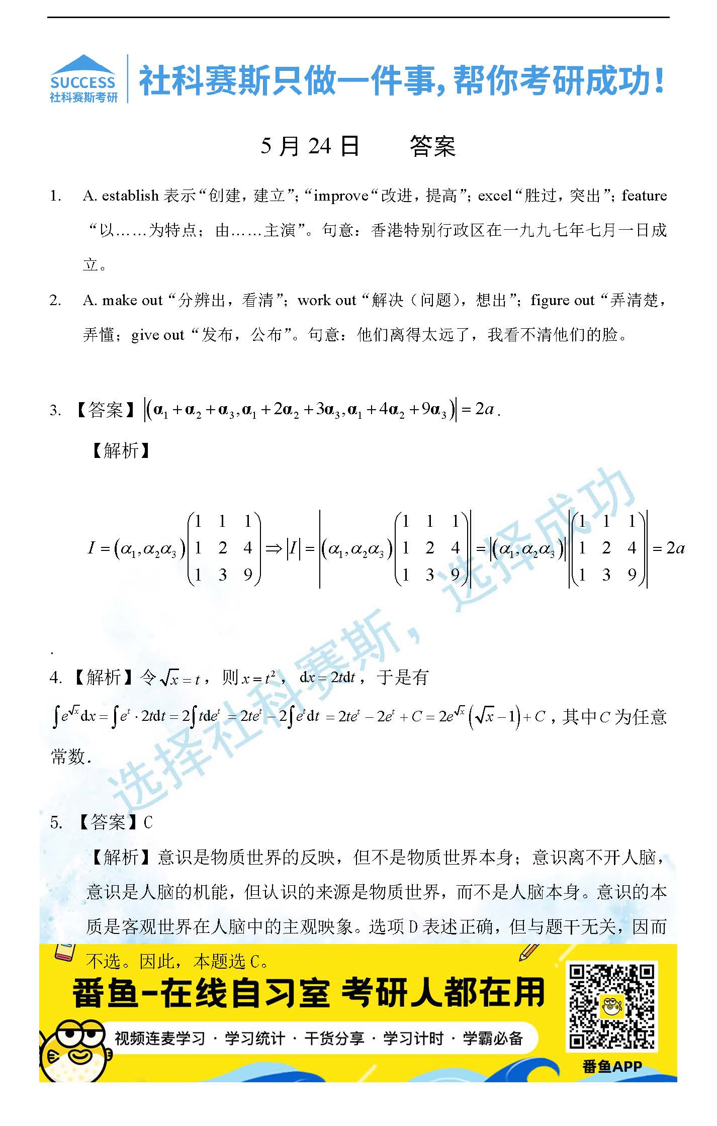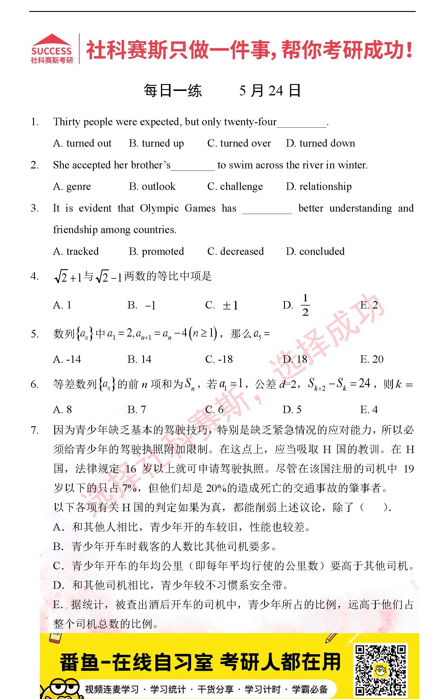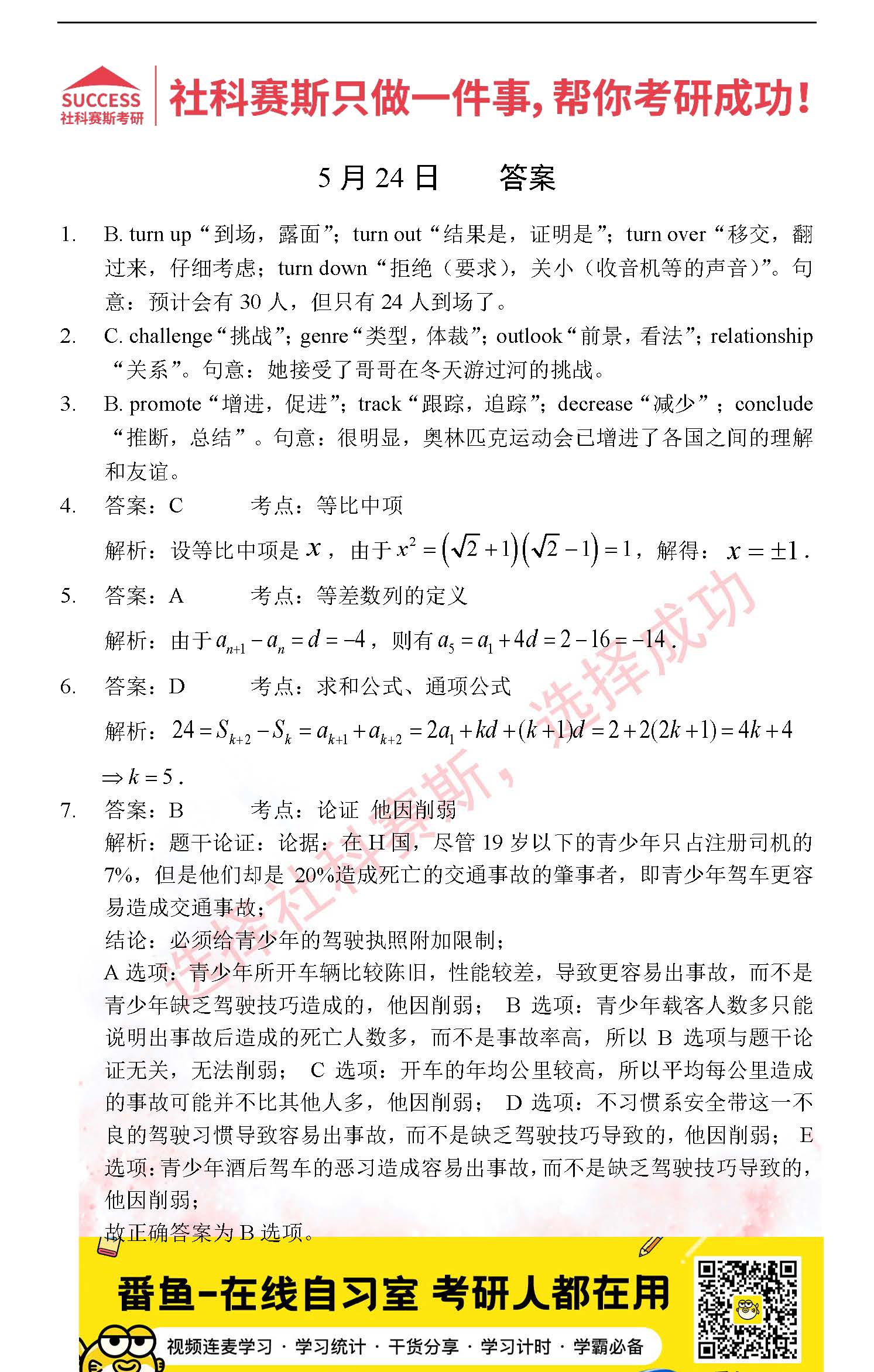 以上就是社科賽斯考研網小編為大家整理2022考研每日一練:5月24日管理類聯考每日一練及答案的全部內容,希望各位考生堅持利用起來,更多每日一練內容請持續關注社科賽斯考研網