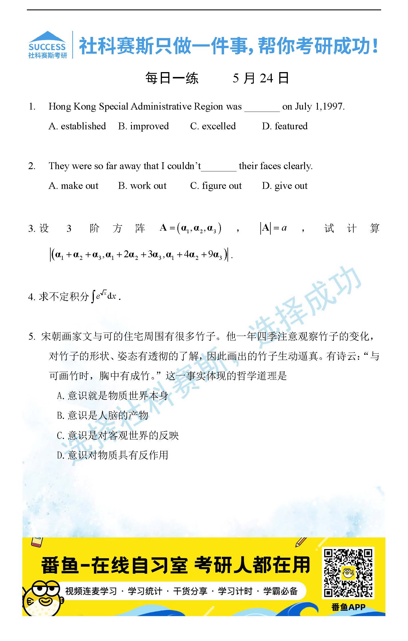 2022考研每日一練:5月24日管理類聯考每日一練及答案