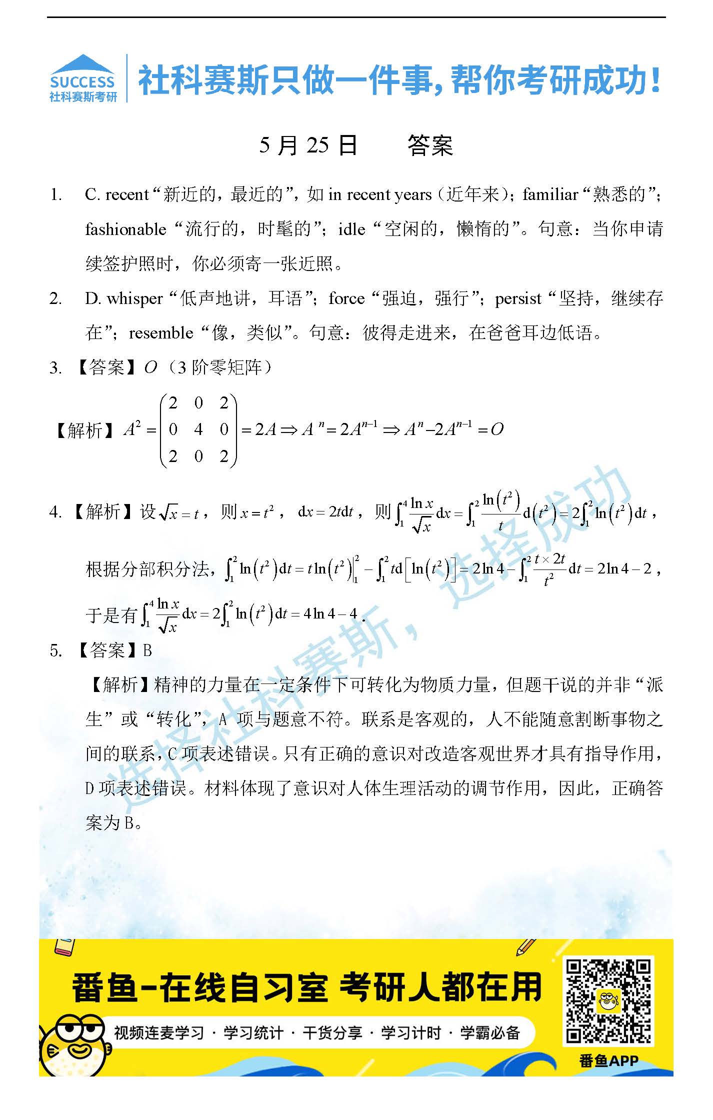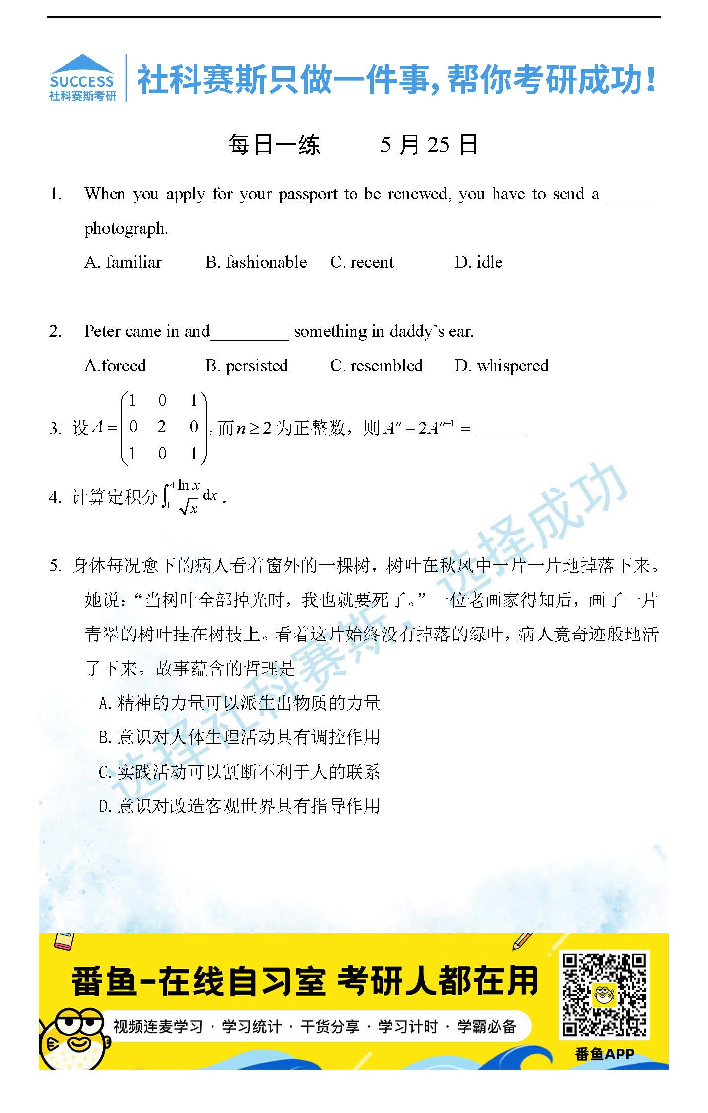 2022考研每日一練:5月25日管理類聯考每日一練及答案