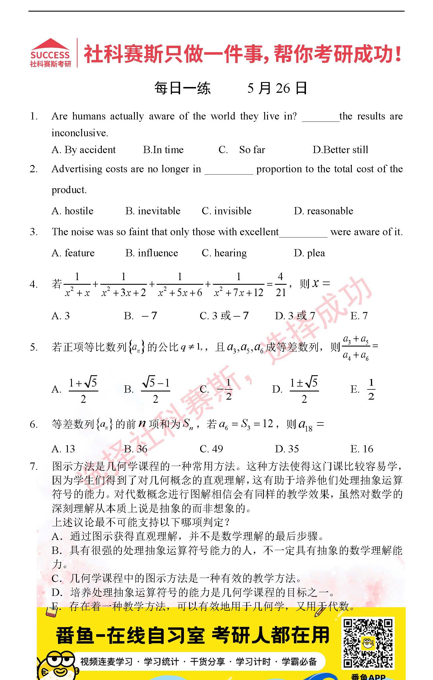 以上就是社科賽斯考研網(wǎng)小編為大家整理2022考研每日一練:5月26日管理類聯(lián)考每日一練及答案的全部內(nèi)容,希望各位考生堅(jiān)持利用起來,更多每日一練內(nèi)容請(qǐng)持續(xù)關(guān)注社科賽斯考研網(wǎng)