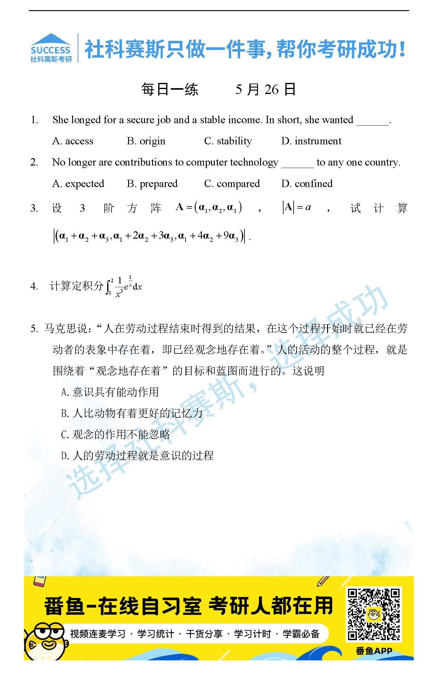 2022考研每日一練:5月26日管理類聯(lián)考每日一練及答案
