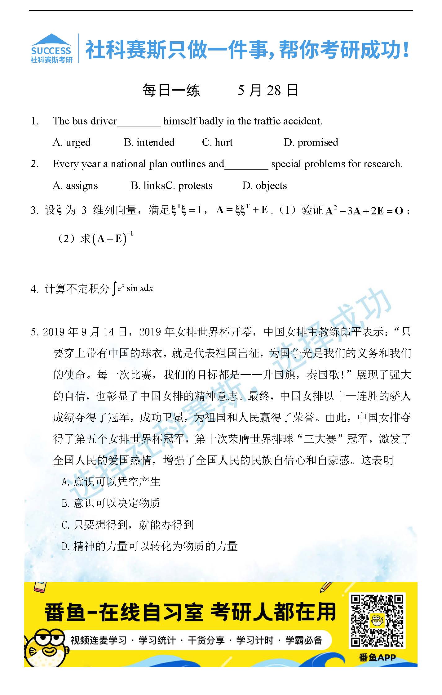 2022考研每日一練:5月28日管理類聯(lián)考每日一練及答案