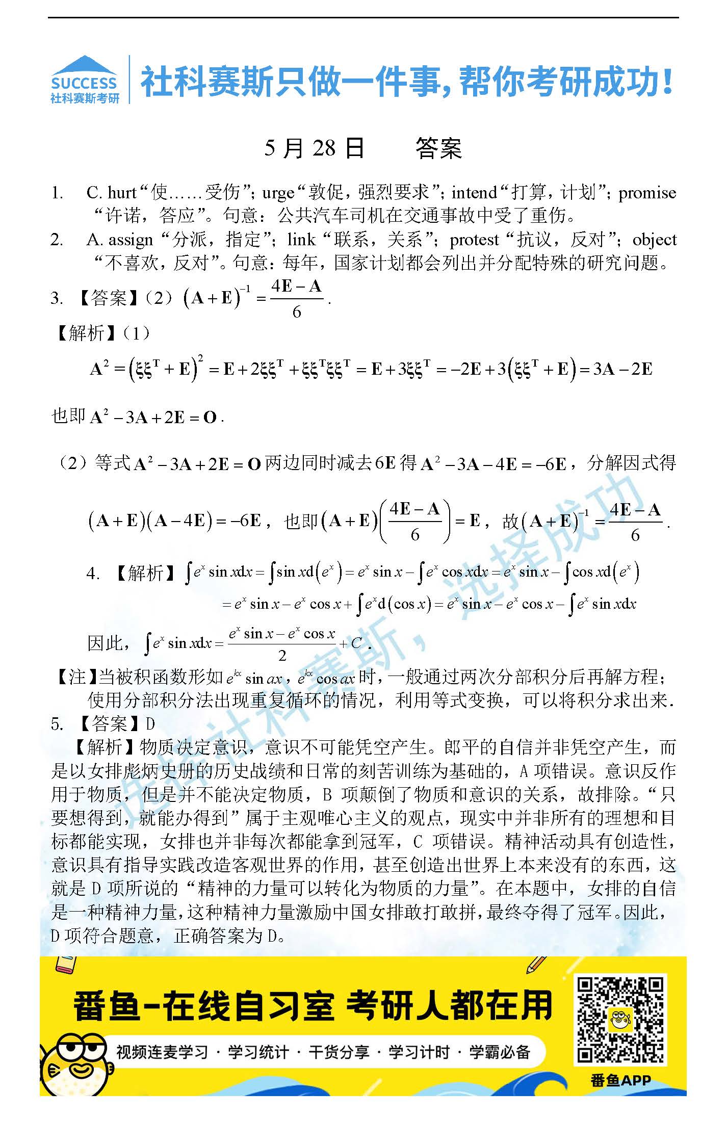 考研是一場持久戰(zhàn),保持良好的學(xué)習(xí)習(xí)慣,是能確保復(fù)習(xí)高效的關(guān)鍵。今天社科賽斯考研網(wǎng)小編整理了“2022考研每日一練:5月28日管理類聯(lián)考每日一練及答案”的內(nèi)容,希望能對廣大考生有所幫助。
