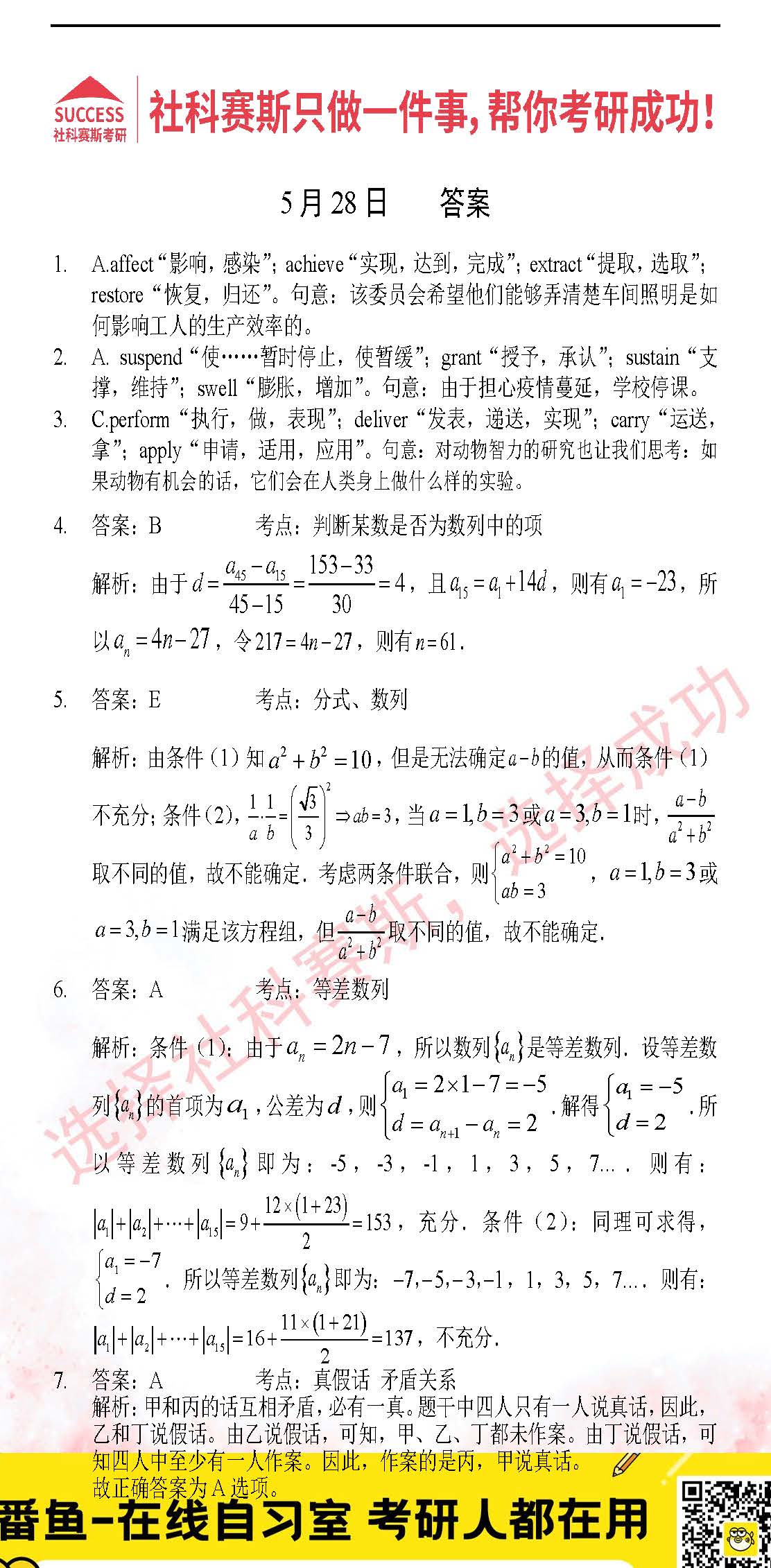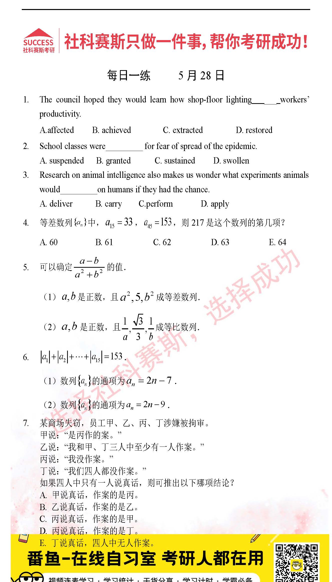以上就是社科賽斯考研網(wǎng)小編為大家整理2022考研每日一練:5月28日管理類聯(lián)考每日一練及答案的全部內(nèi)容,希望各位考生堅持利用起來,更多每日一練內(nèi)容請持續(xù)關(guān)注社科賽斯考研網(wǎng)。