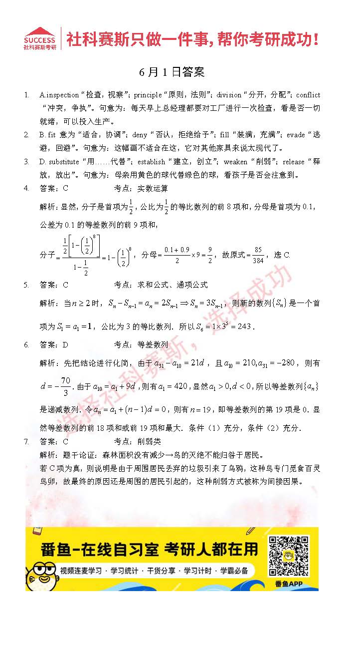 以上就是社科賽斯考研網小編為大家整理2022考研每日一練:6月1日管理類聯考每日一練及答案的全部內容,希望各位考生堅持利用起來,更多每日一練內容請持續關注社科賽斯考研網