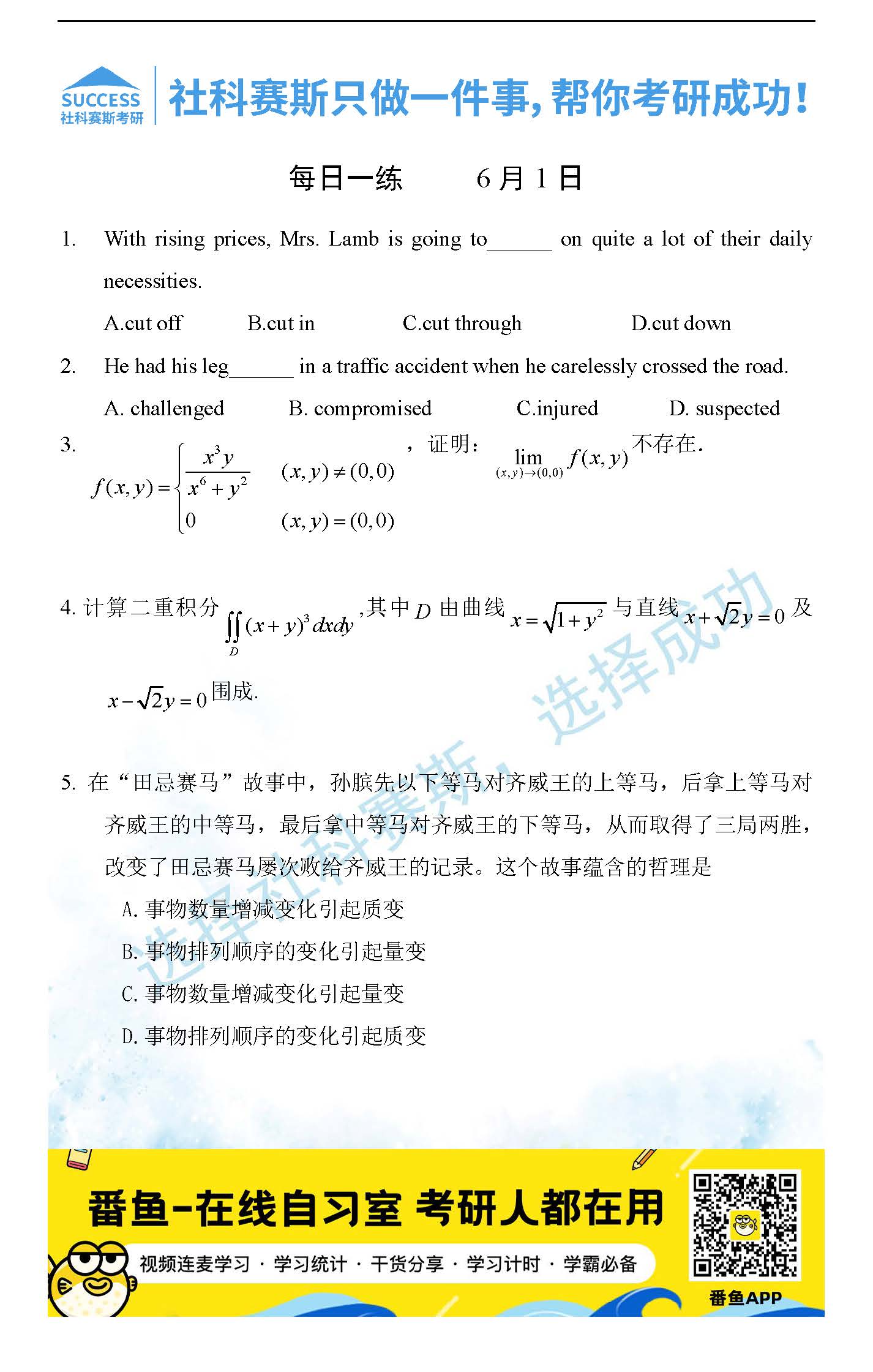 2022考研每日一練:6月1日管理類聯考每日一練及答案