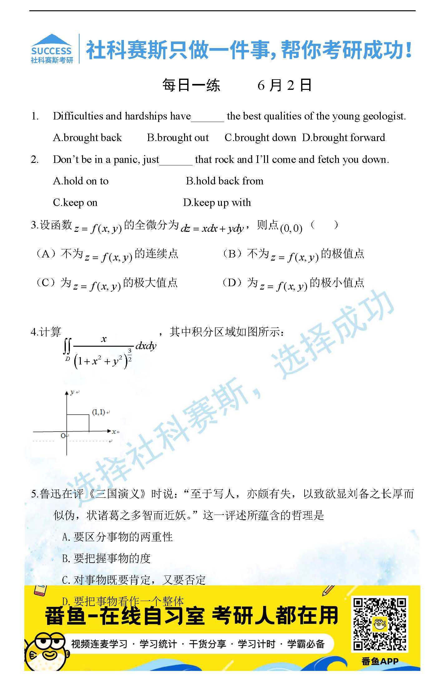 2022考研每日一練:6月2日管理類聯考每日一練及答案