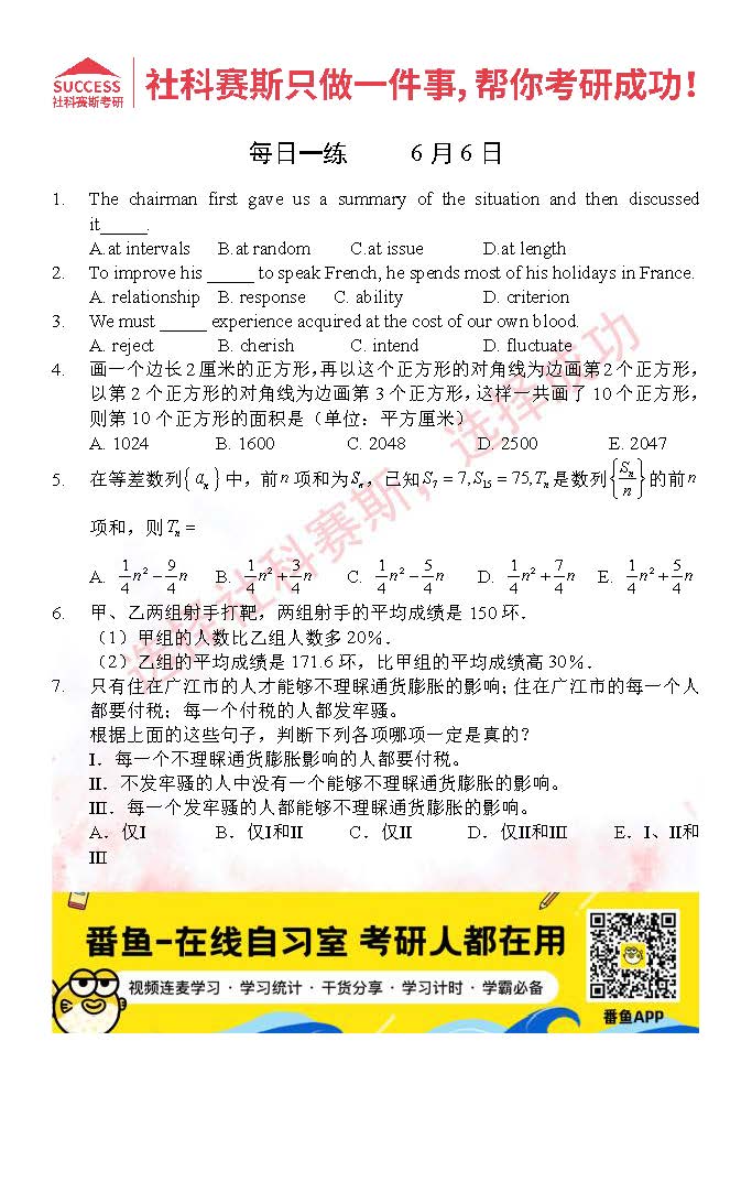 2022考研每日一練:6月6日管理類聯(lián)考每日一練及答案