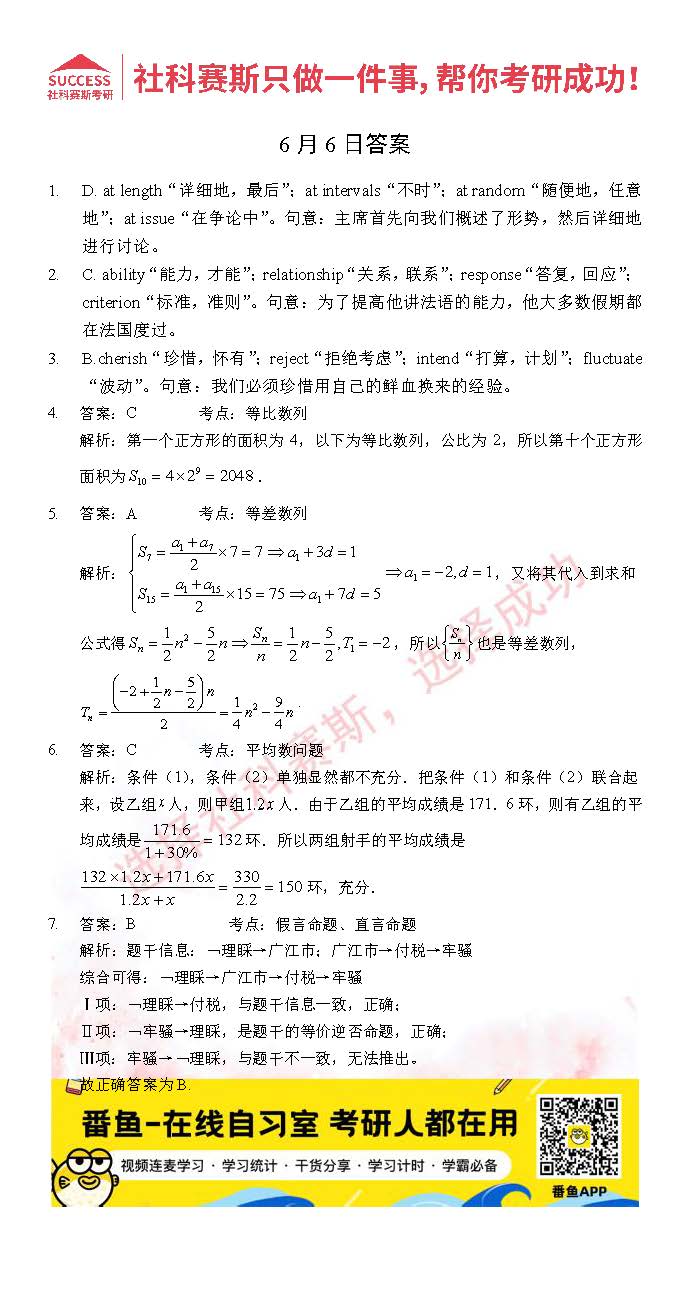 以上就是社科賽斯考研網(wǎng)小編為大家整理2022考研每日一練:6月6日管理類聯(lián)考每日一練及答案的全部內(nèi)容,希望各位考生堅持利用起來,更多每日一練內(nèi)容請持續(xù)關(guān)注社科賽斯考研網(wǎng)
