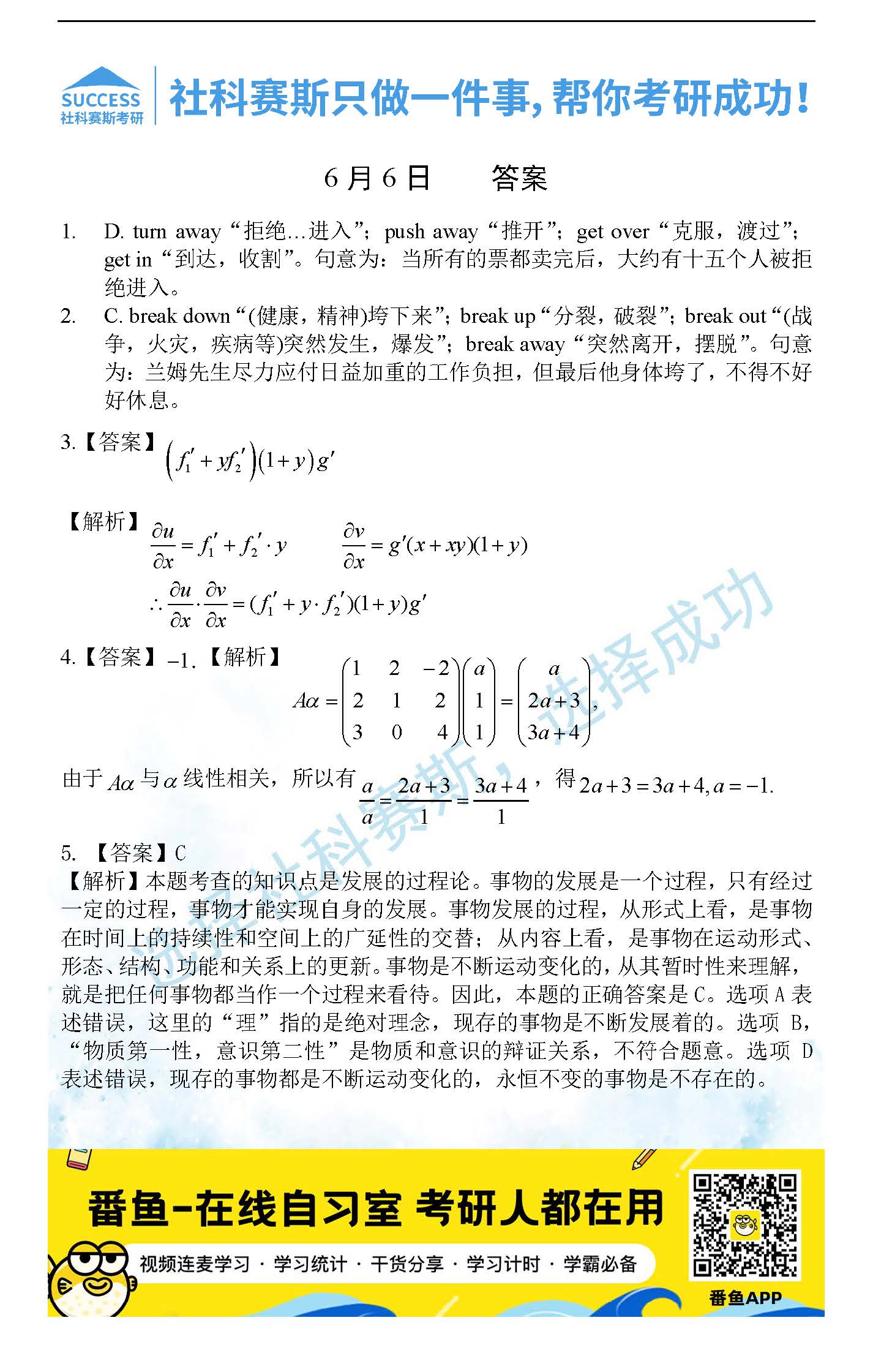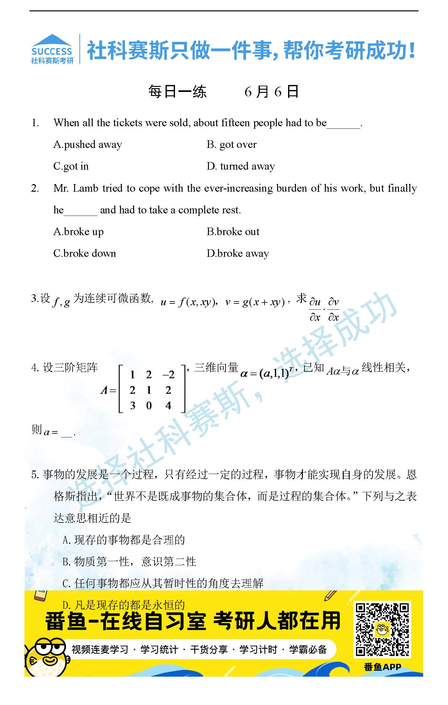考研是一場持久戰(zhàn),保持良好的學(xué)習(xí)習(xí)慣,是能確保復(fù)習(xí)高效的關(guān)鍵。今天社科賽斯考研網(wǎng)小編整理了“2022考研每日一練:6月6日管理類聯(lián)考每日一練及答案”的內(nèi)容,希望能對廣大考生有所幫助。