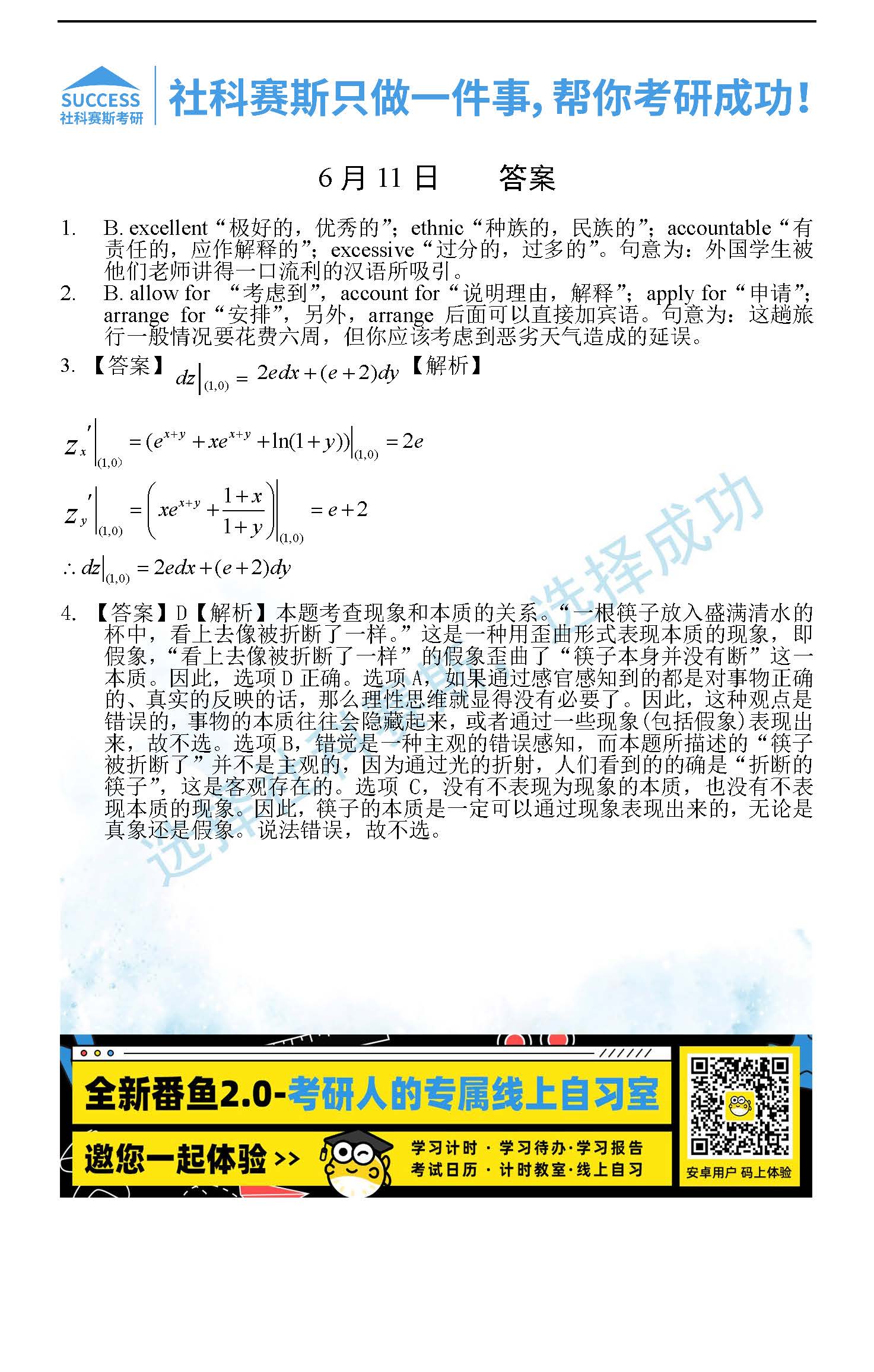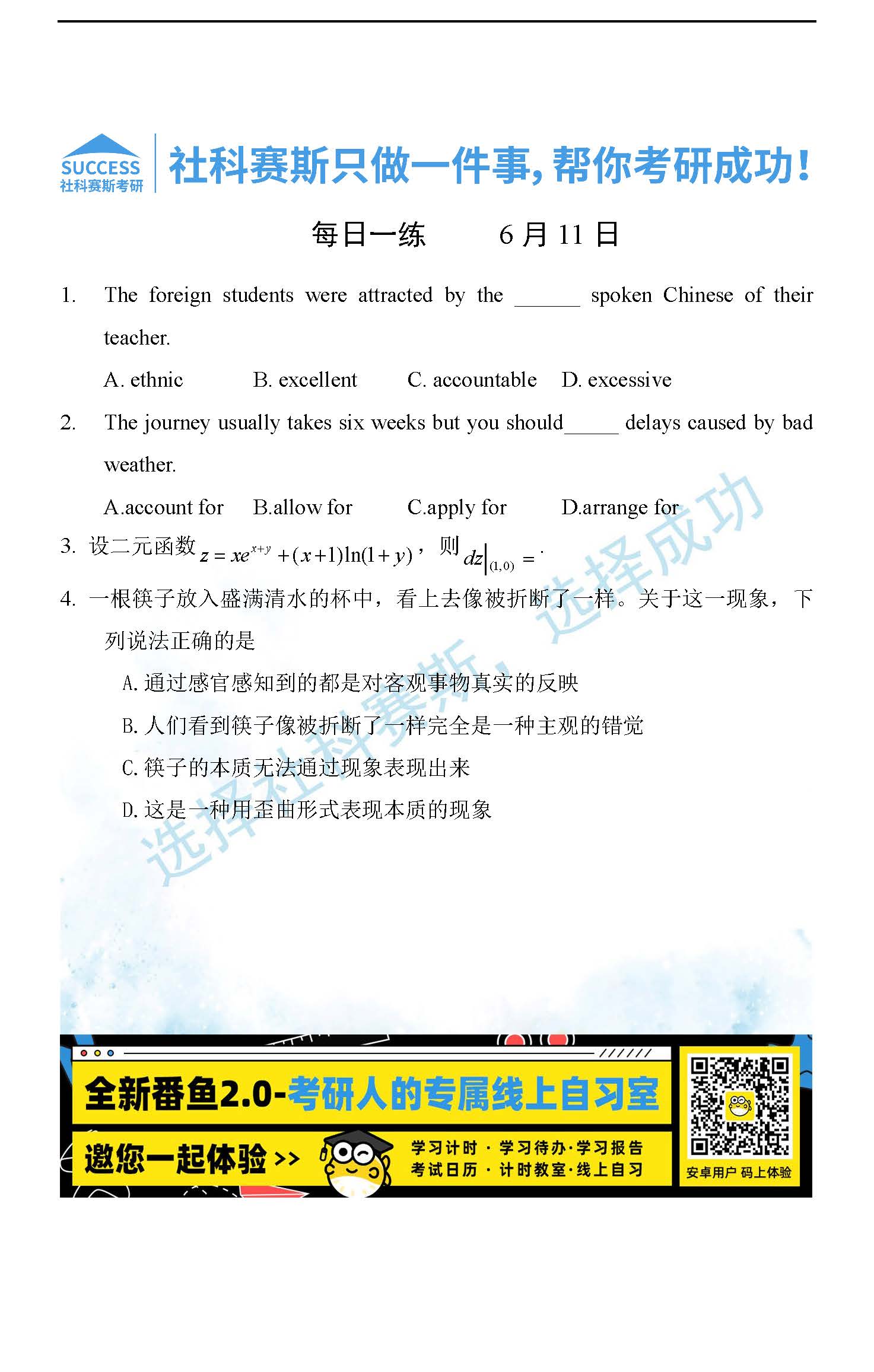 以上就是社科賽斯考研網小編為大家整理2022考研每日一練:6月11日管理類聯考每日一練及答案的全部內容,希望各位考生堅持利用起來,更多每日一練內容請持續關注社科賽斯考研網