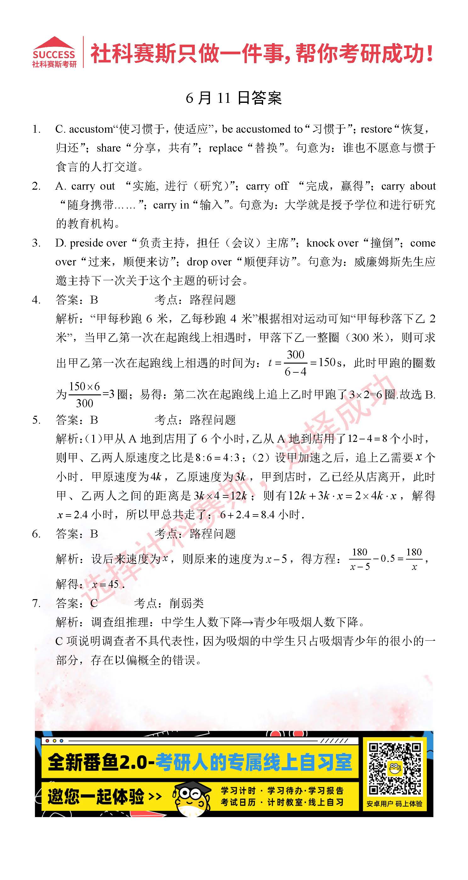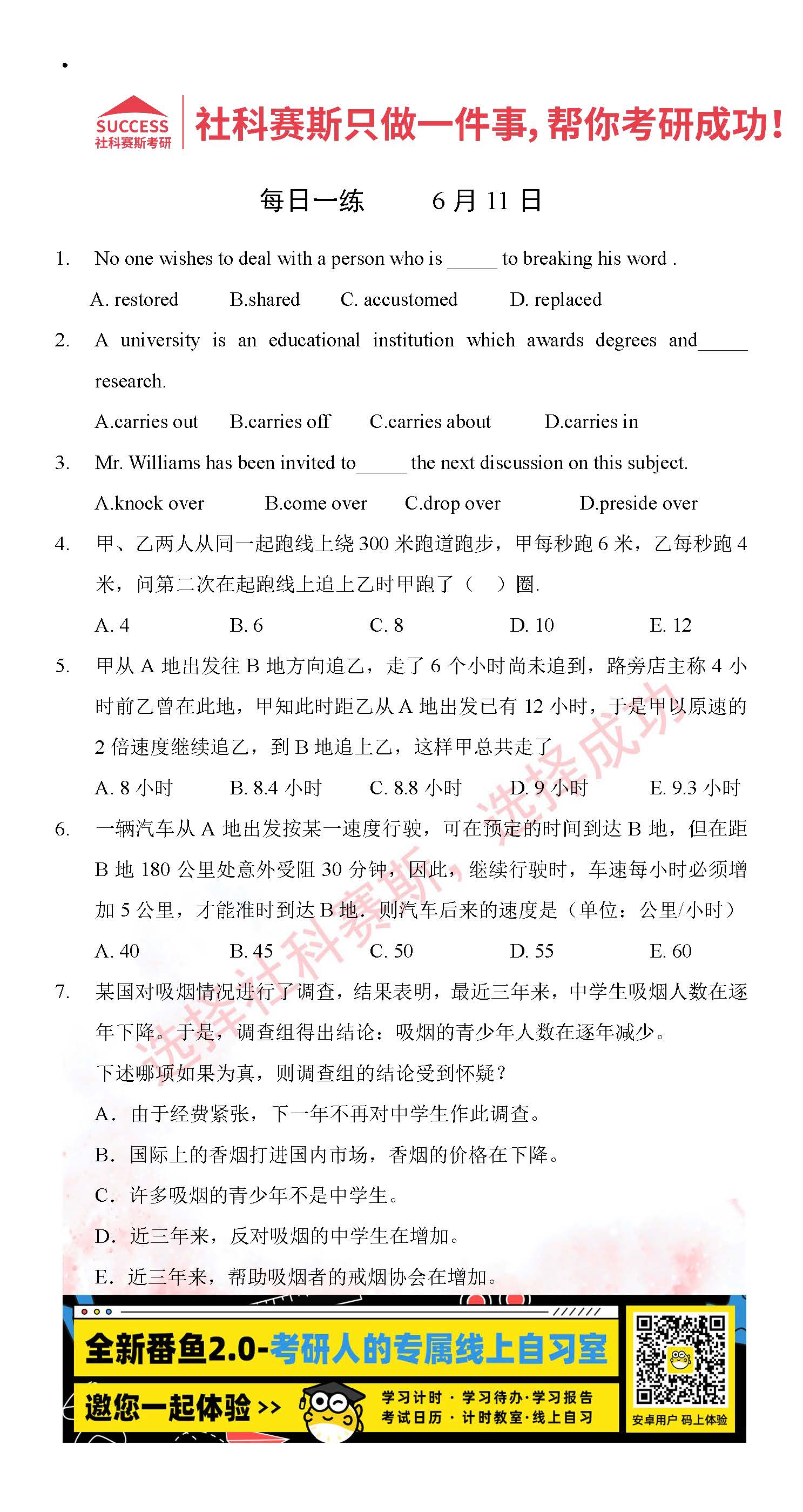 2022考研每日一練:6月11日管理類聯考每日一練及答案
