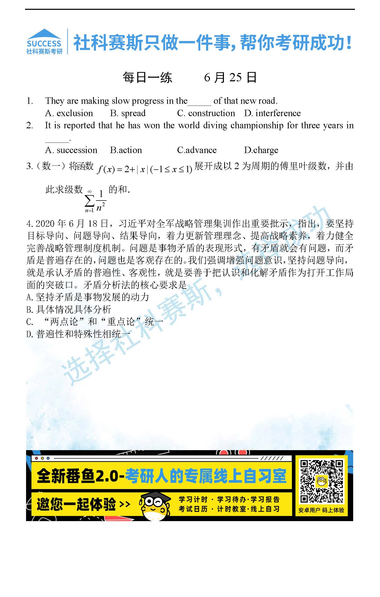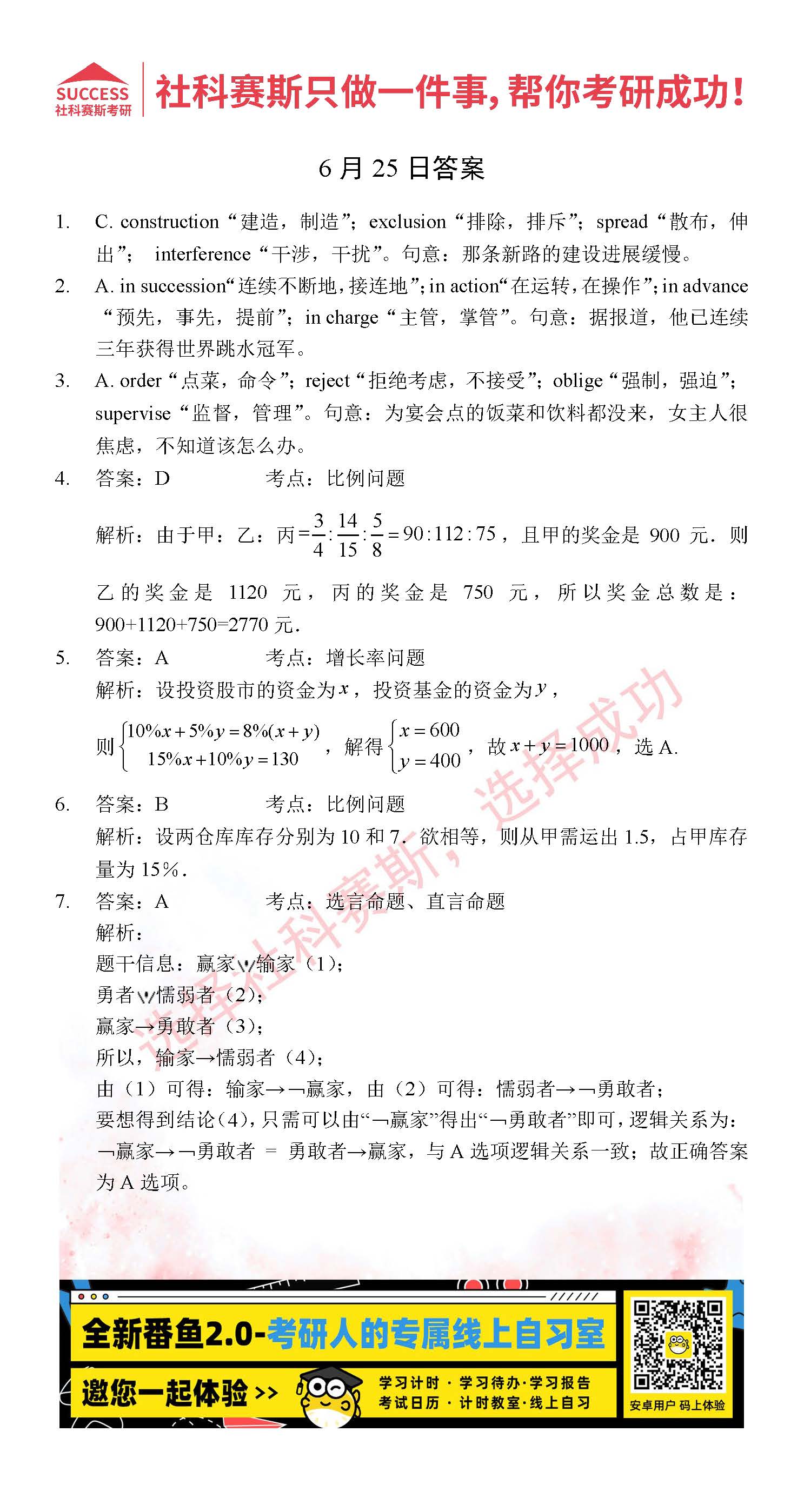以上就是社科賽斯考研網小編為大家整理2022考研每日一練:6月25日管理類聯考每日一練及答案的全部內容,希望各位考生堅持利用起來,更多每日一練內容請持續關注社科賽斯考研網
