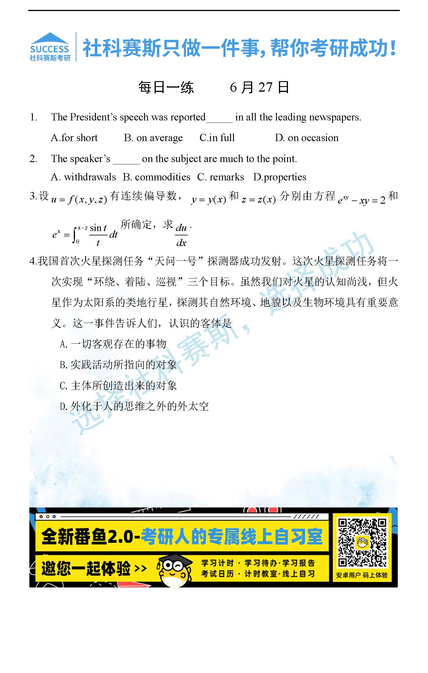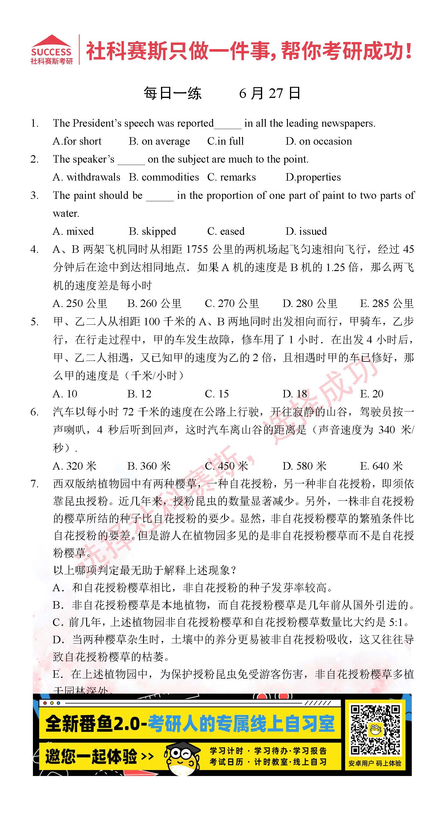 2022考研每日一練:6月27日管理類聯考每日一練及答案