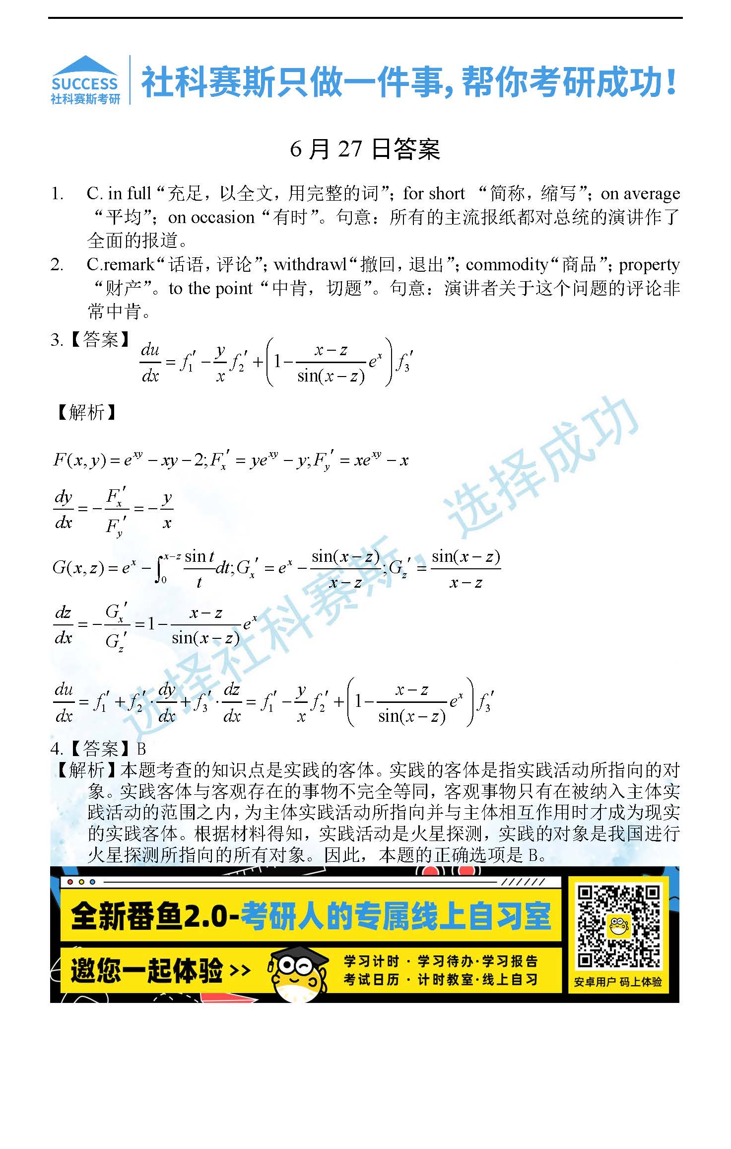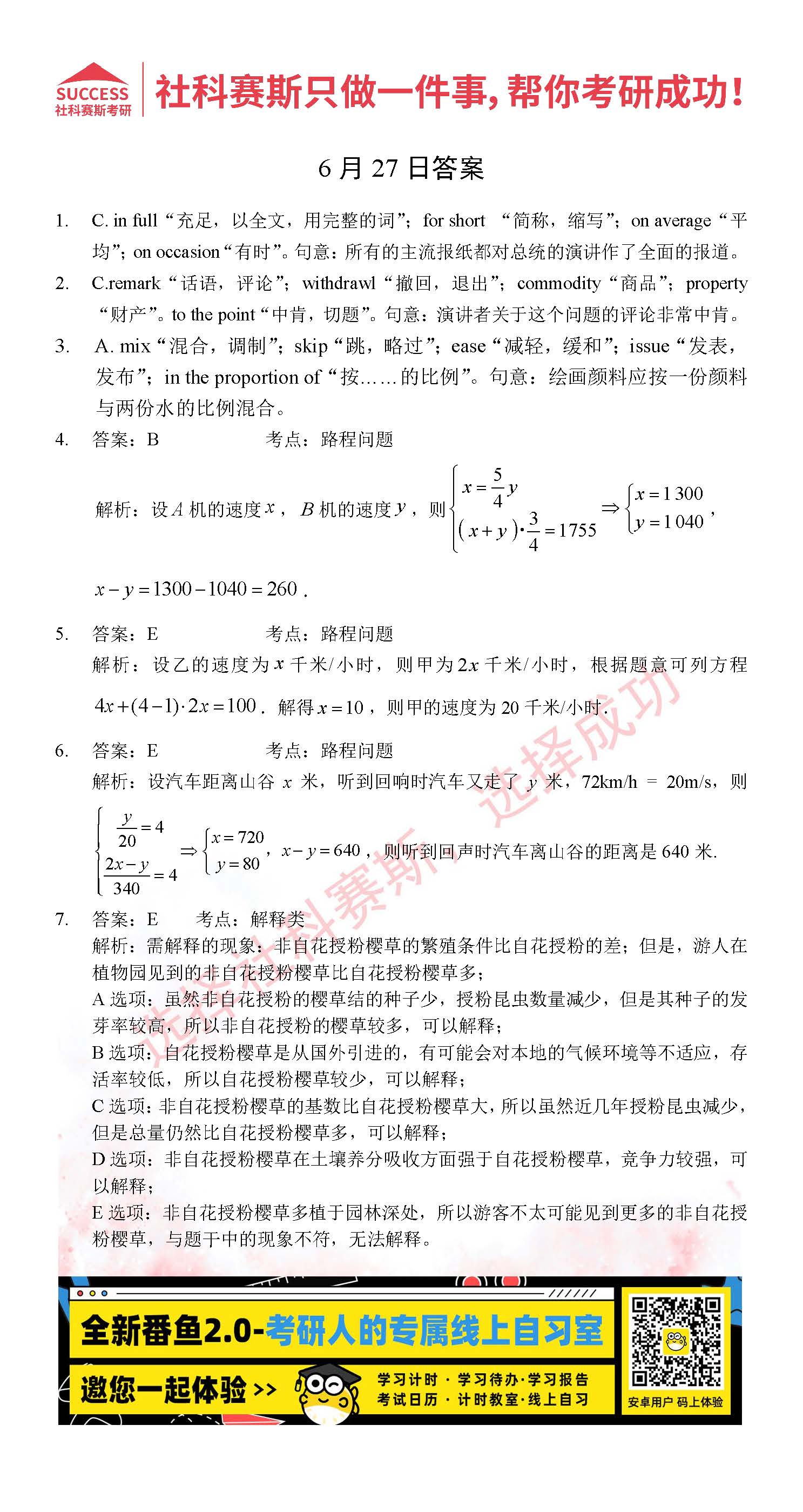 以上就是社科賽斯考研網小編為大家整理2022考研每日一練:6月27日管理類聯考每日一練及答案的全部內容,希望各位考生堅持利用起來,更多每日一練內容請持續關注社科賽斯考研網