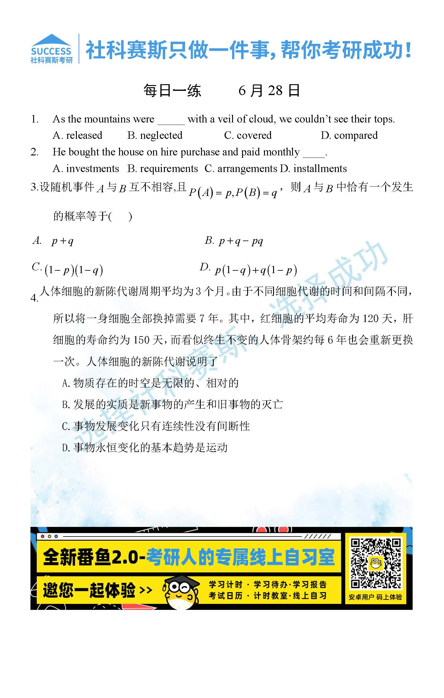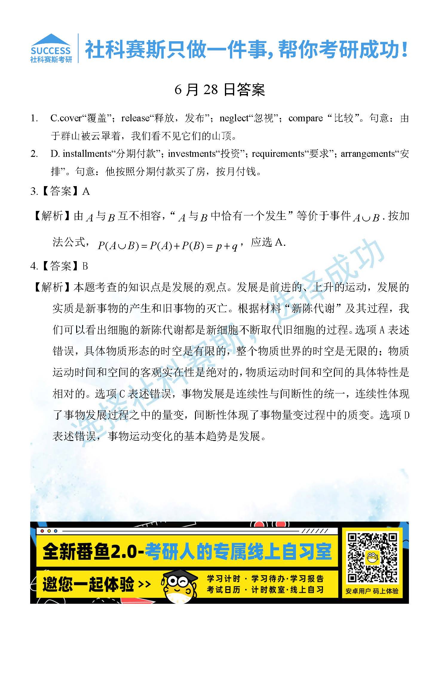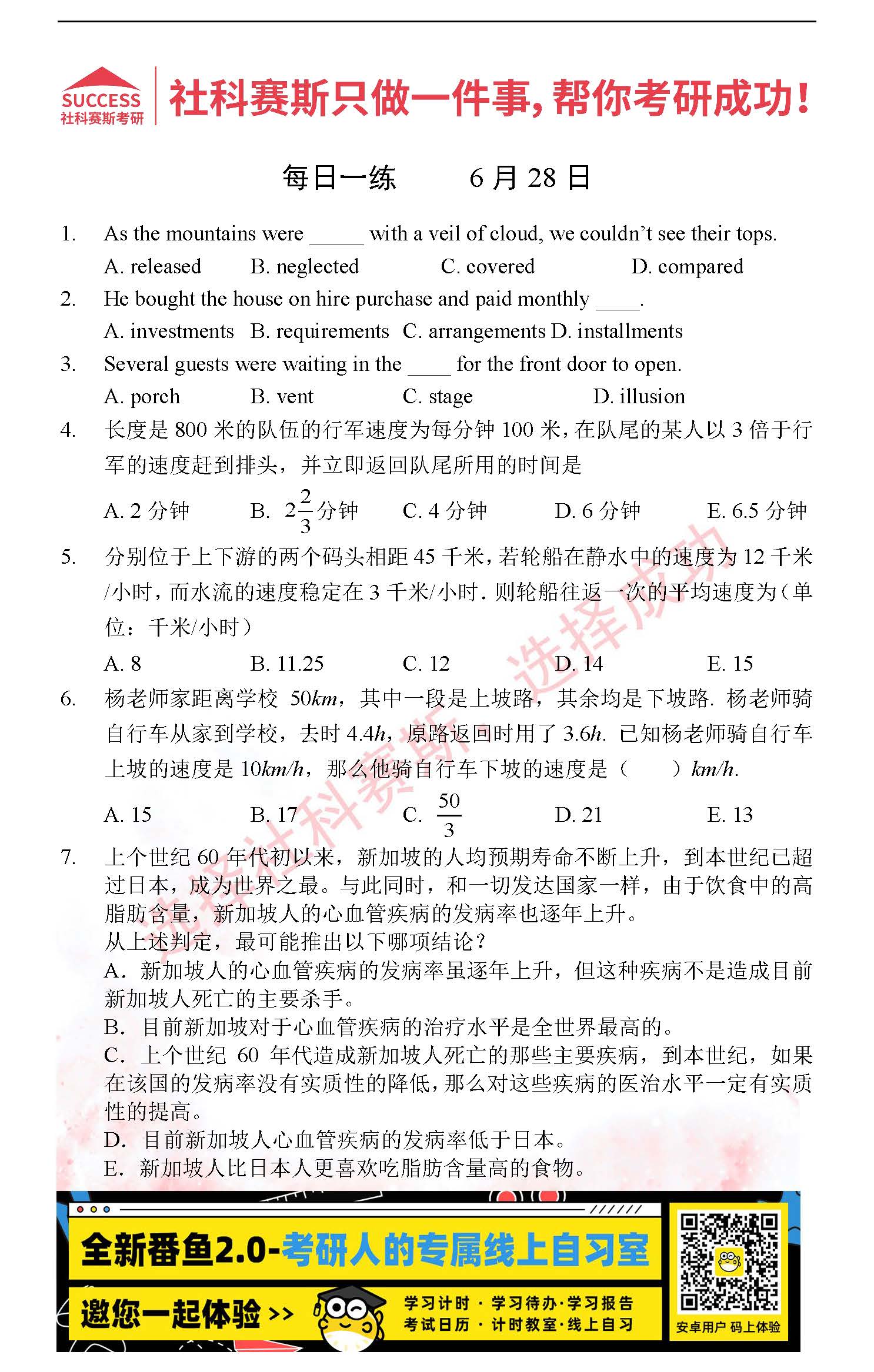 考研是一場持久戰(zhàn),保持良好的學(xué)習(xí)習(xí)慣,是能確保復(fù)習(xí)高效的關(guān)鍵。今天社科賽斯考研網(wǎng)小編整理了“2022考研每日一練:6月28日管理類聯(lián)考每日一練及答案”的內(nèi)容,希望能對廣大考生有所幫助。