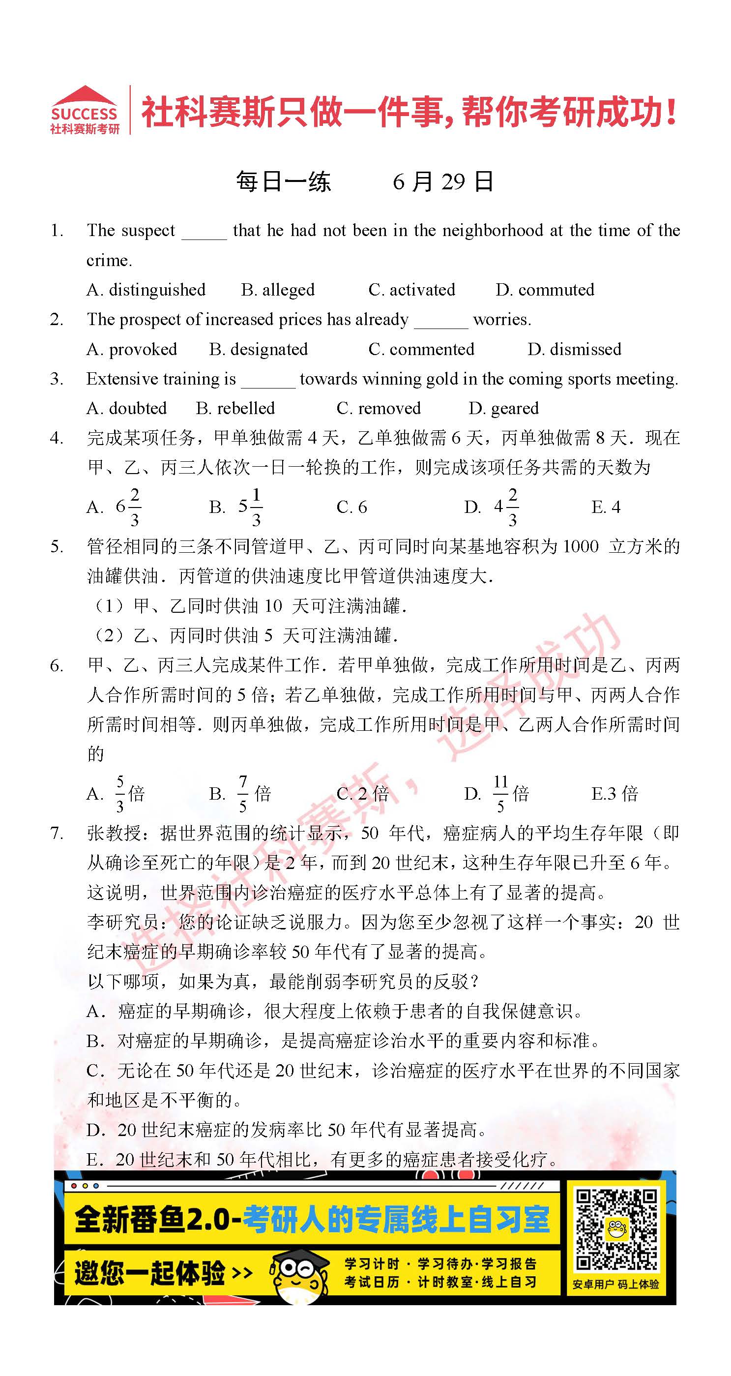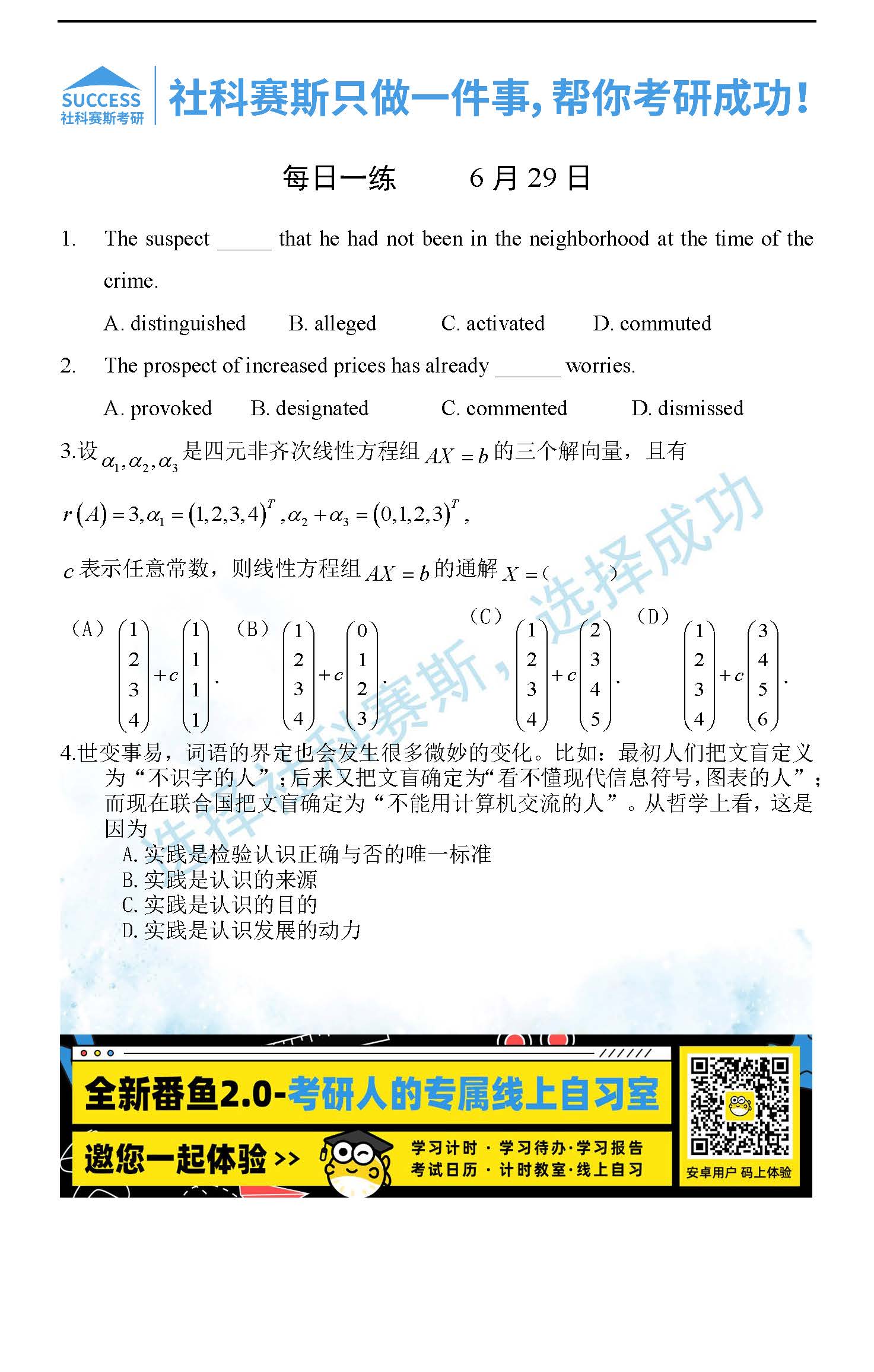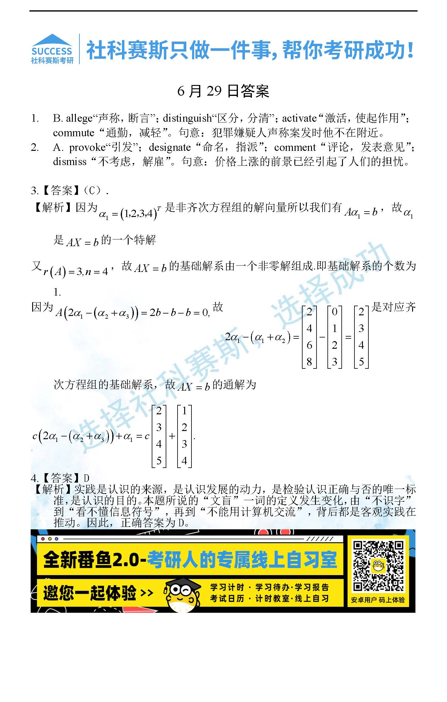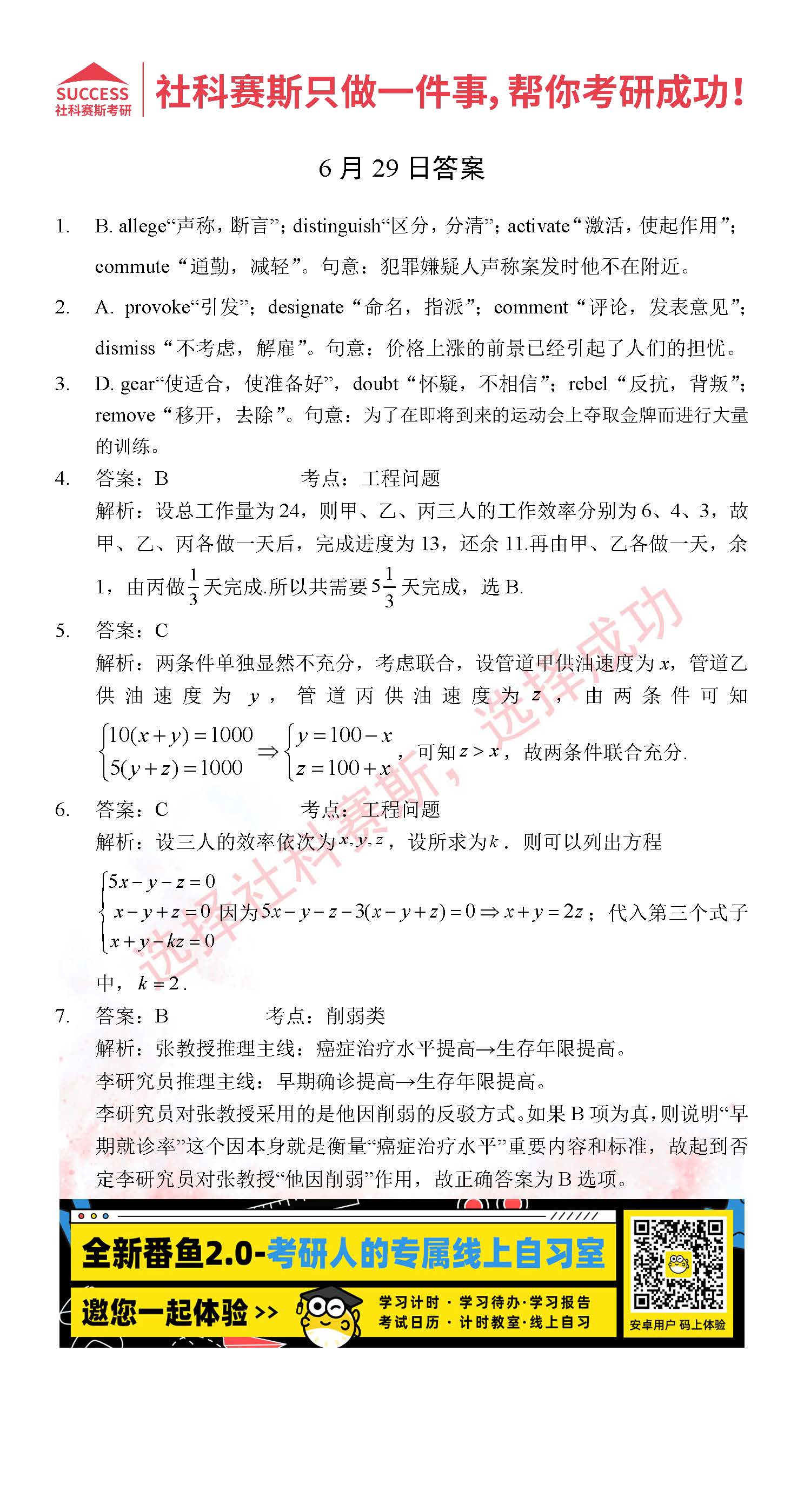 以上就是社科賽斯考研網小編為大家整理2022考研每日一練:6月29日管理類聯考每日一練及答案的全部內容,希望各位考生堅持利用起來,更多每日一練內容請持續關注社科賽斯考研網
