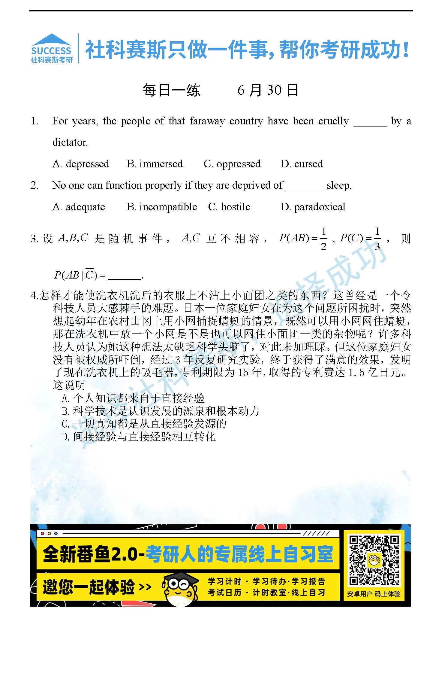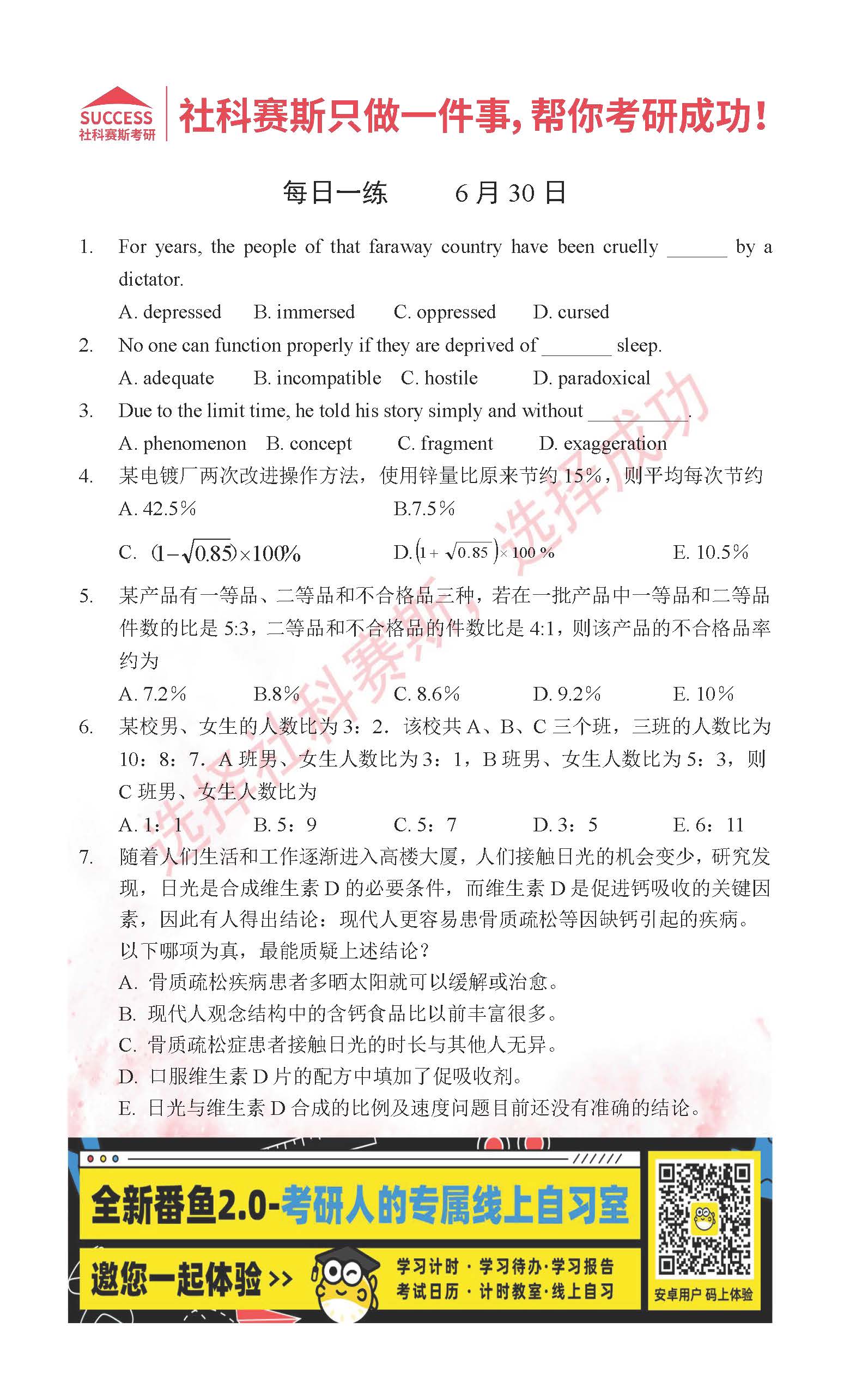2022考研每日一練:6月30日管理類聯考每日一練及答案