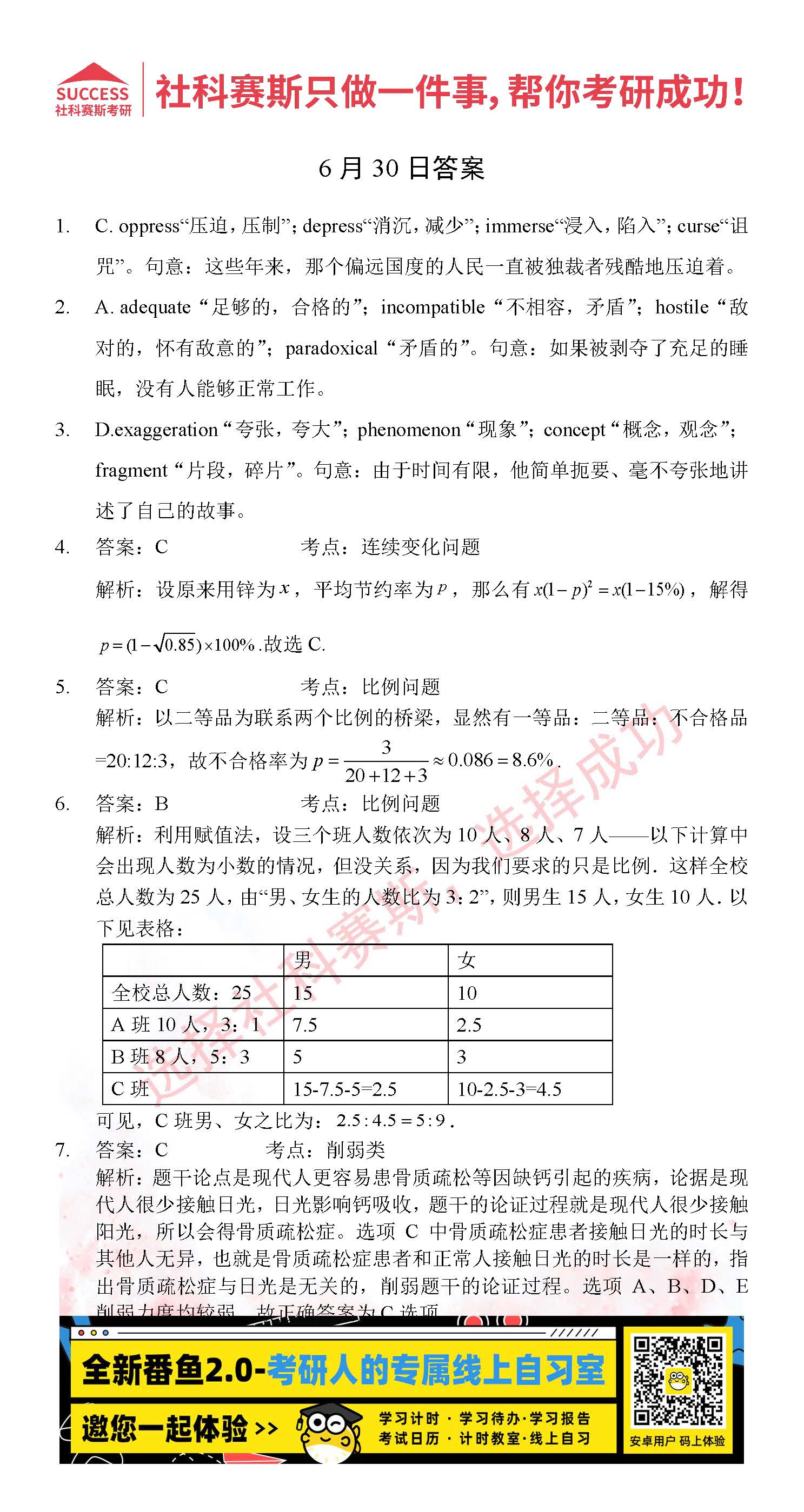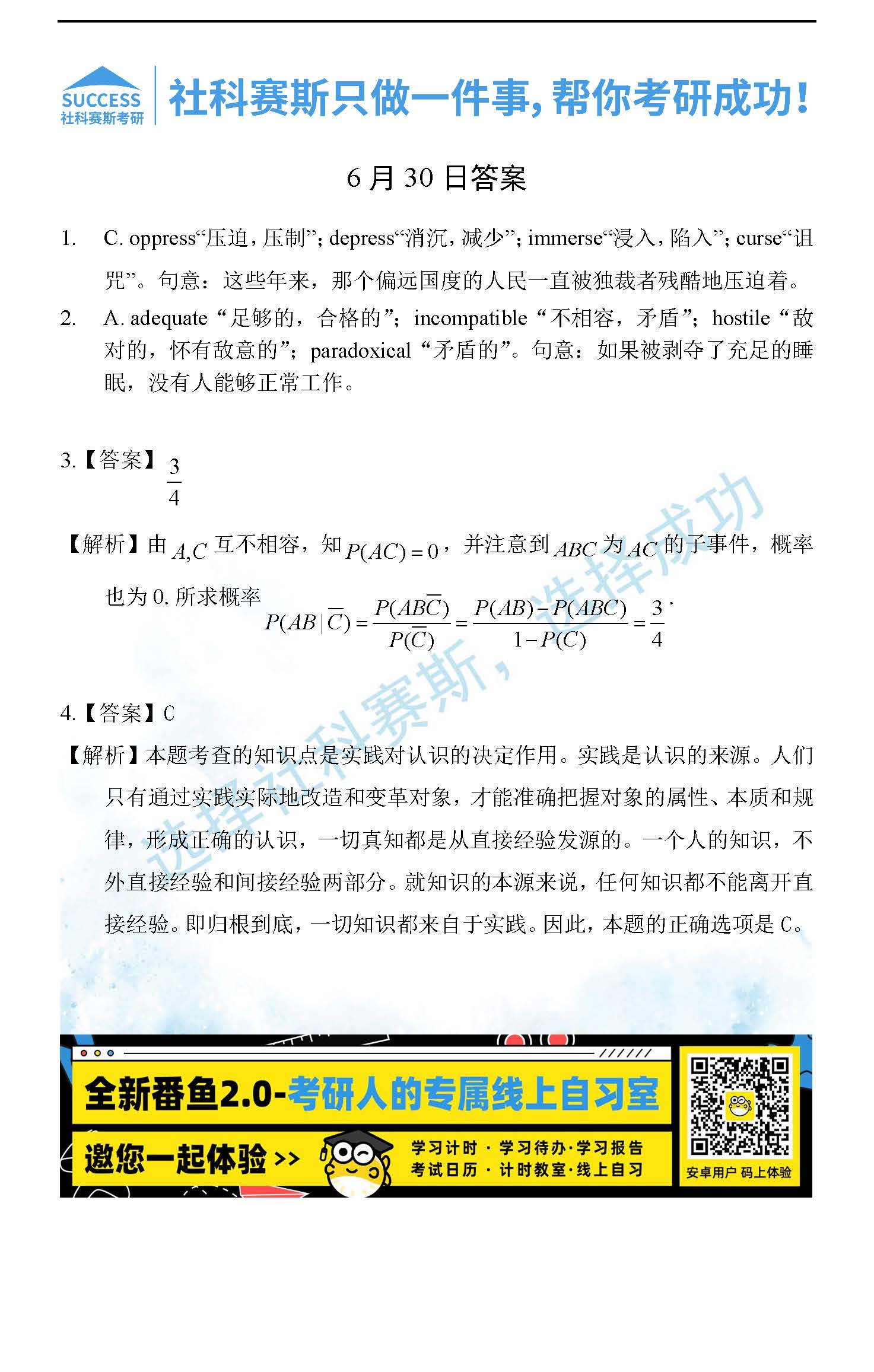 以上就是社科賽斯考研網小編為大家整理2022考研每日一練:6月30日管理類聯考每日一練及答案的全部內容,希望各位考生堅持利用起來,更多每日一練內容請持續關注社科賽斯考研網。
