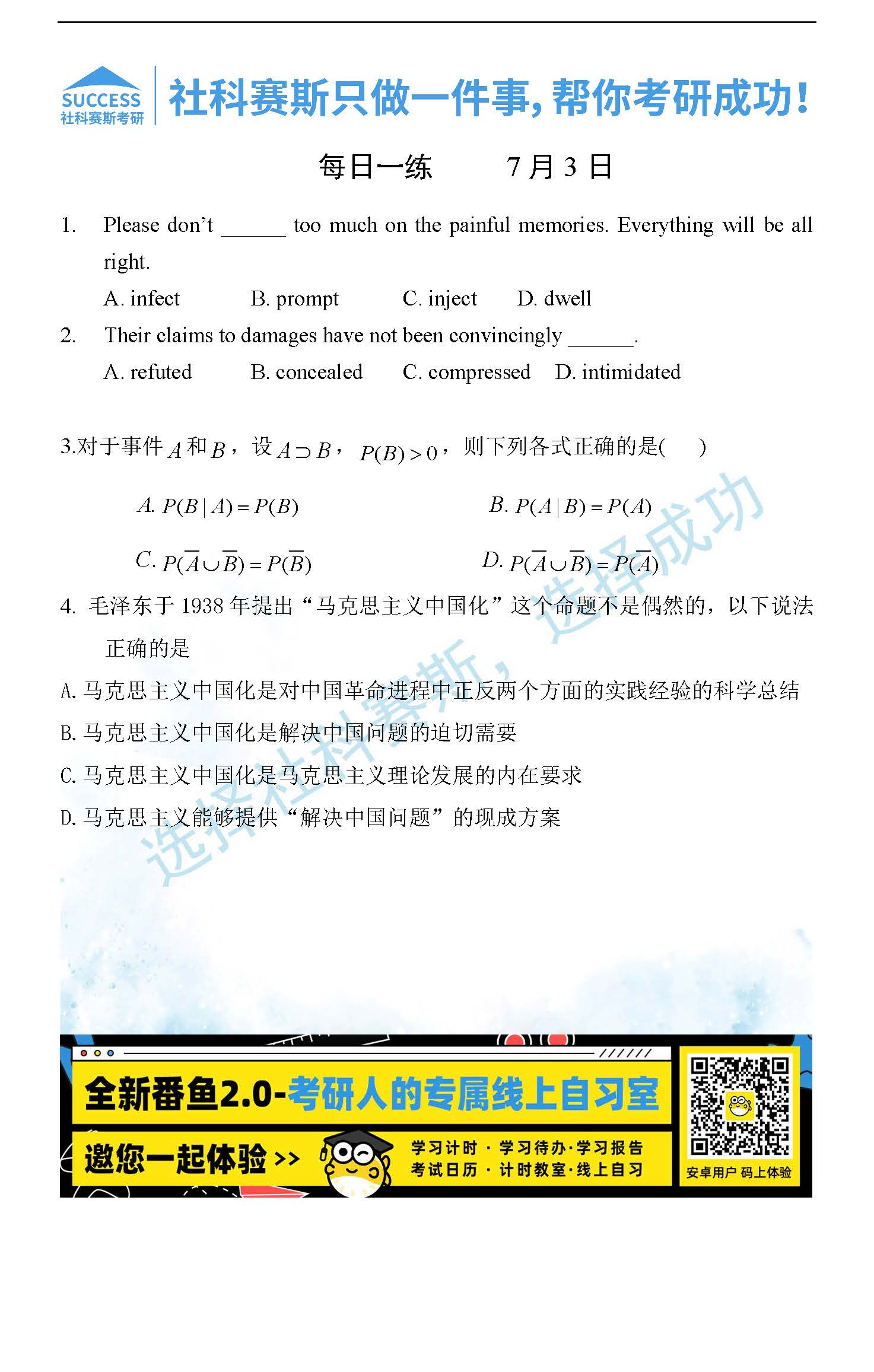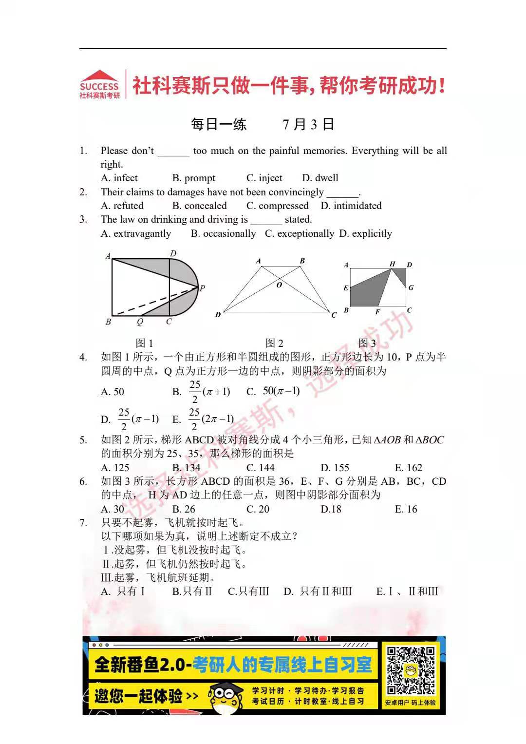 2022考研每日一練:7月3日管理類聯(lián)考每日一練及答案