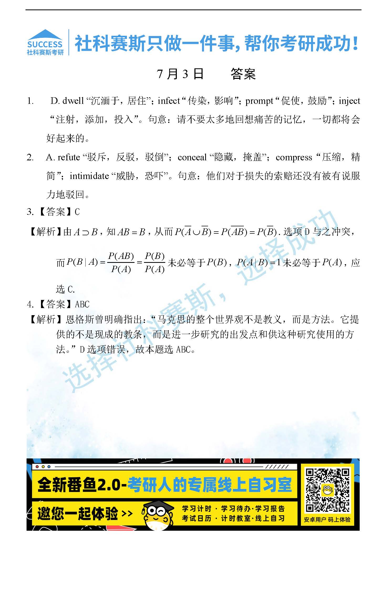 以上就是社科賽斯考研網(wǎng)小編為大家整理2022考研每日一練:7月3日管理類聯(lián)考每日一練及答案的全部內(nèi)容,希望各位考生堅持利用起來,更多每日一練內(nèi)容請持續(xù)關(guān)注社科賽斯考研網(wǎng)