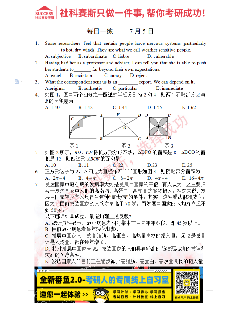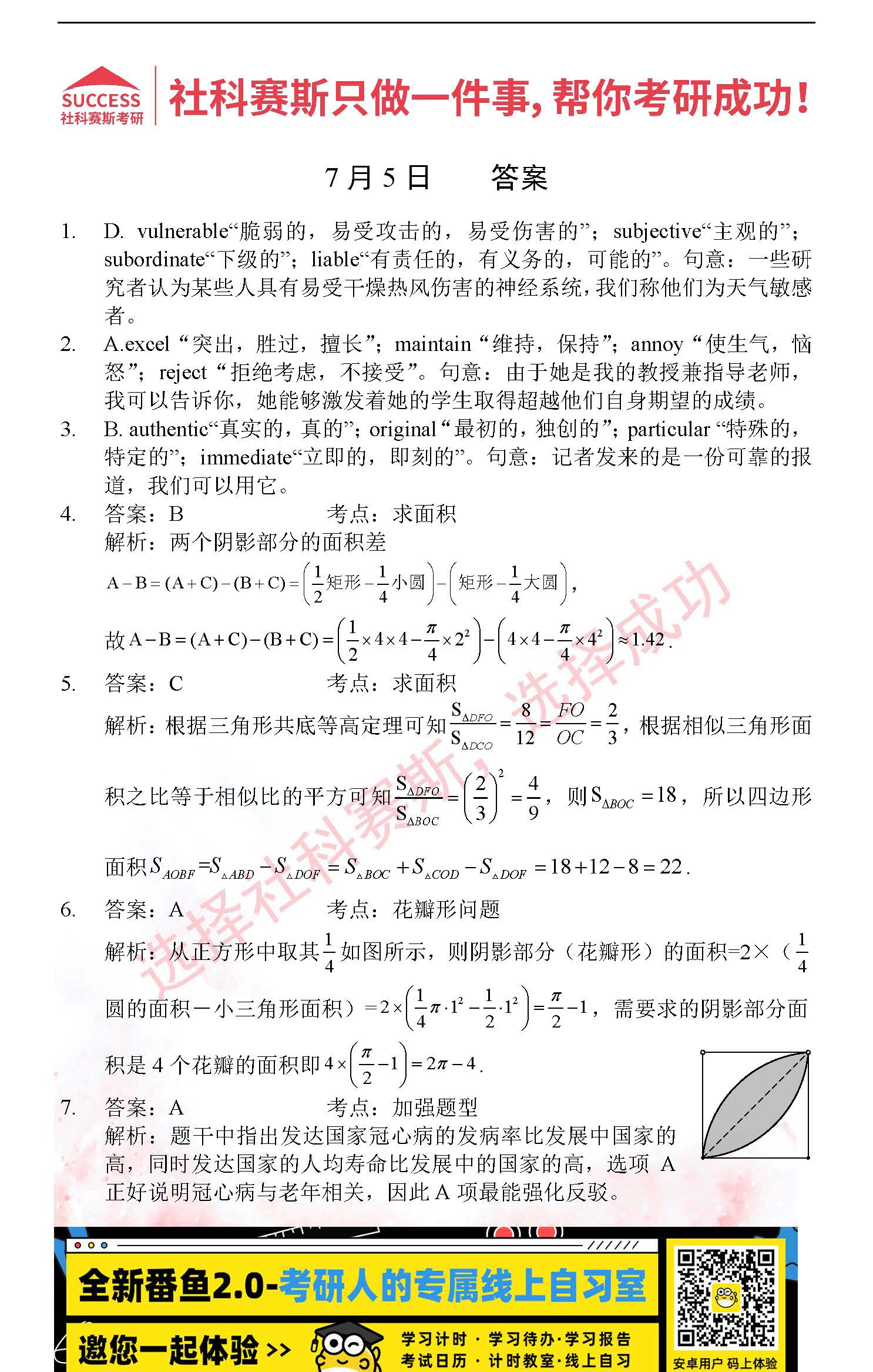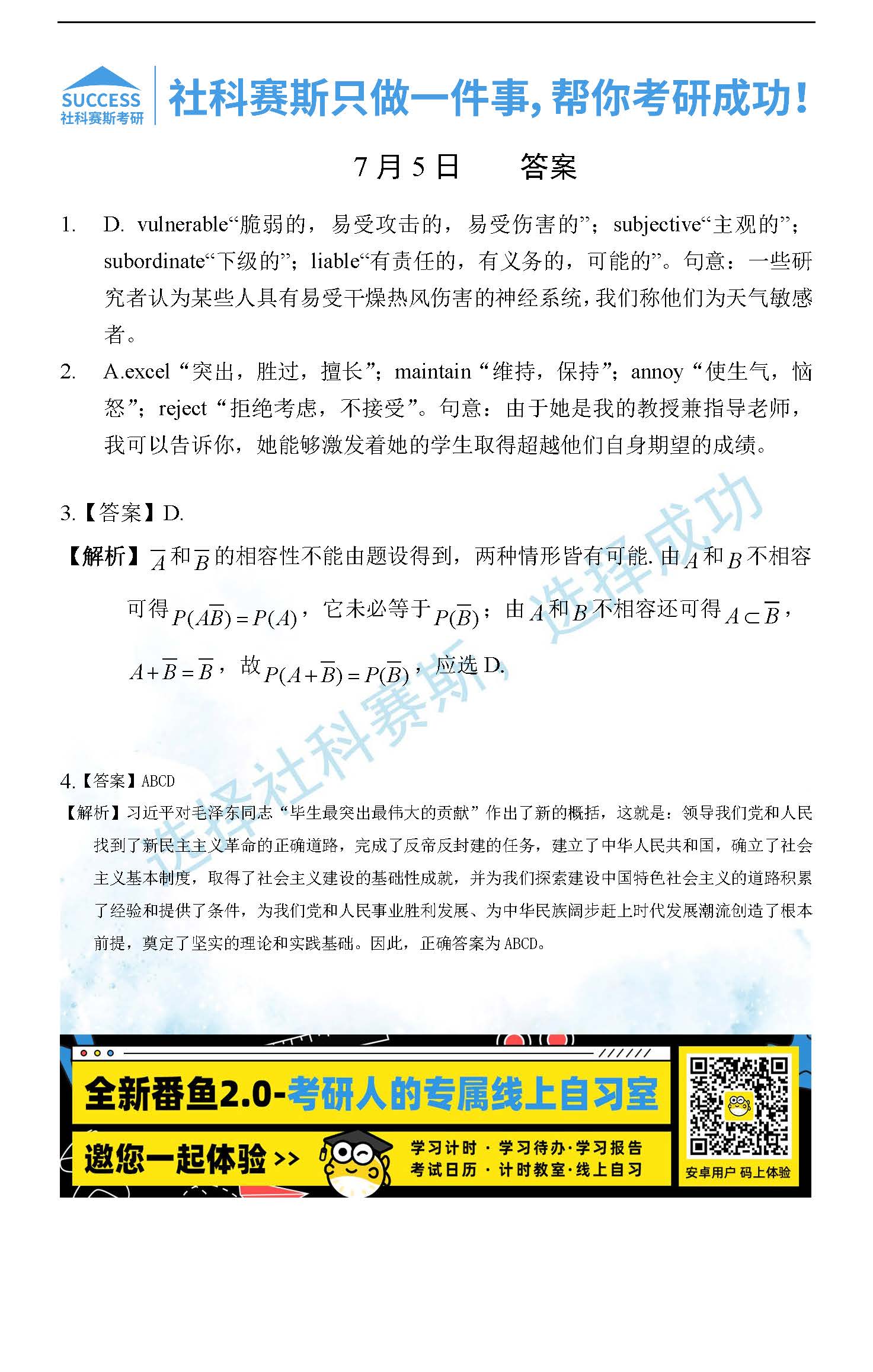 以上就是社科賽斯考研網小編為大家整理2022考研每日一練:7月5日管理類聯考每日一練及答案的全部內容,希望各位考生堅持利用起來,更多每日一練內容請持續關注社科賽斯考研網