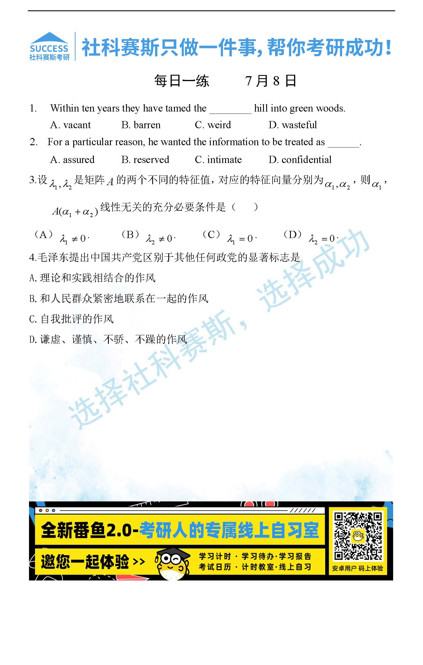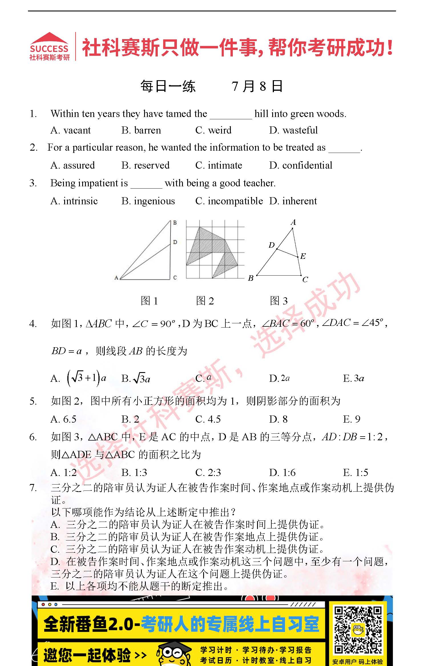 2022考研每日一練:7月8日管理類聯考每日一練及答案
