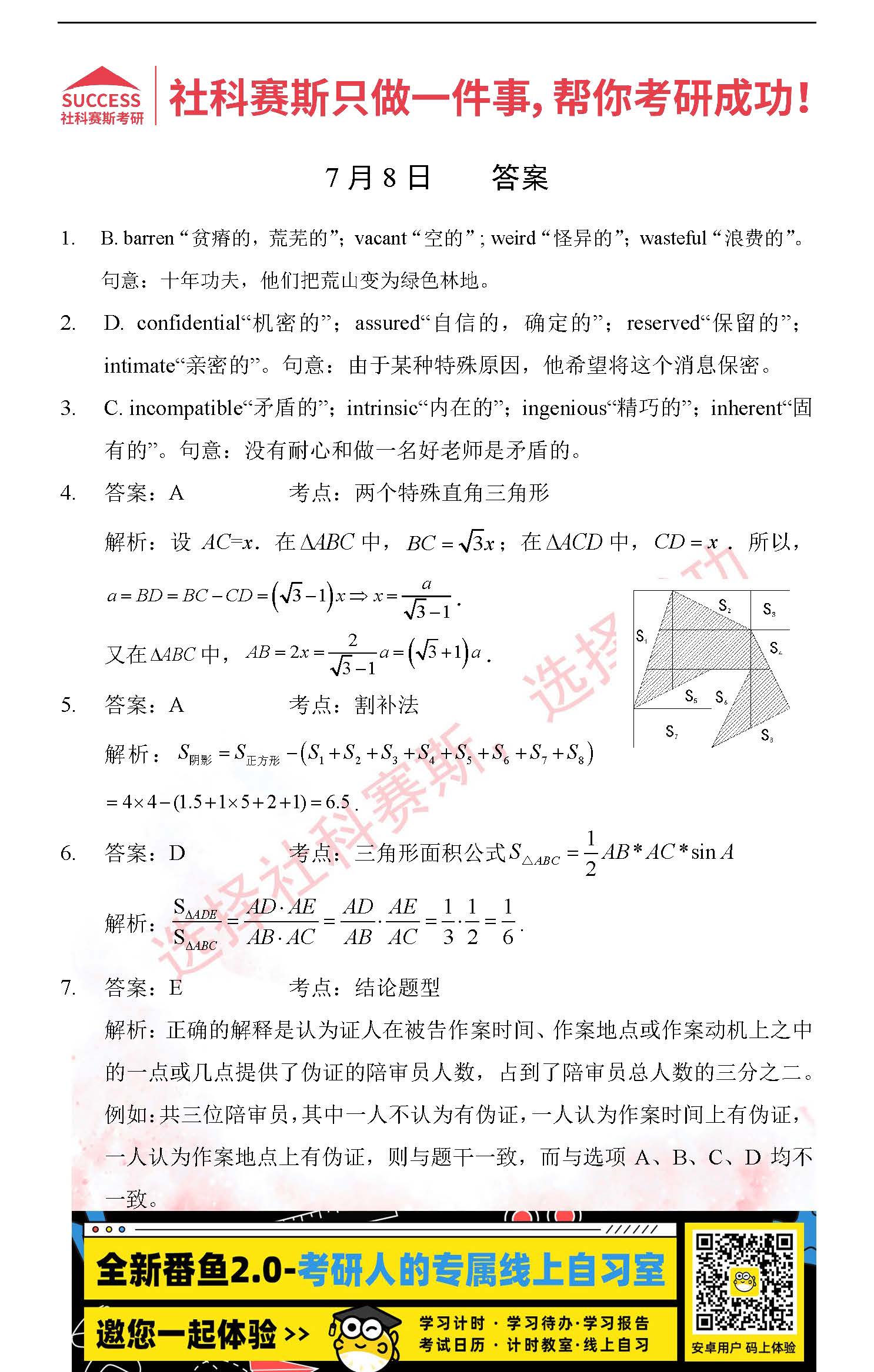 以上就是社科賽斯考研網小編為大家整理2022考研每日一練:7月8日管理類聯考每日一練及答案的全部內容,希望各位考生堅持利用起來,更多每日一練內容請持續關注社科賽斯考研網