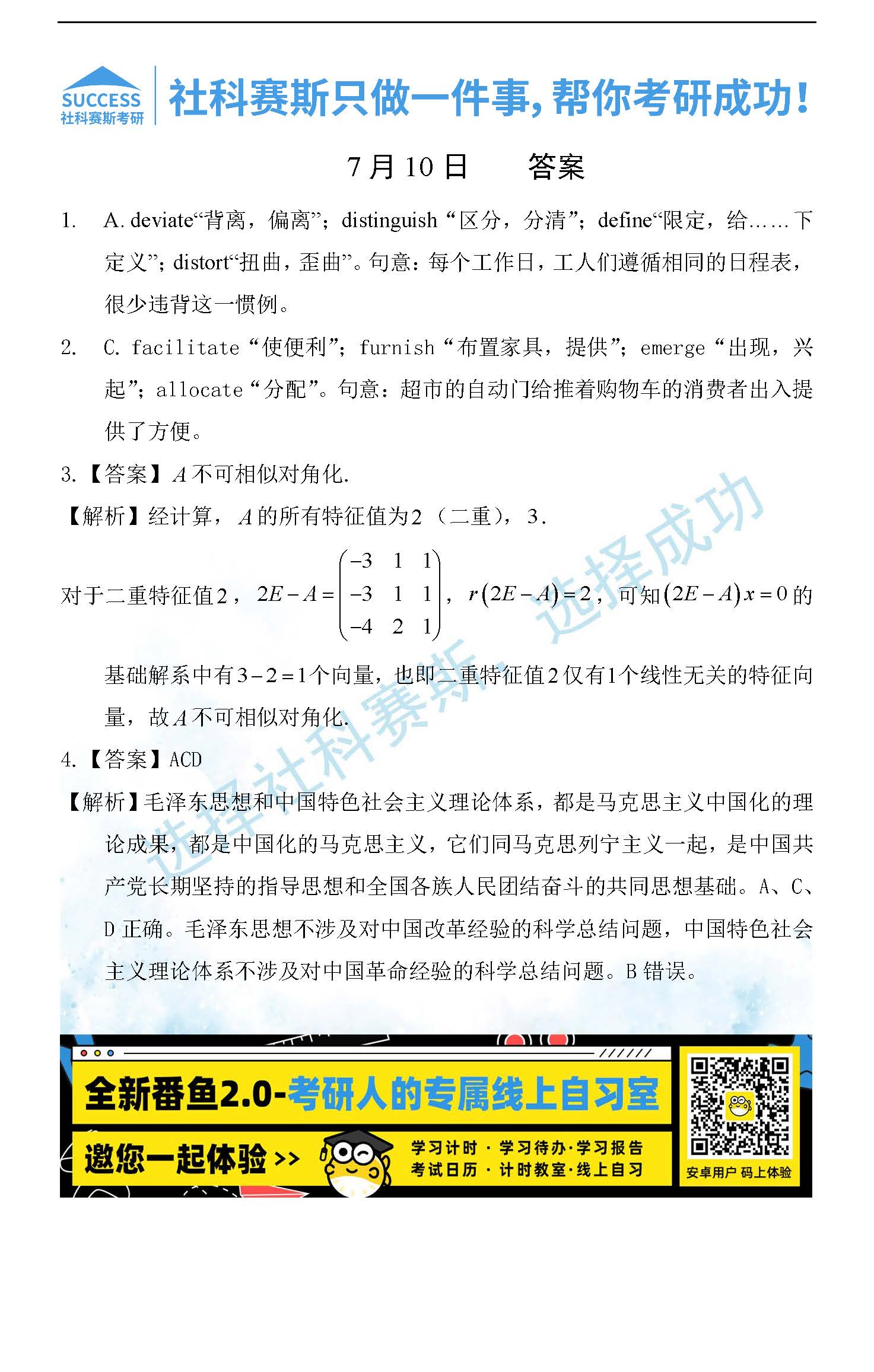 以上就是社科賽斯考研網(wǎng)小編為大家整理2022考研每日一練:7月10日管理類聯(lián)考每日一練及答案的全部?jī)?nèi)容,希望各位考生堅(jiān)持利用起來,更多每日一練內(nèi)容請(qǐng)持續(xù)關(guān)注社科賽斯考研網(wǎng)