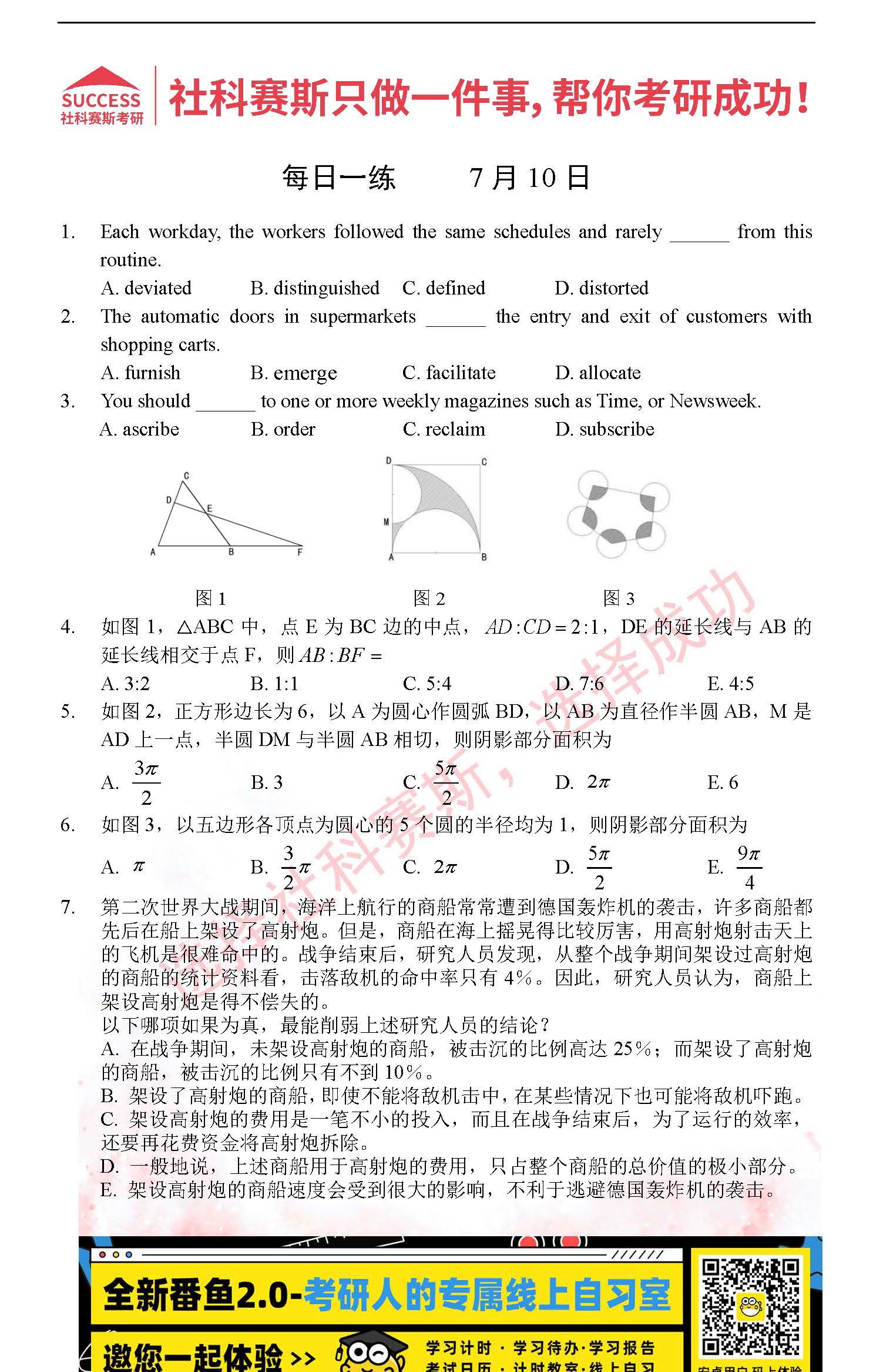 2022考研每日一練:7月10日管理類聯(lián)考每日一練及答案