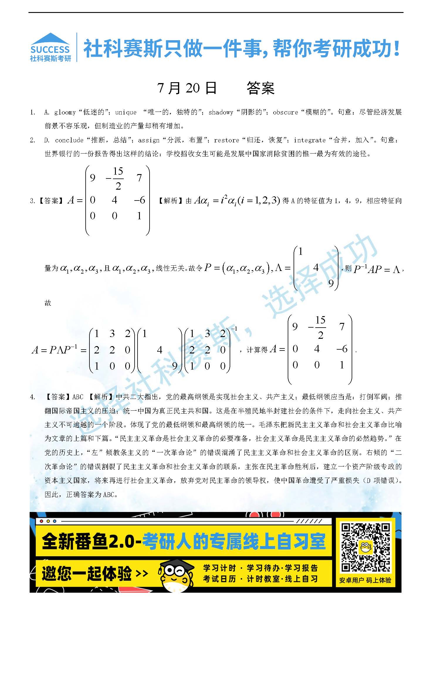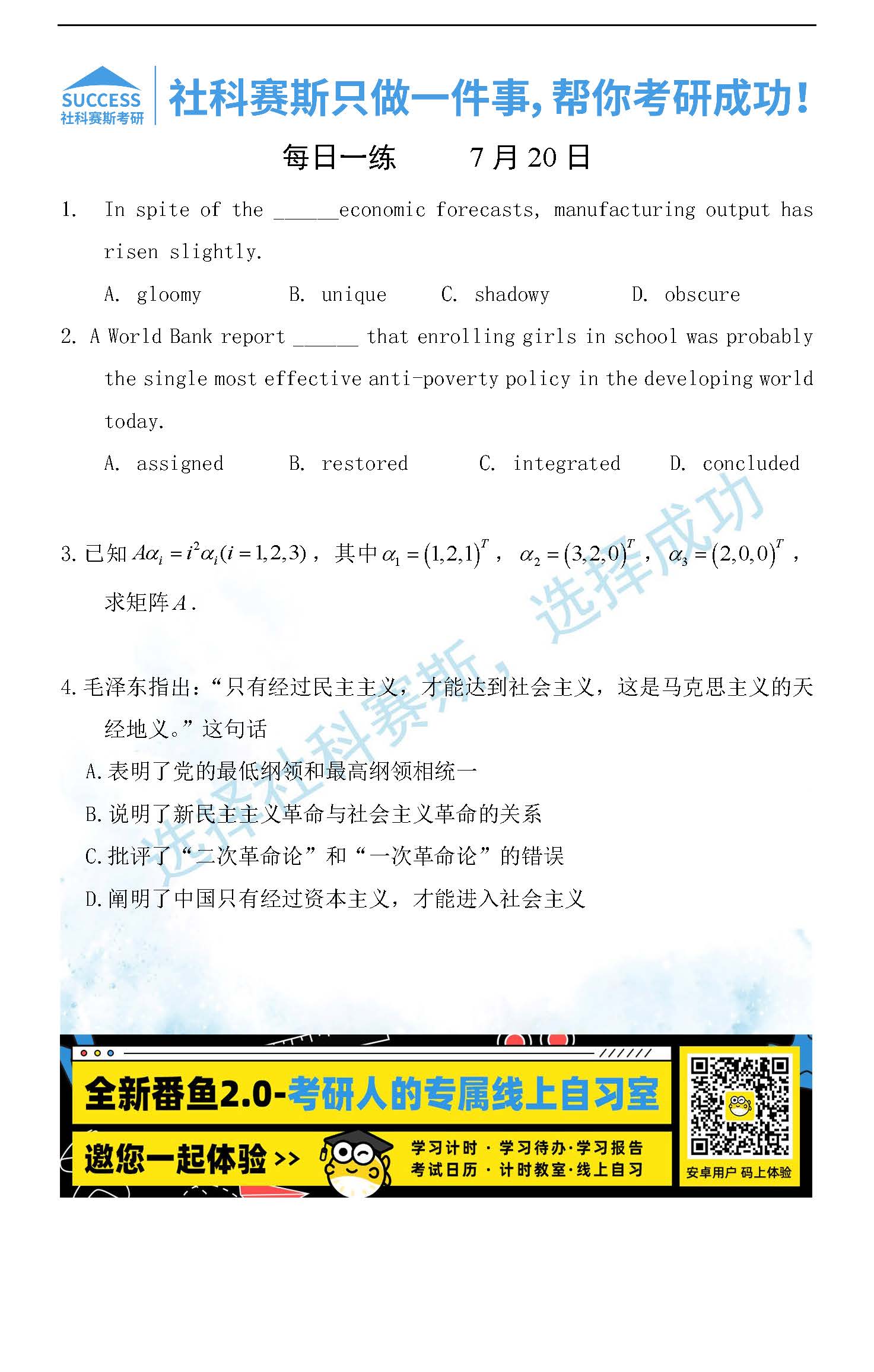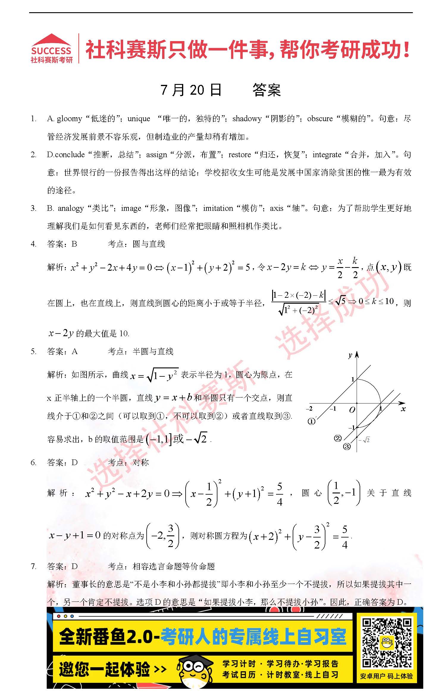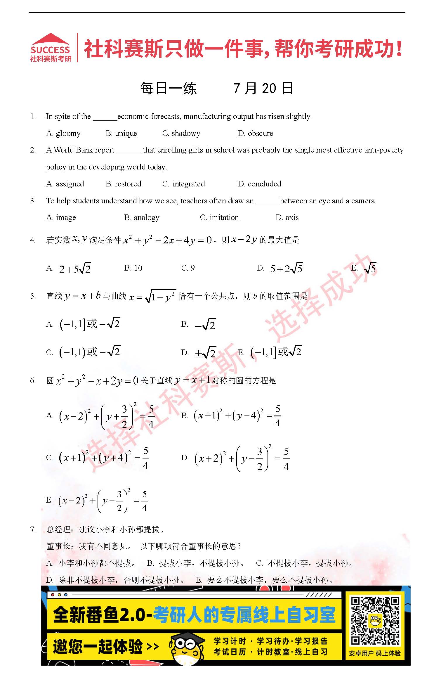 2022考研每日一練:7月20日管理類(lèi)聯(lián)考每日一練及答案