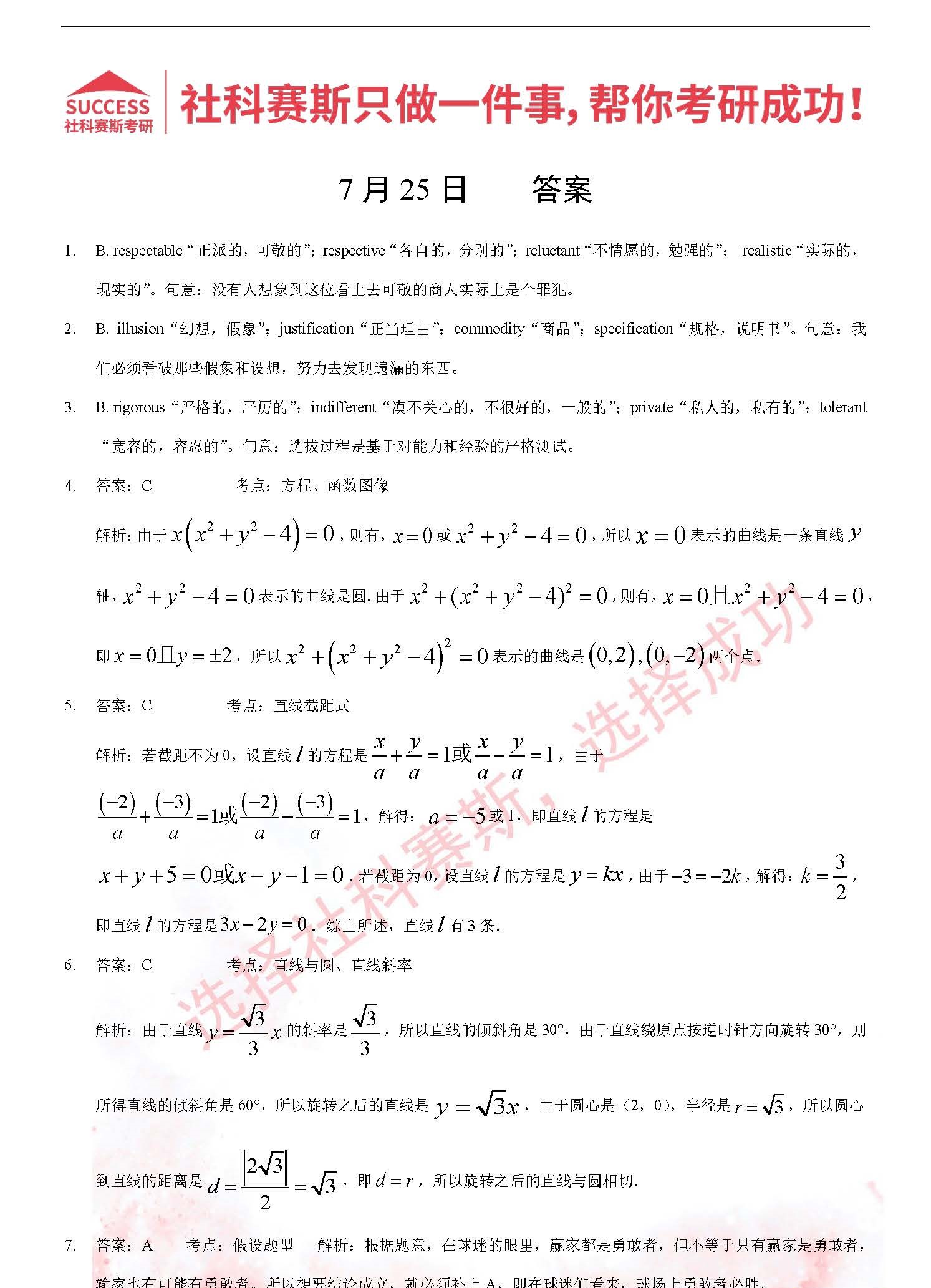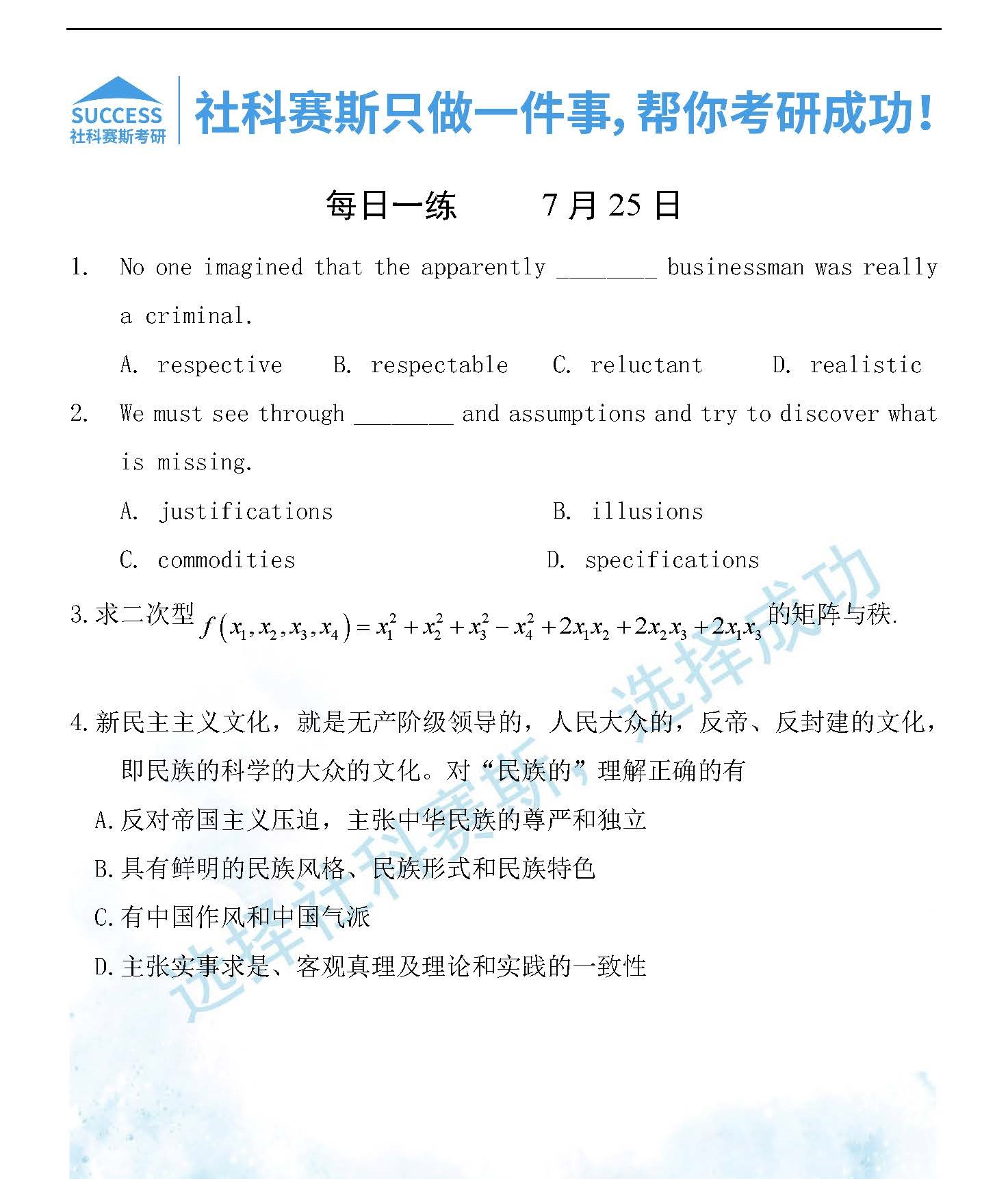 以上就是社科賽斯考研網小編為大家整理2022考研每日一練:7月25日管理類聯考每日一練及答案的全部內容,希望各位考生堅持利用起來,更多每日一練內容請持續關注社科賽斯考研網