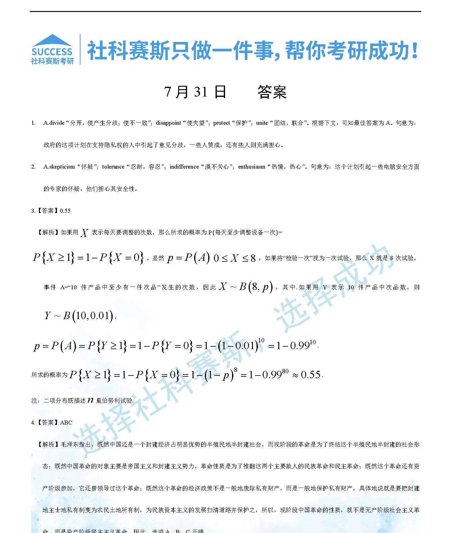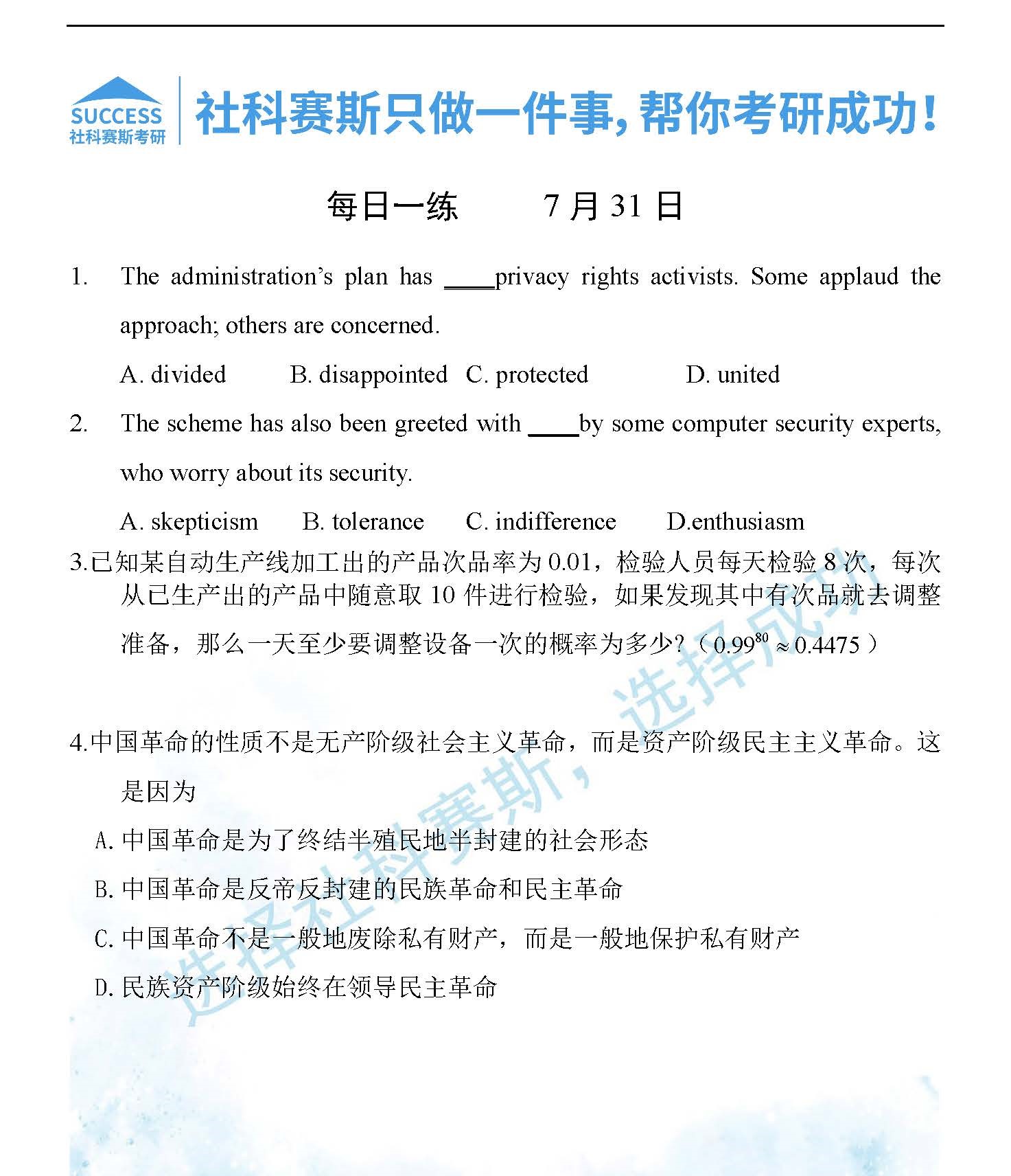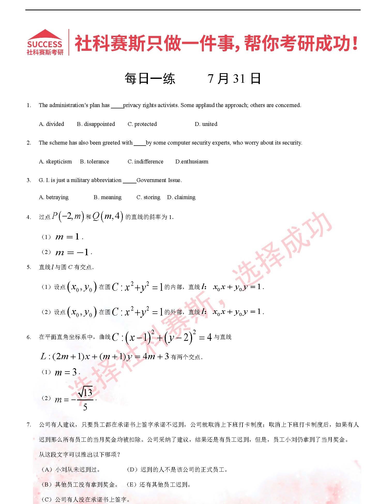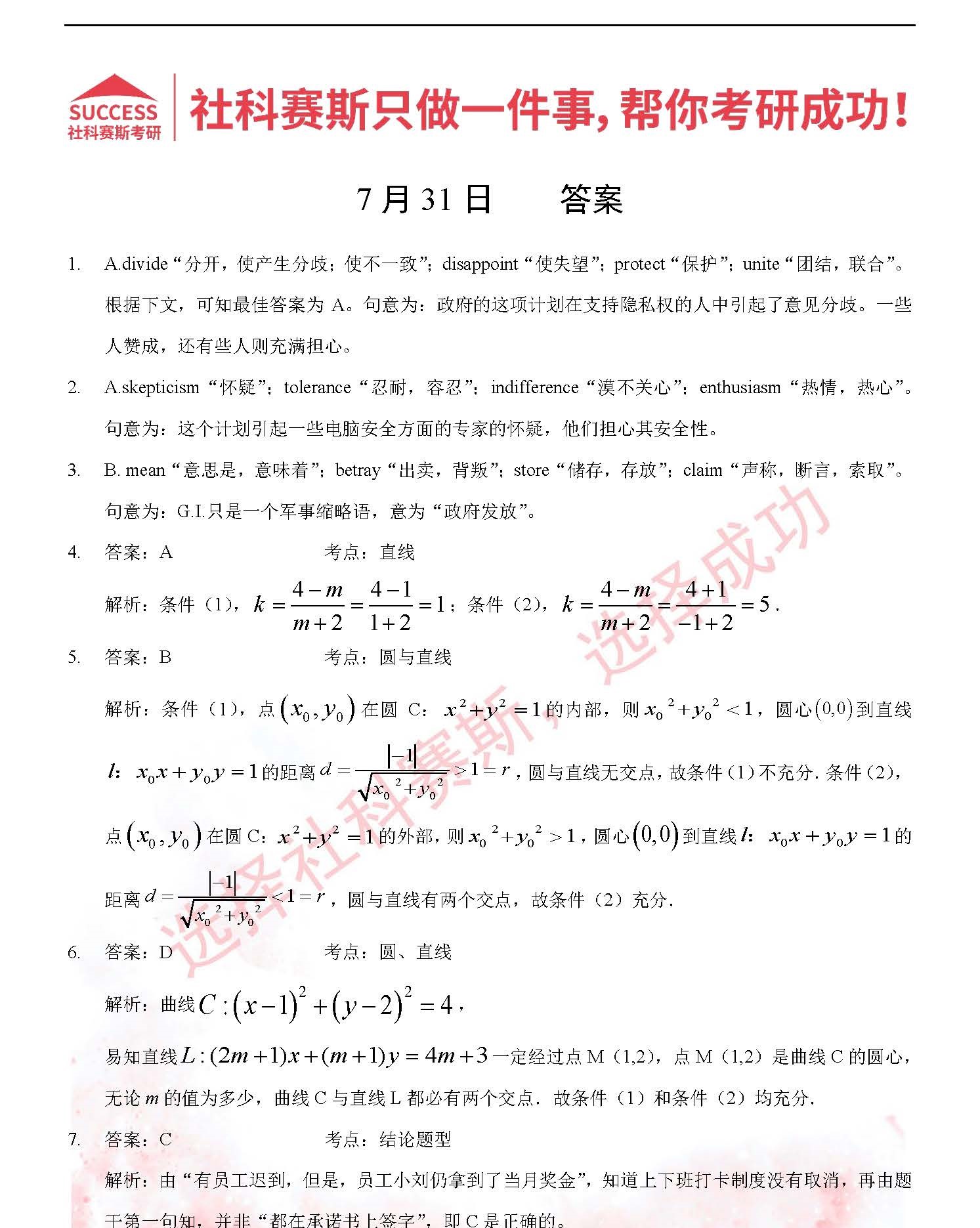 以上就是社科賽斯考研網小編為大家整理2022考研每日一練:7月31日管理類聯考每日一練及答案的全部內容,希望各位考生堅持利用起來,更多每日一練內容請持續關注社科賽斯考研網