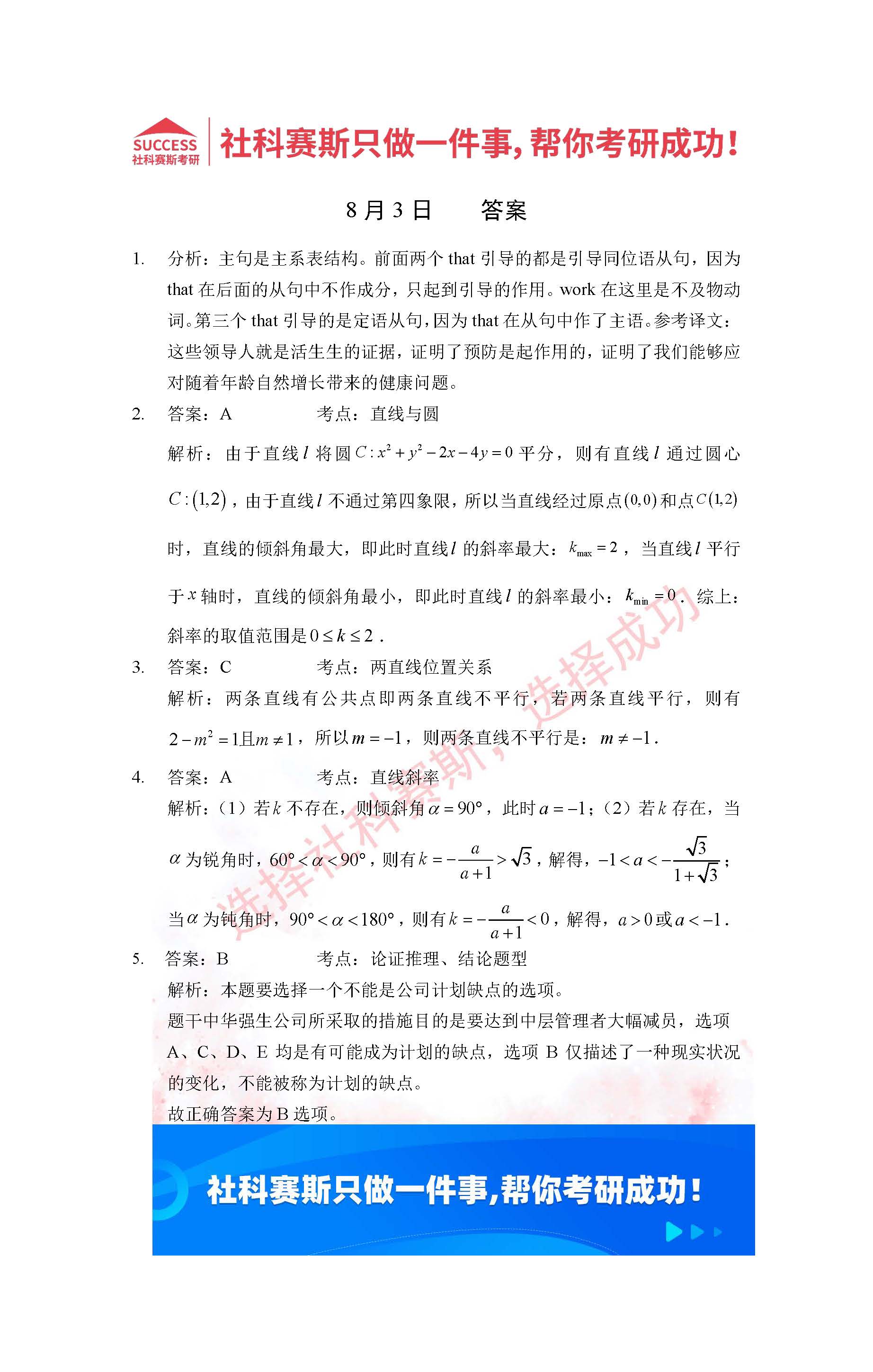 以上就是社科賽斯考研網小編為大家整理2022考研每日一練:8月3日管理類聯考每日一練及答案的全部內容,希望各位考生堅持利用起來,更多每日一練內容請持續關注社科賽斯考研網