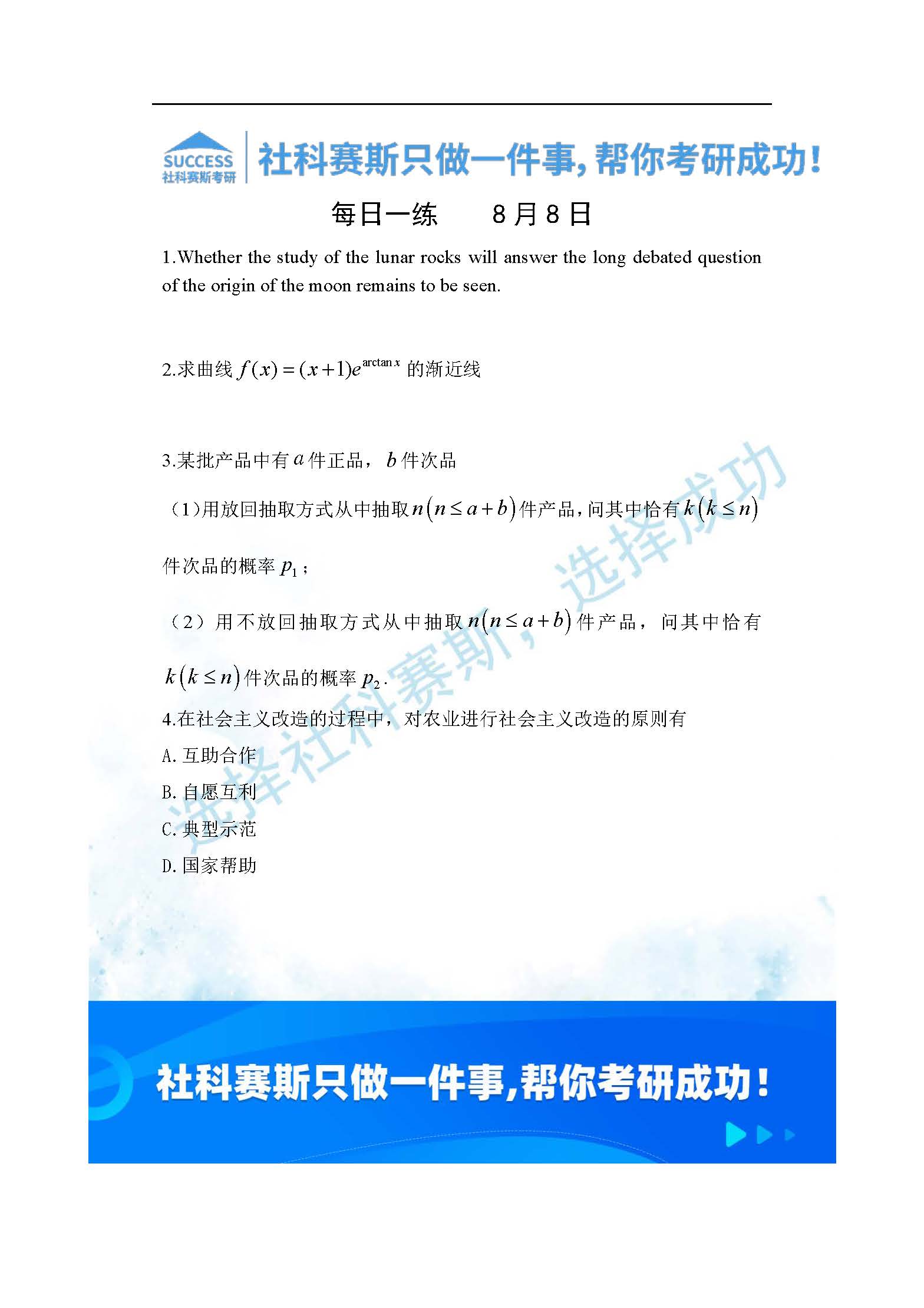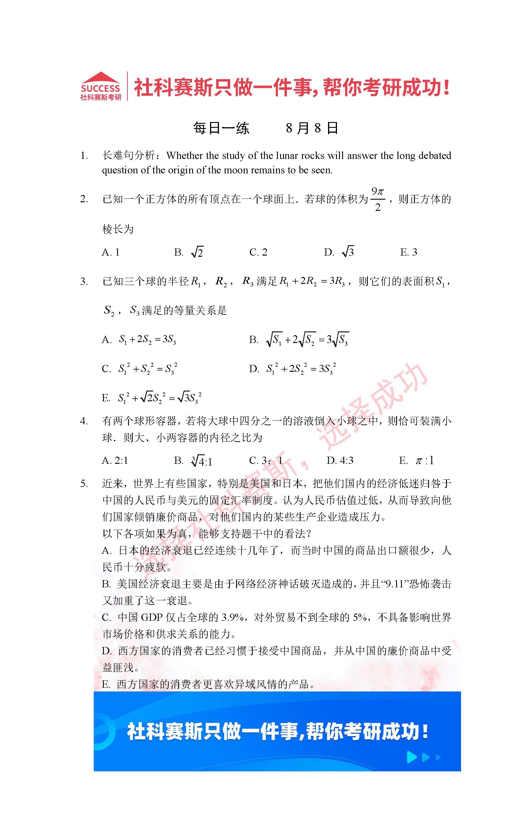 考研是一場(chǎng)持久戰(zhàn),保持良好的學(xué)習(xí)習(xí)慣,是能確保復(fù)習(xí)高效的關(guān)鍵。今天社科賽斯考研網(wǎng)小編整理了“2022考研每日一練:8月8日管理類(lèi)聯(lián)考每日一練及答案”的內(nèi)容,希望能對(duì)廣大考生有所幫助。